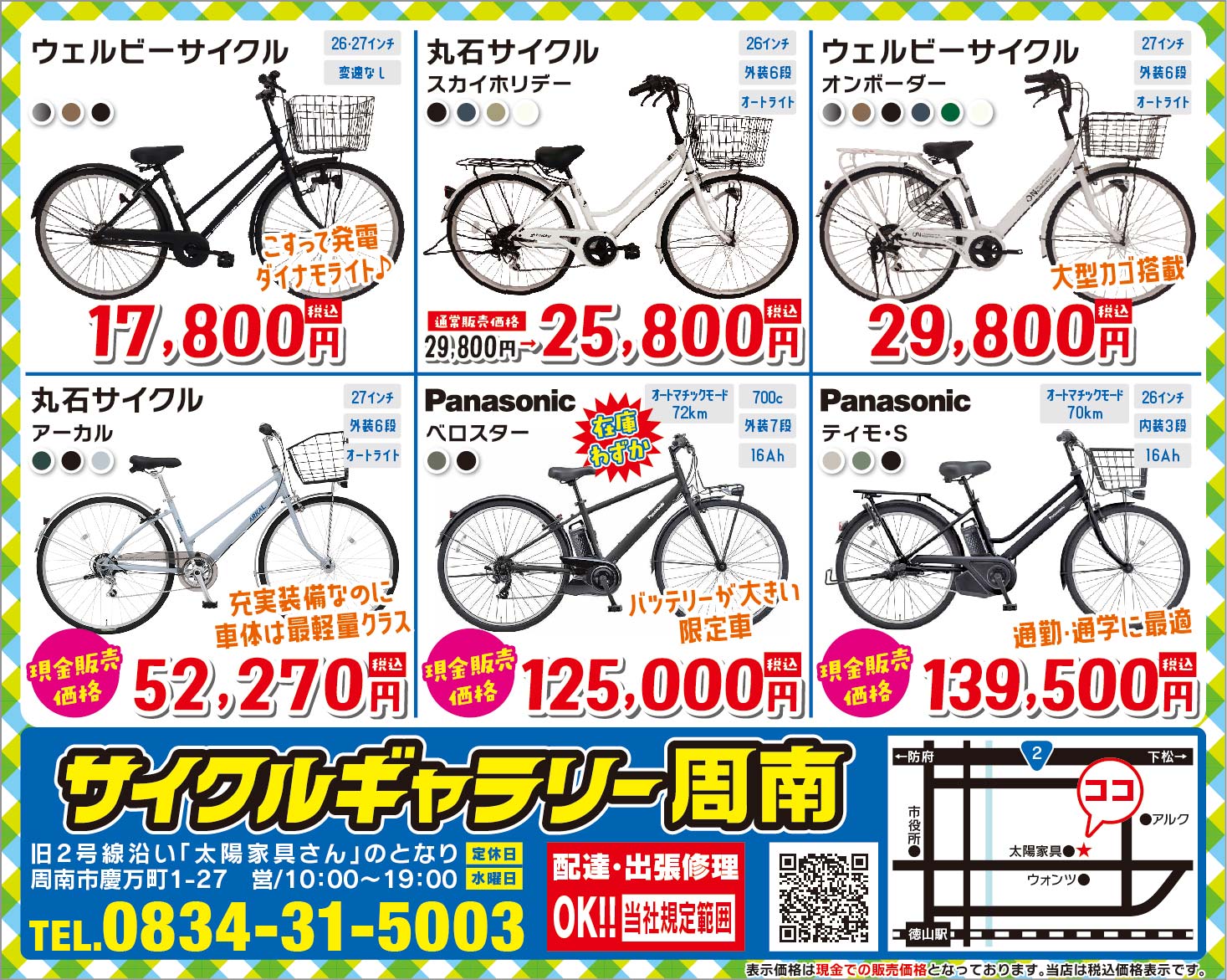 自転車を買うなら、購入後も安心な サイクルギャラリーラリー周南へ。