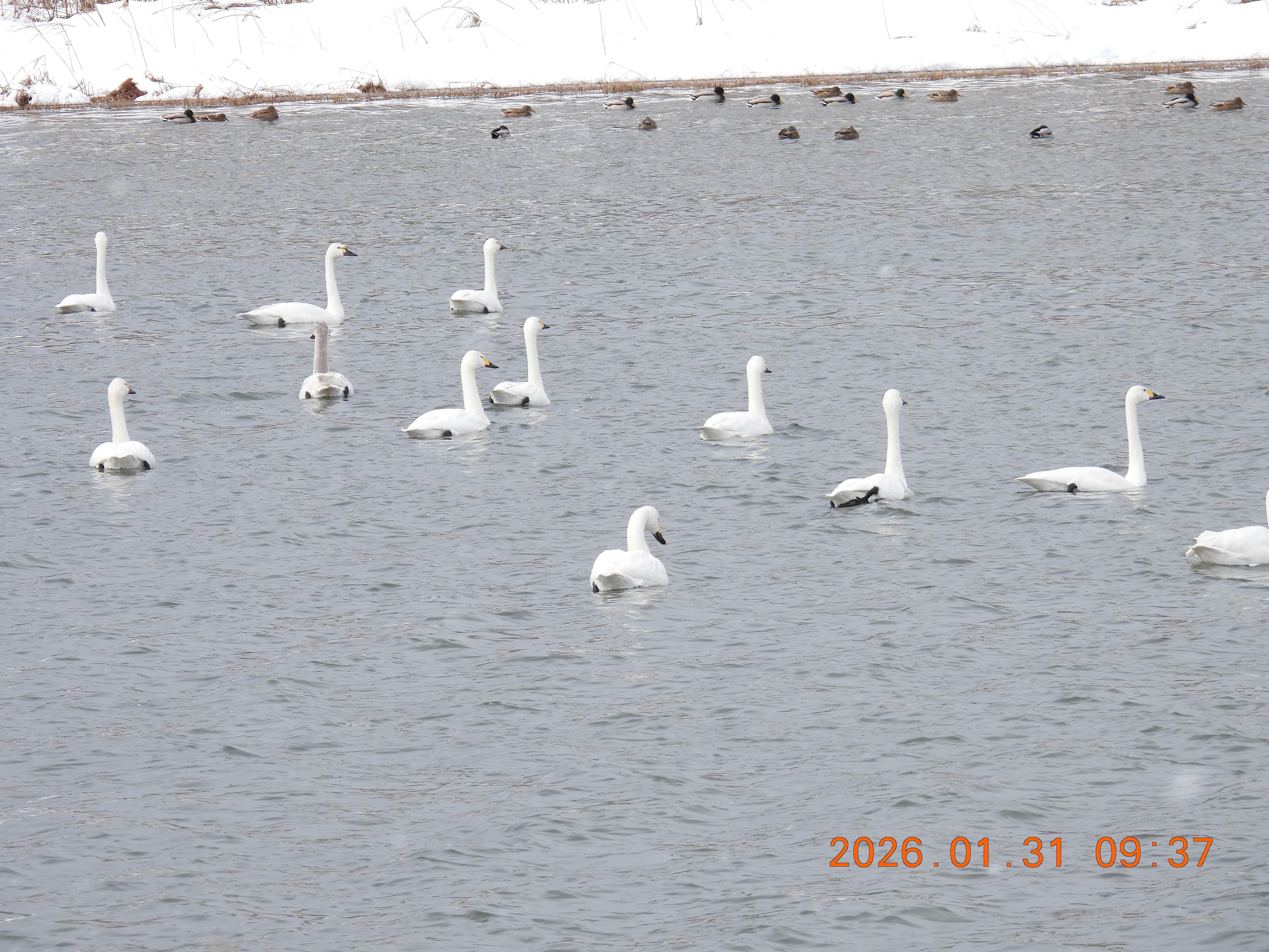 この時間で多くのコハクチョウが観察会の皆さんを待っていてくれたように思いました。