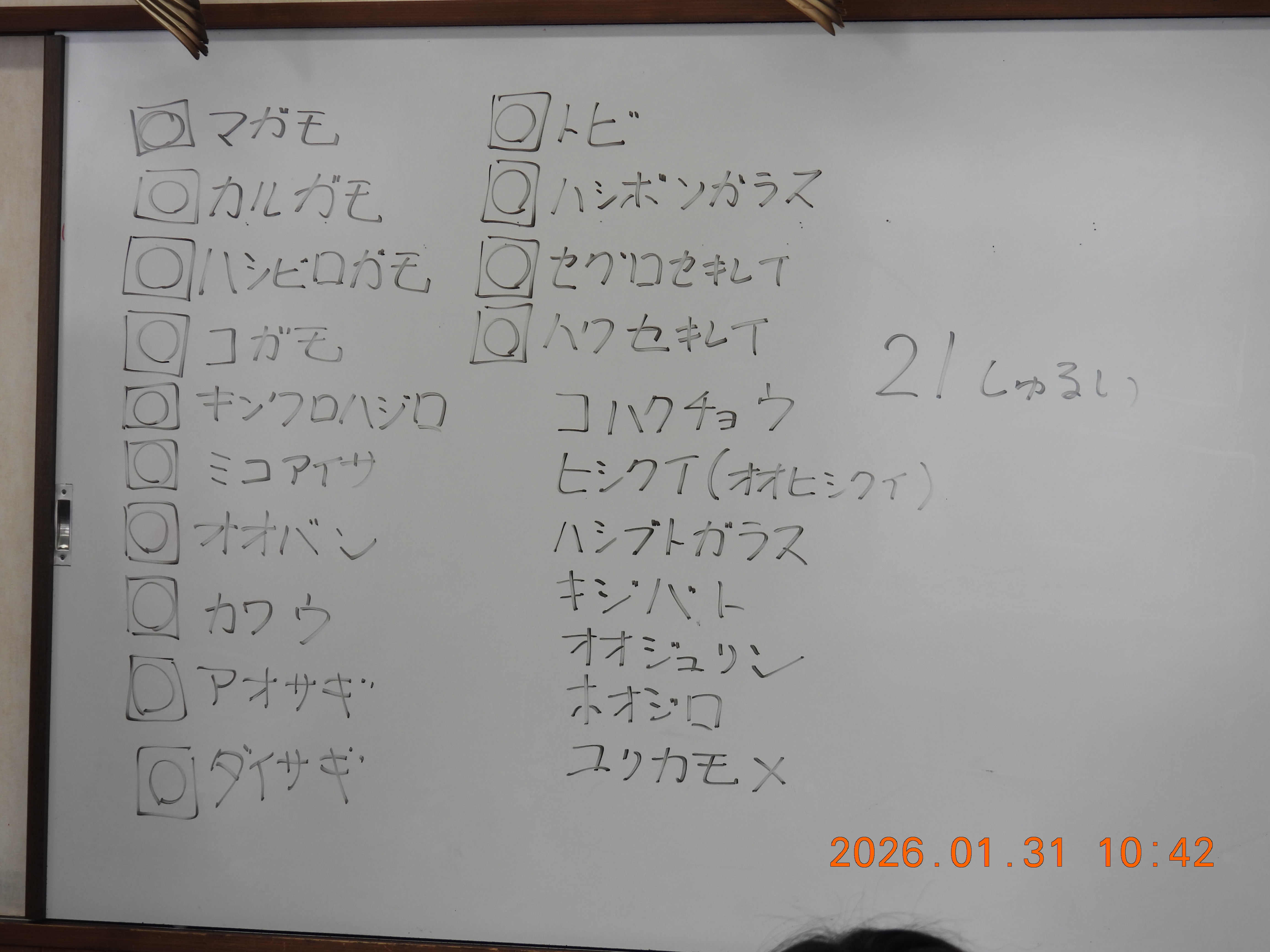 鳥合わせでは、34種の鳥たちを見る事が出来ました。