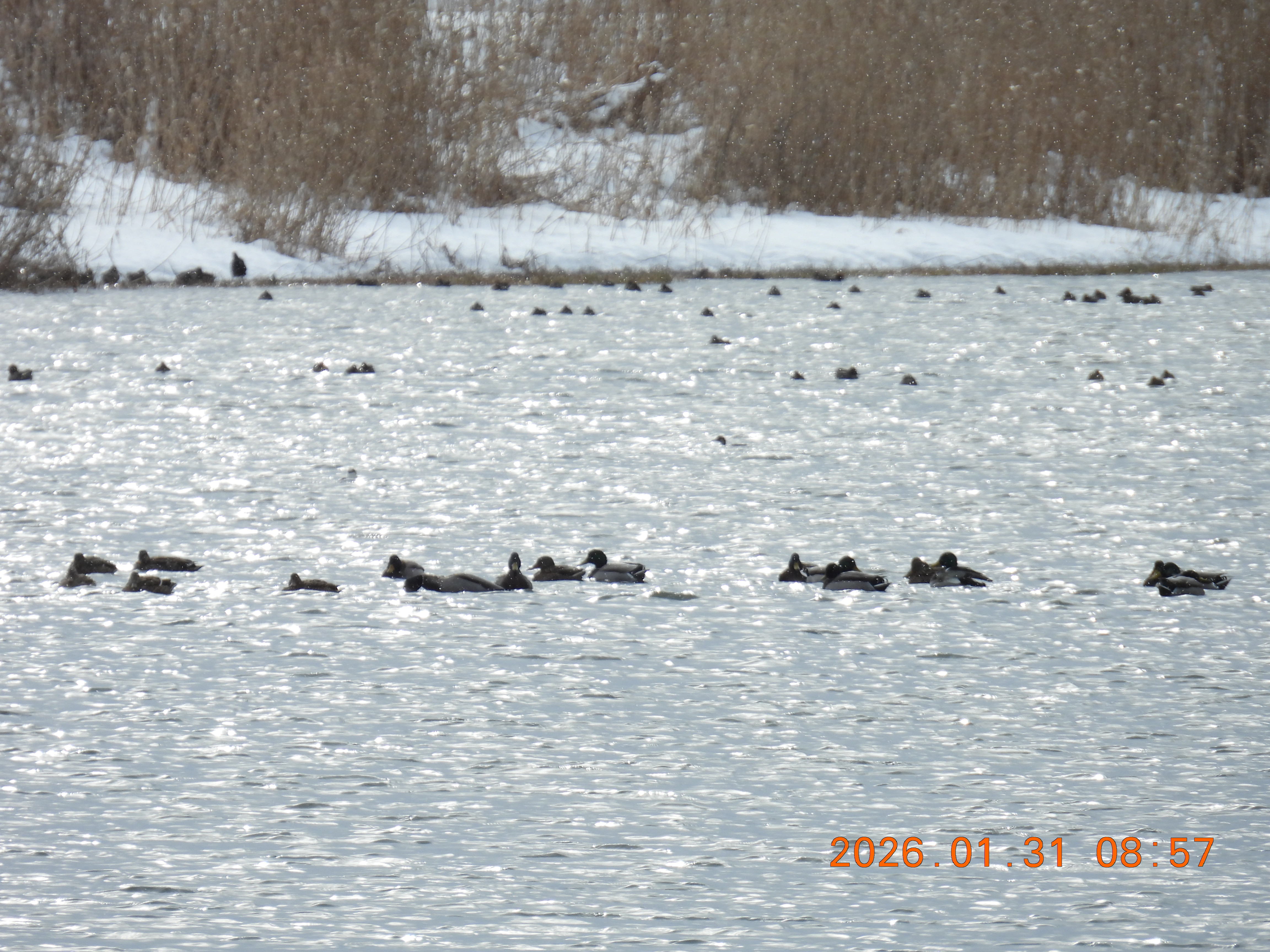 コハクチョウは、見ることはできませんが、コガモ、マガモ,ヨシガモ、オオバン