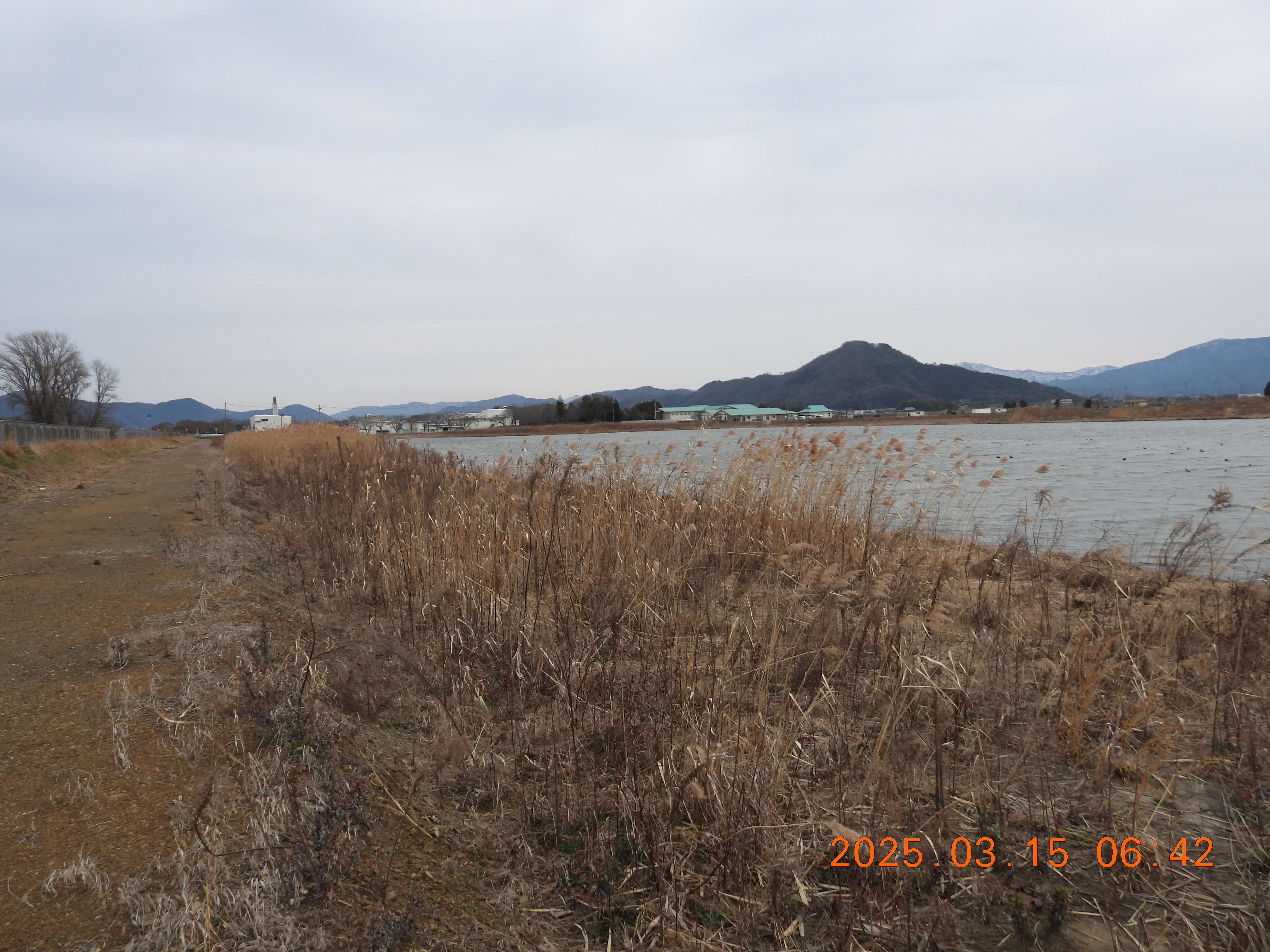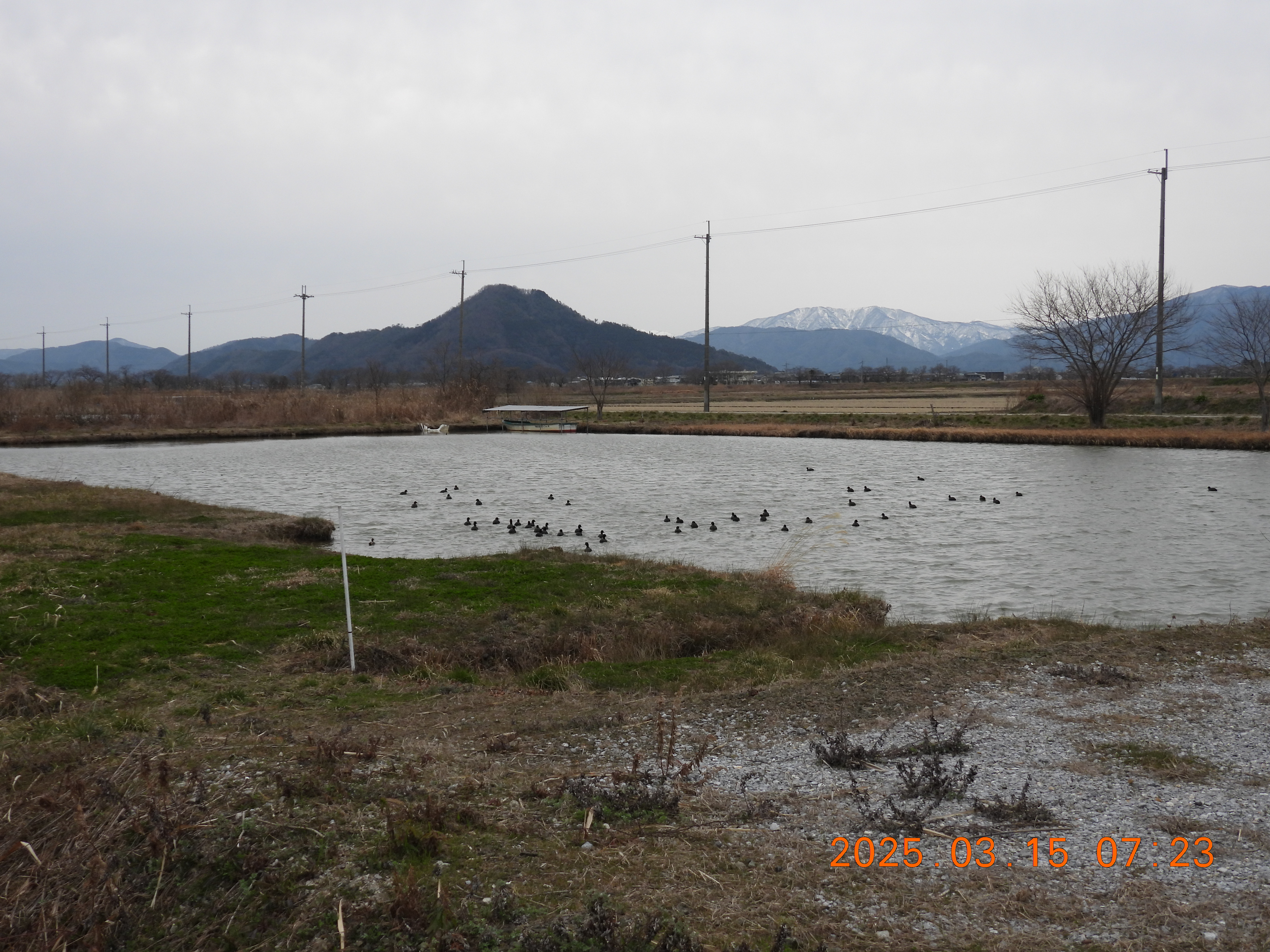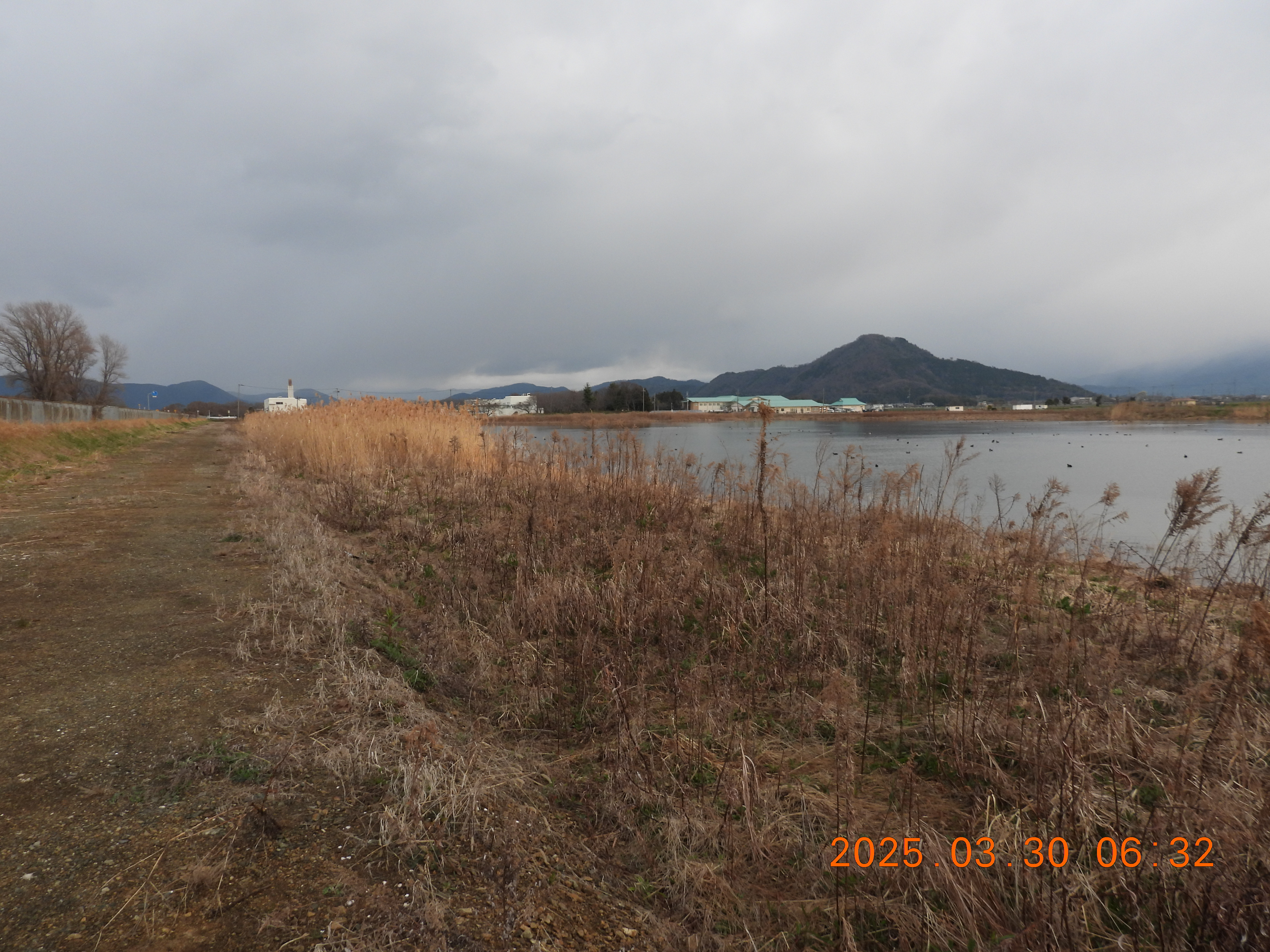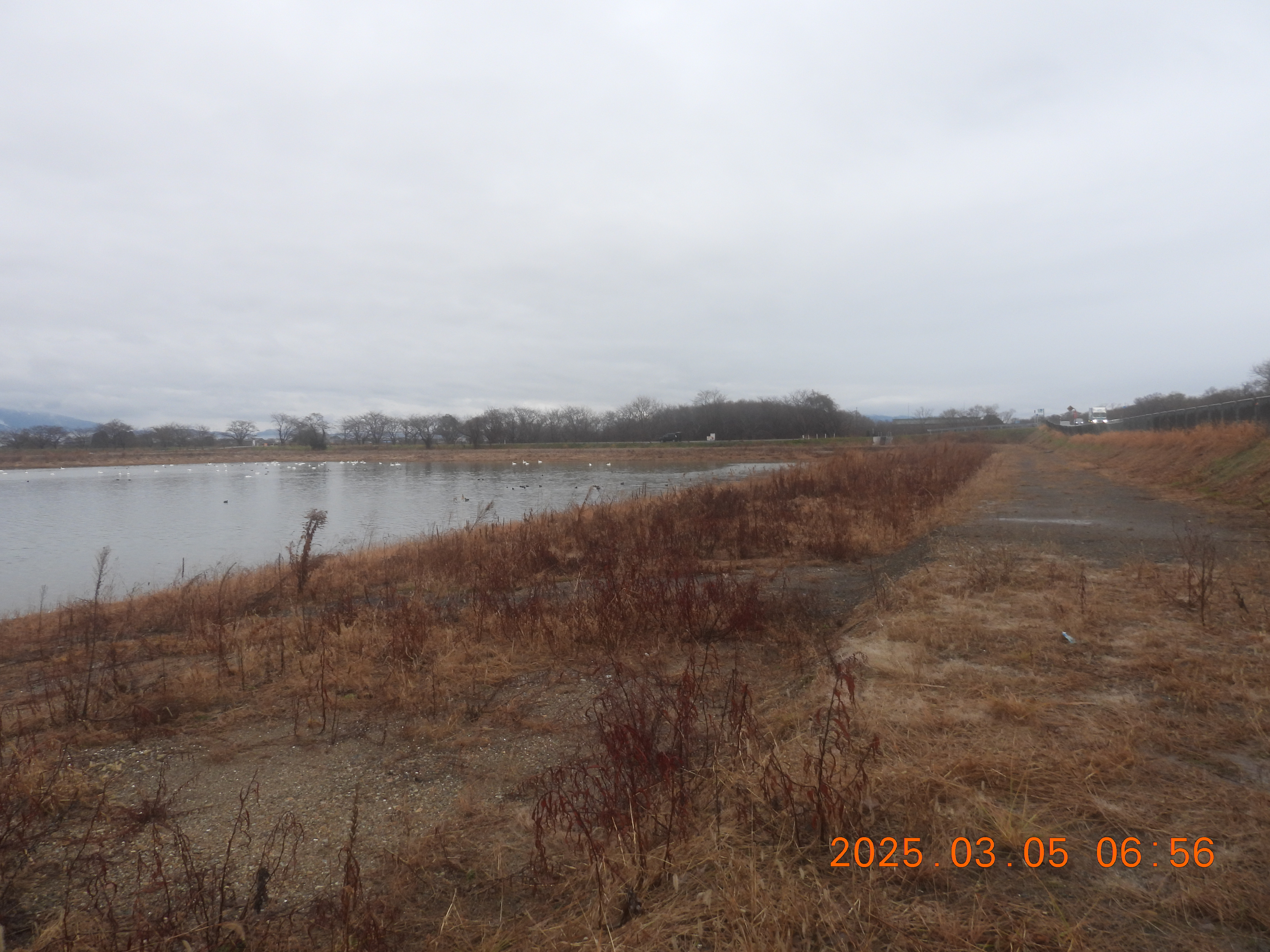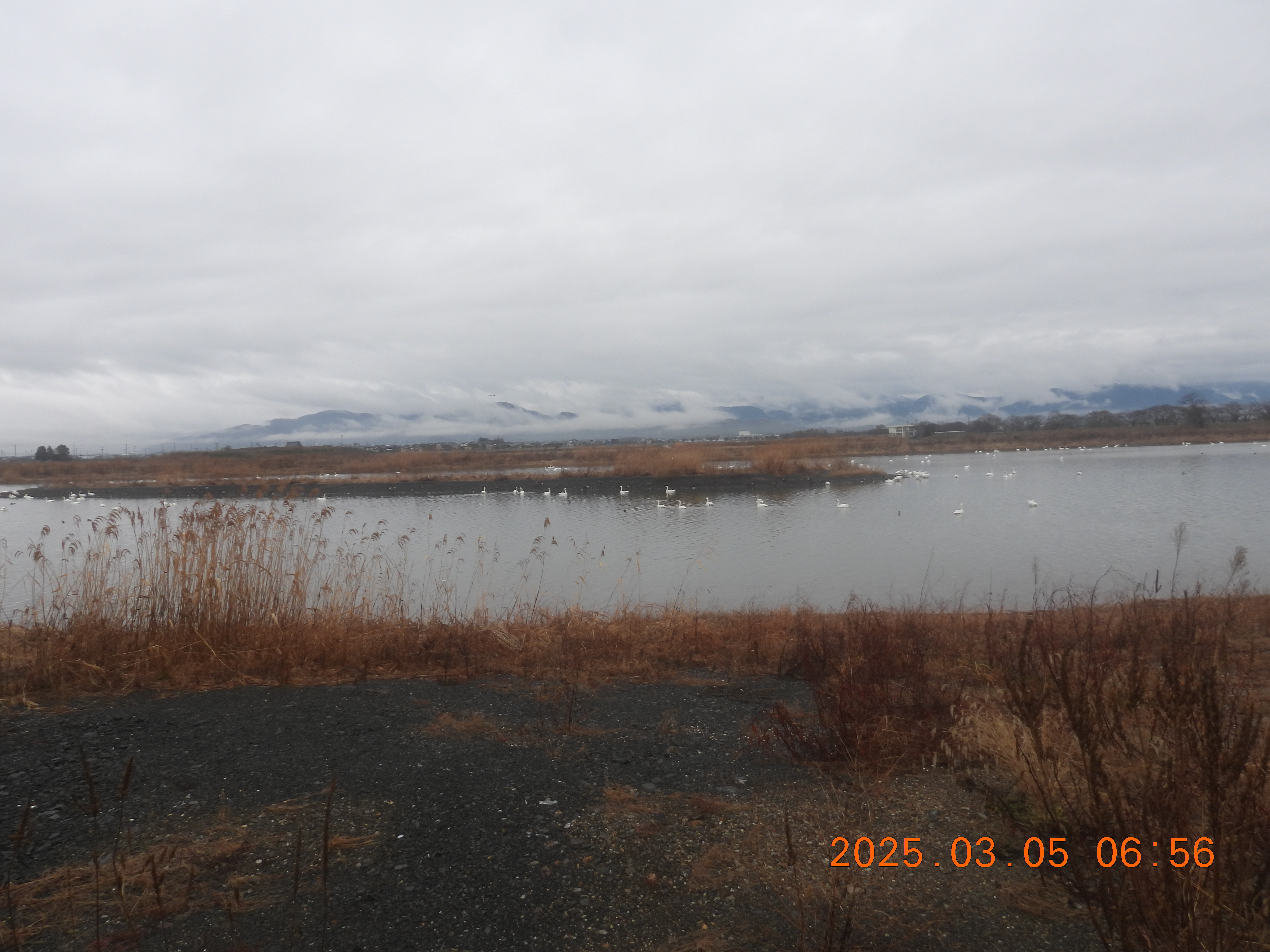 6時過ぎは、内湖ではアラレ交じりの雨が降っていました。昨年の3/22も早崎内湖は雪で真白でした。
