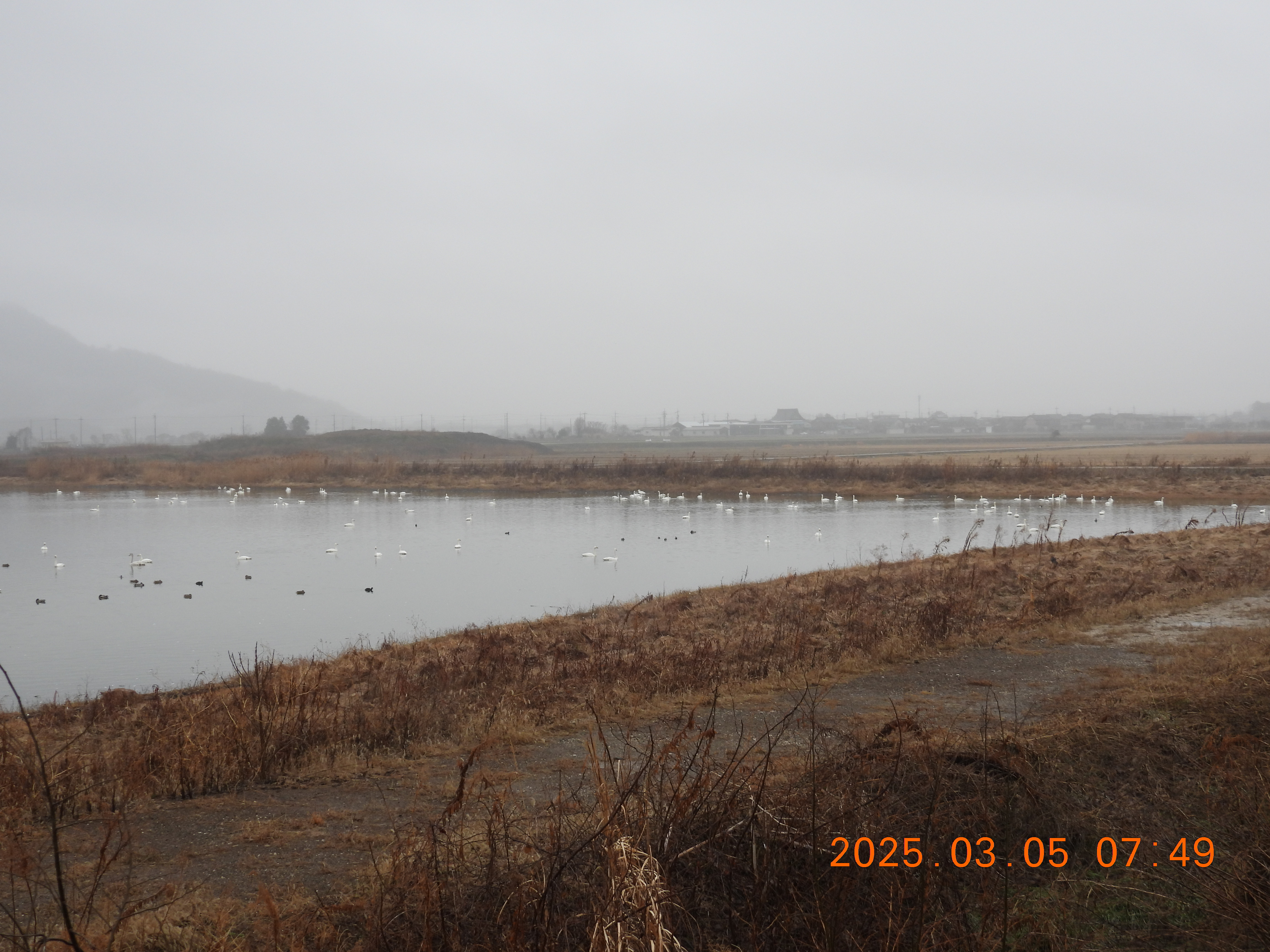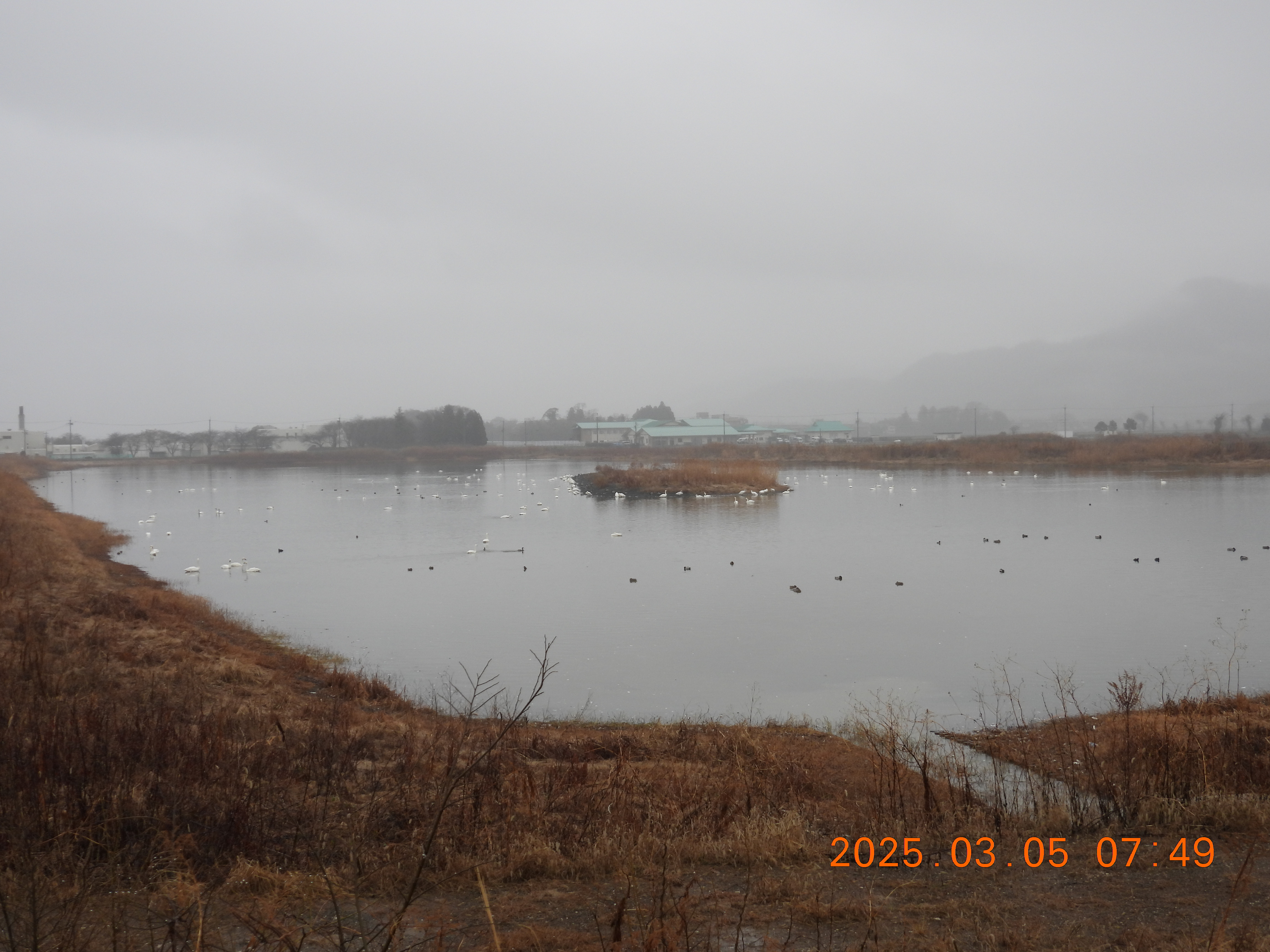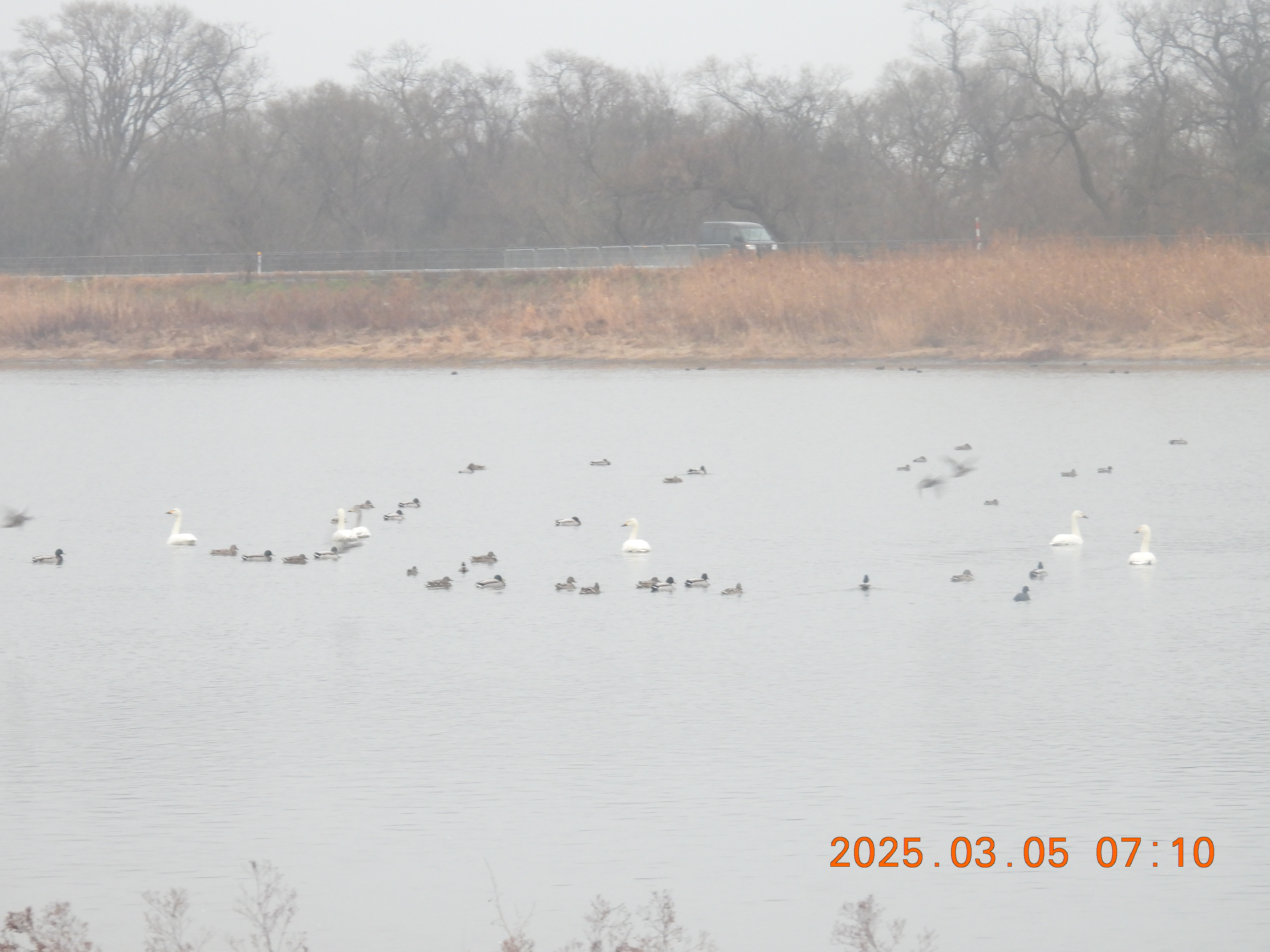 雨で視界が悪いです。コハクチョウ見えるかな?