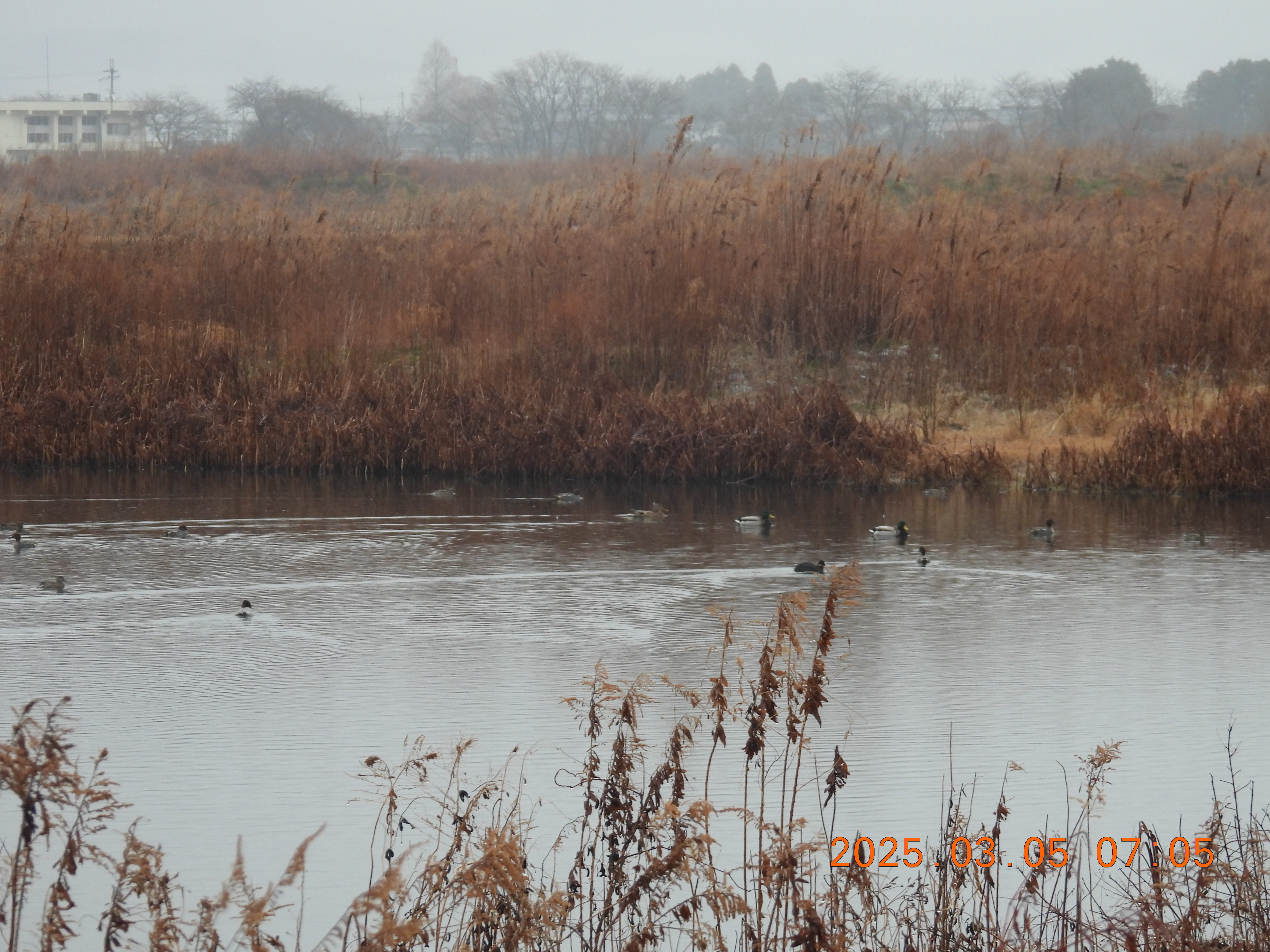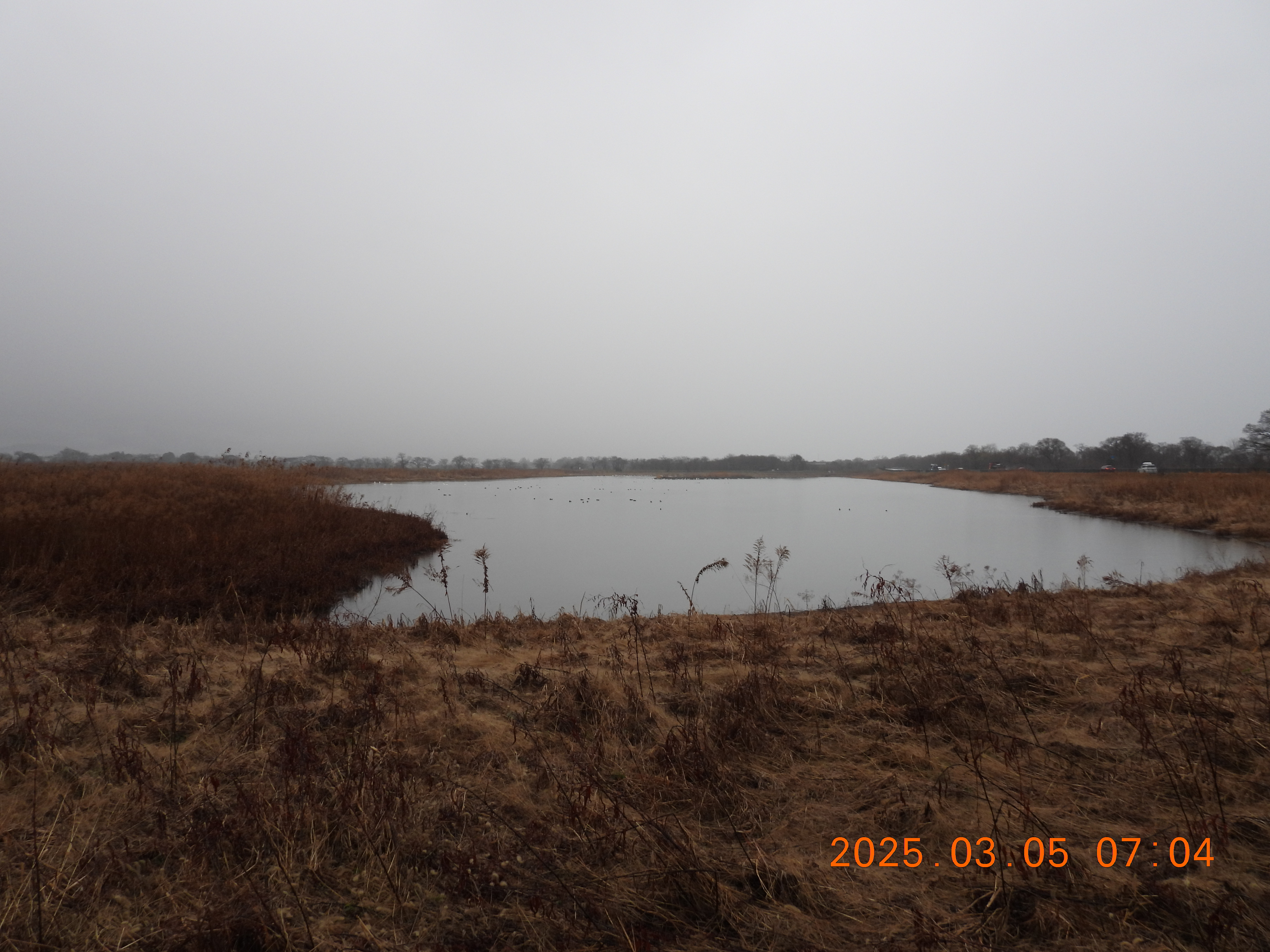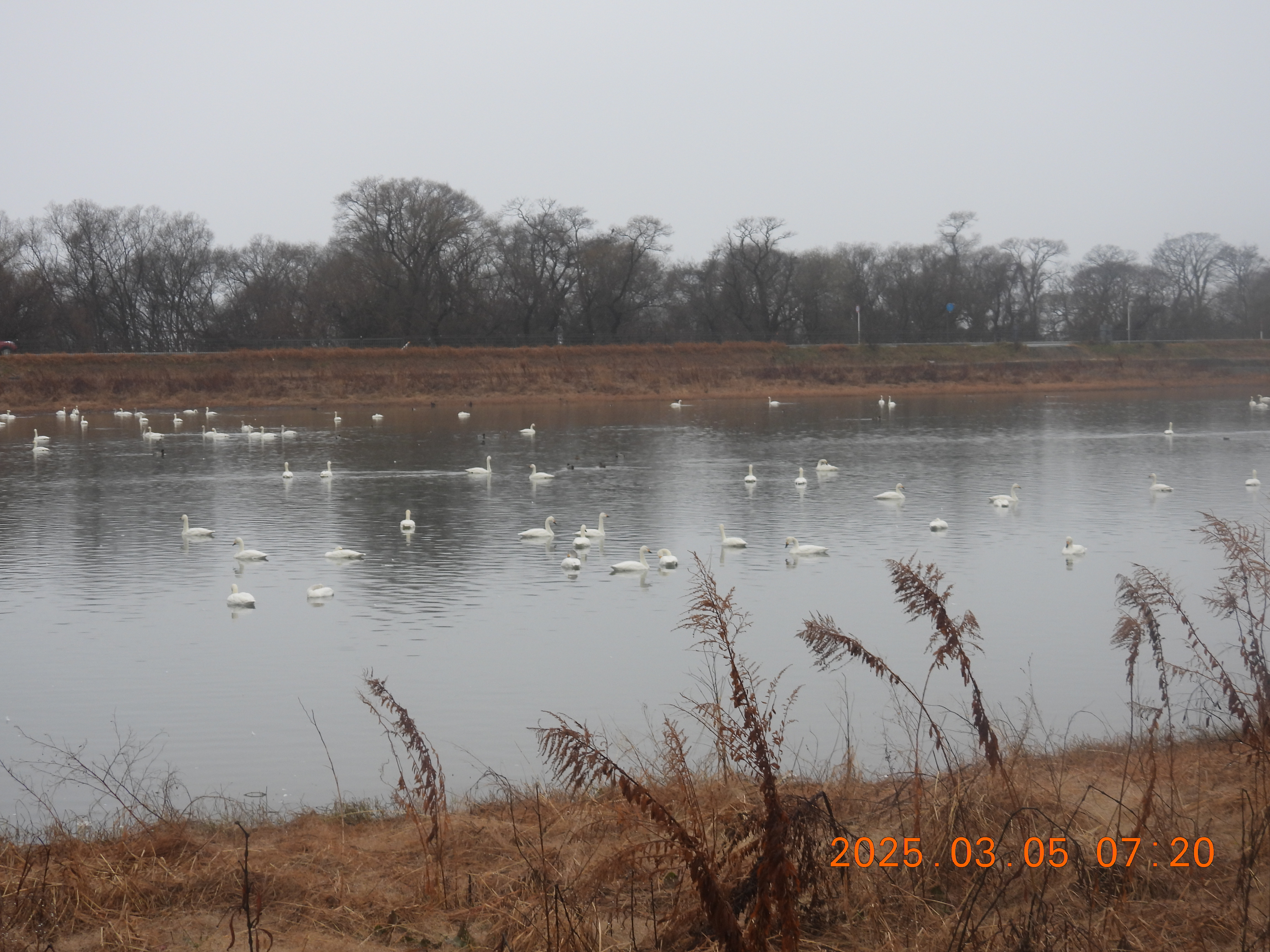 雨で視界が悪いです。コハクチョウ見えるかな?