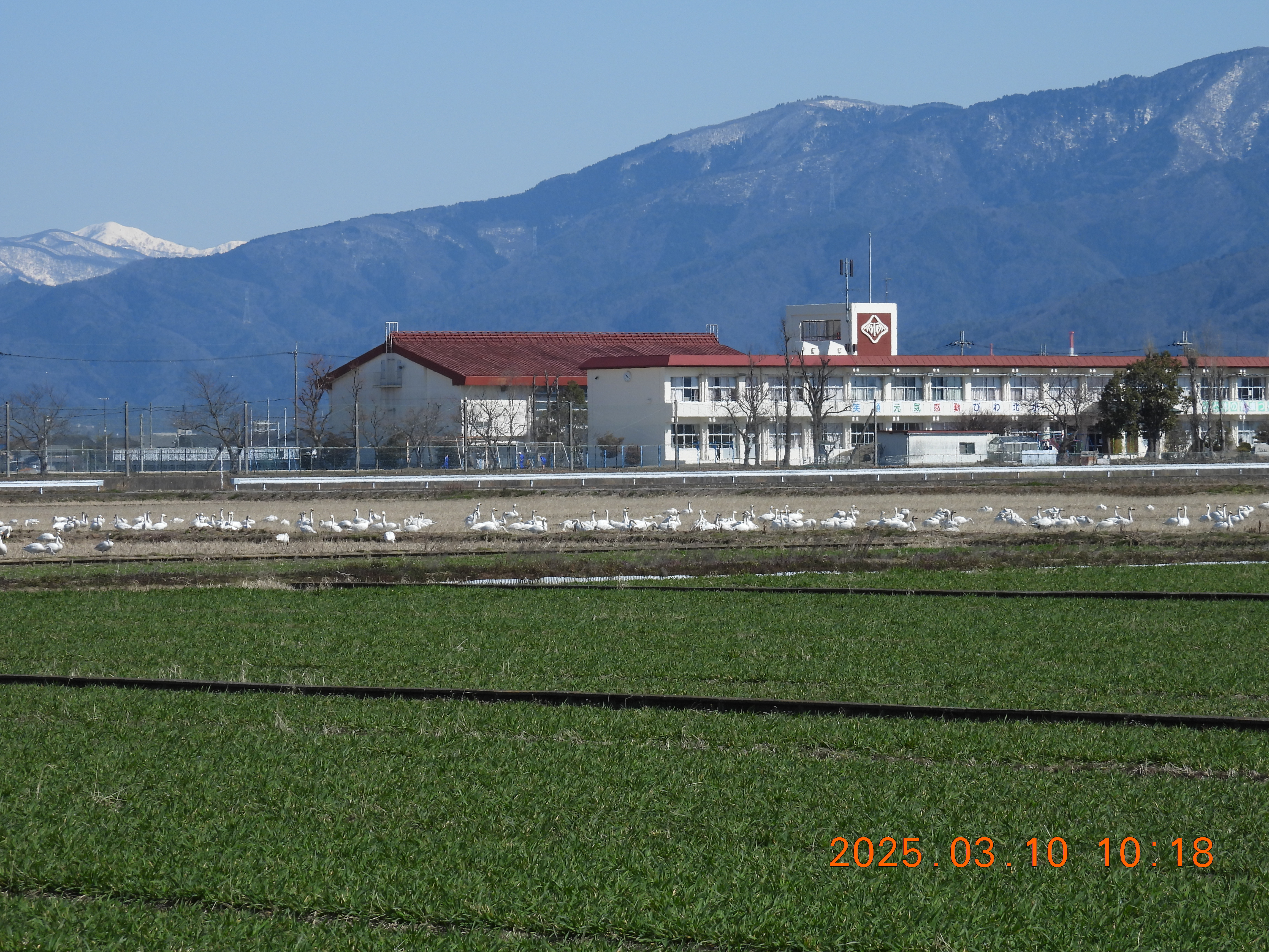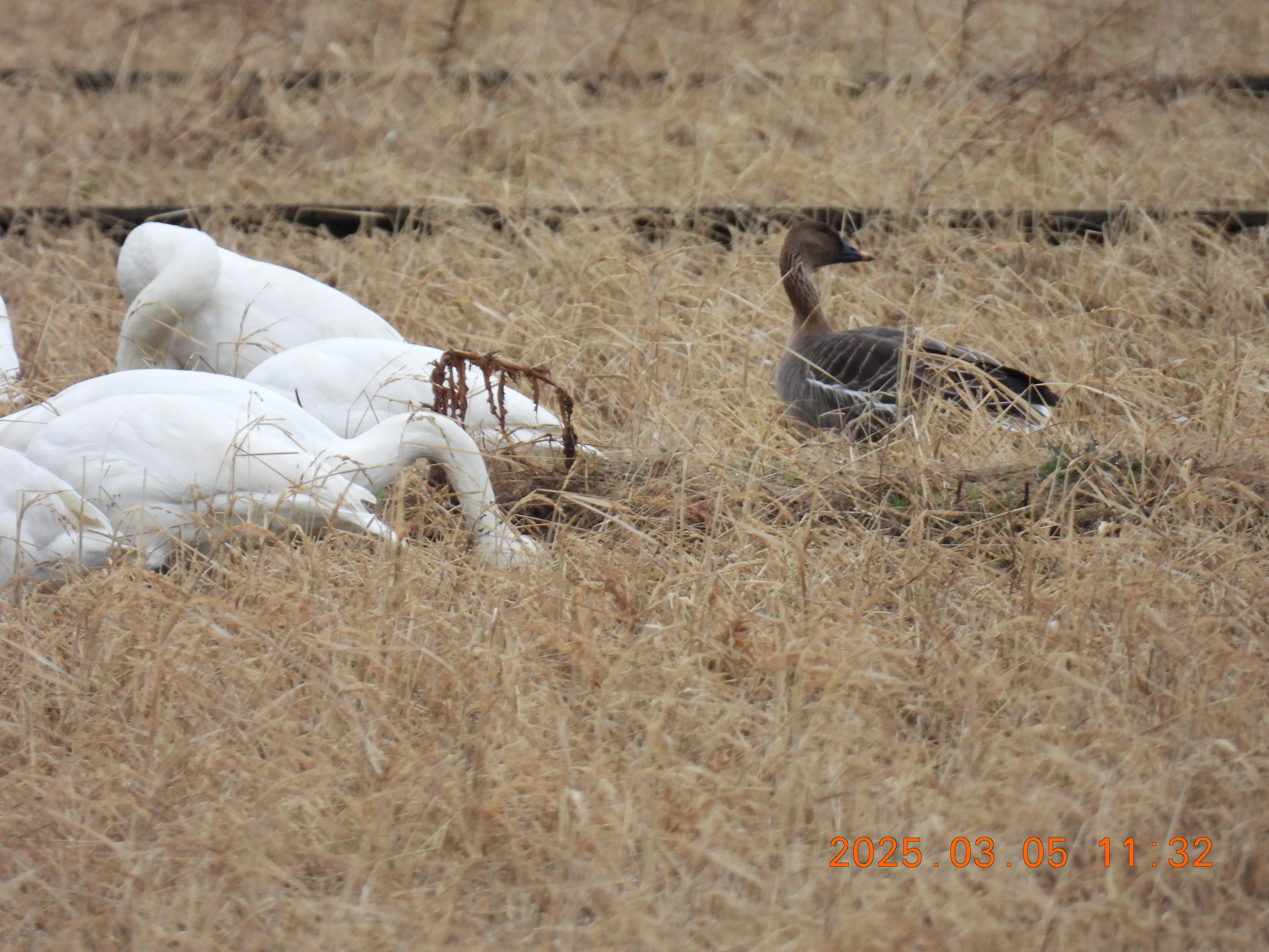 干拓田にいます。オオヒシクイもまだ一羽だけついてきています。
