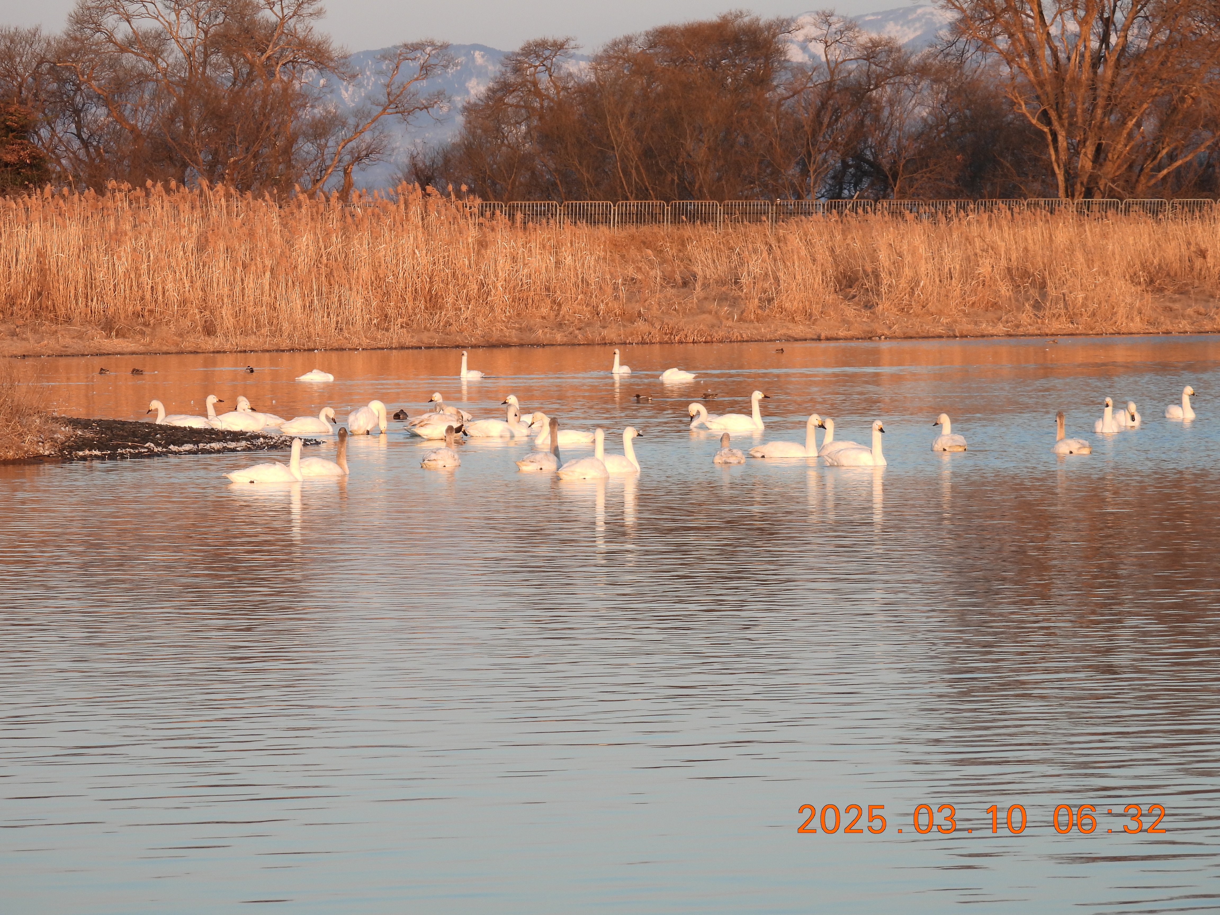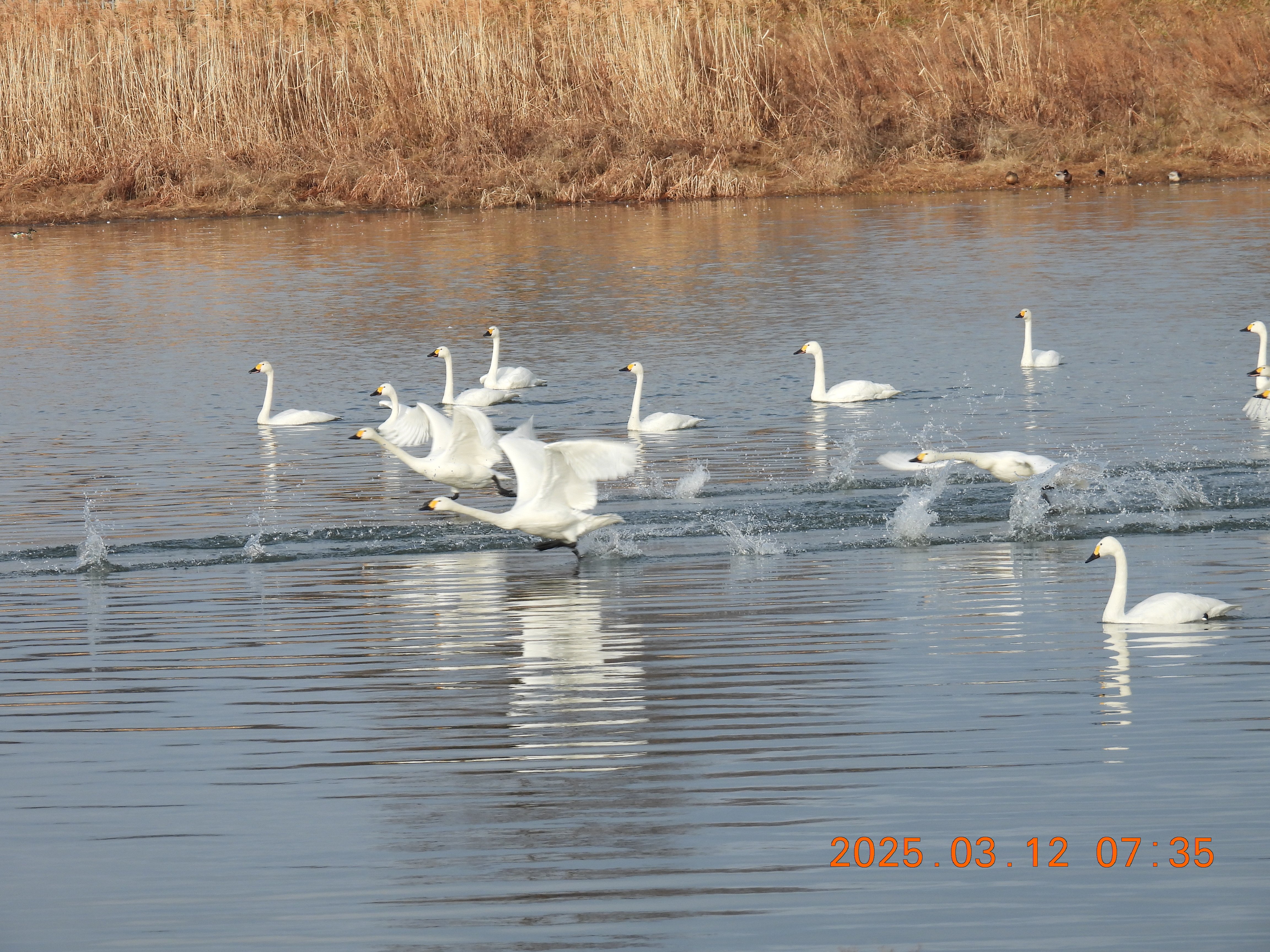 湖北に来ているコハクチョウが全数来ているかのように多くいます。