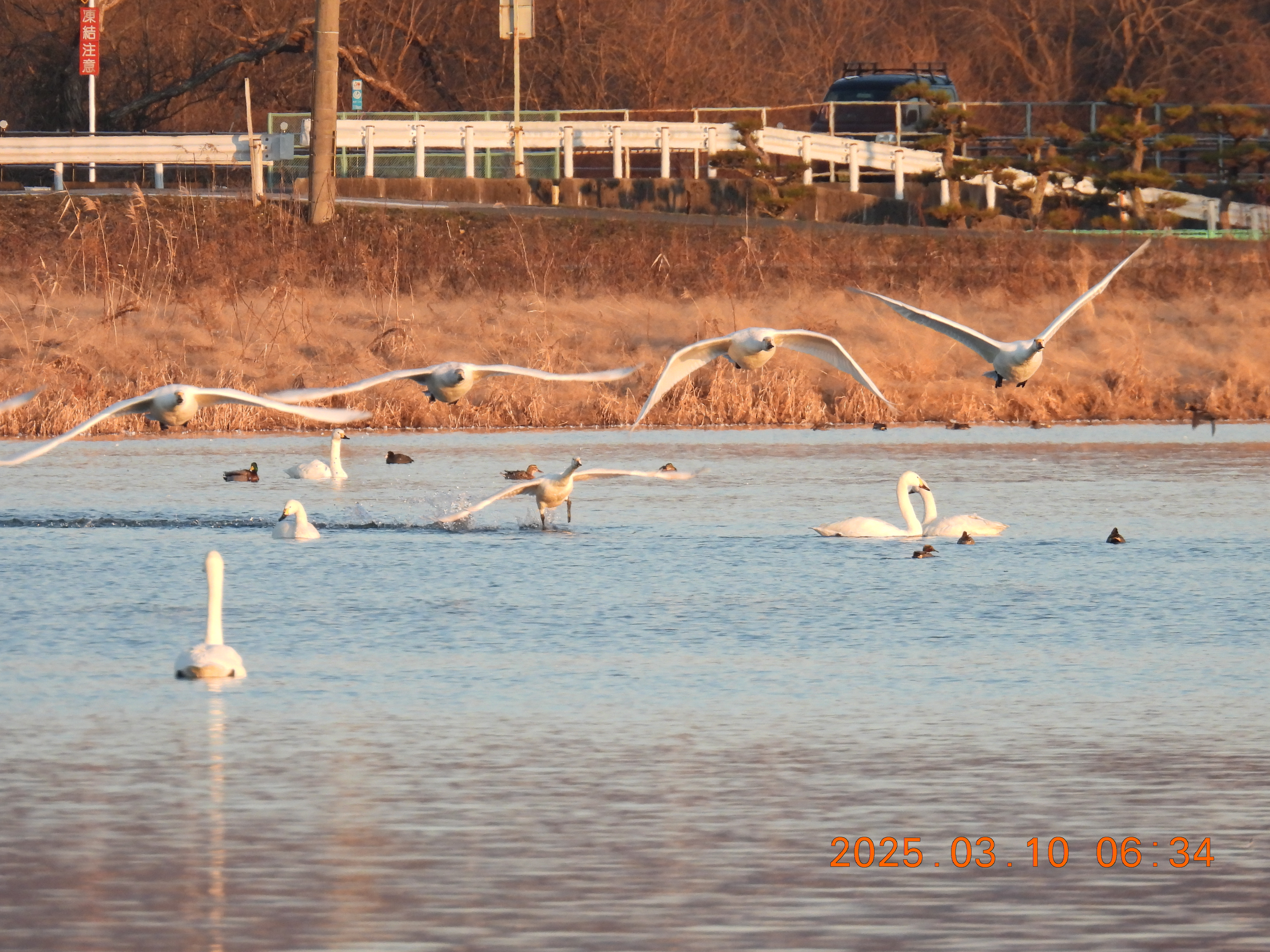 突然6羽のコハクチョウが飛び立ちましたが、