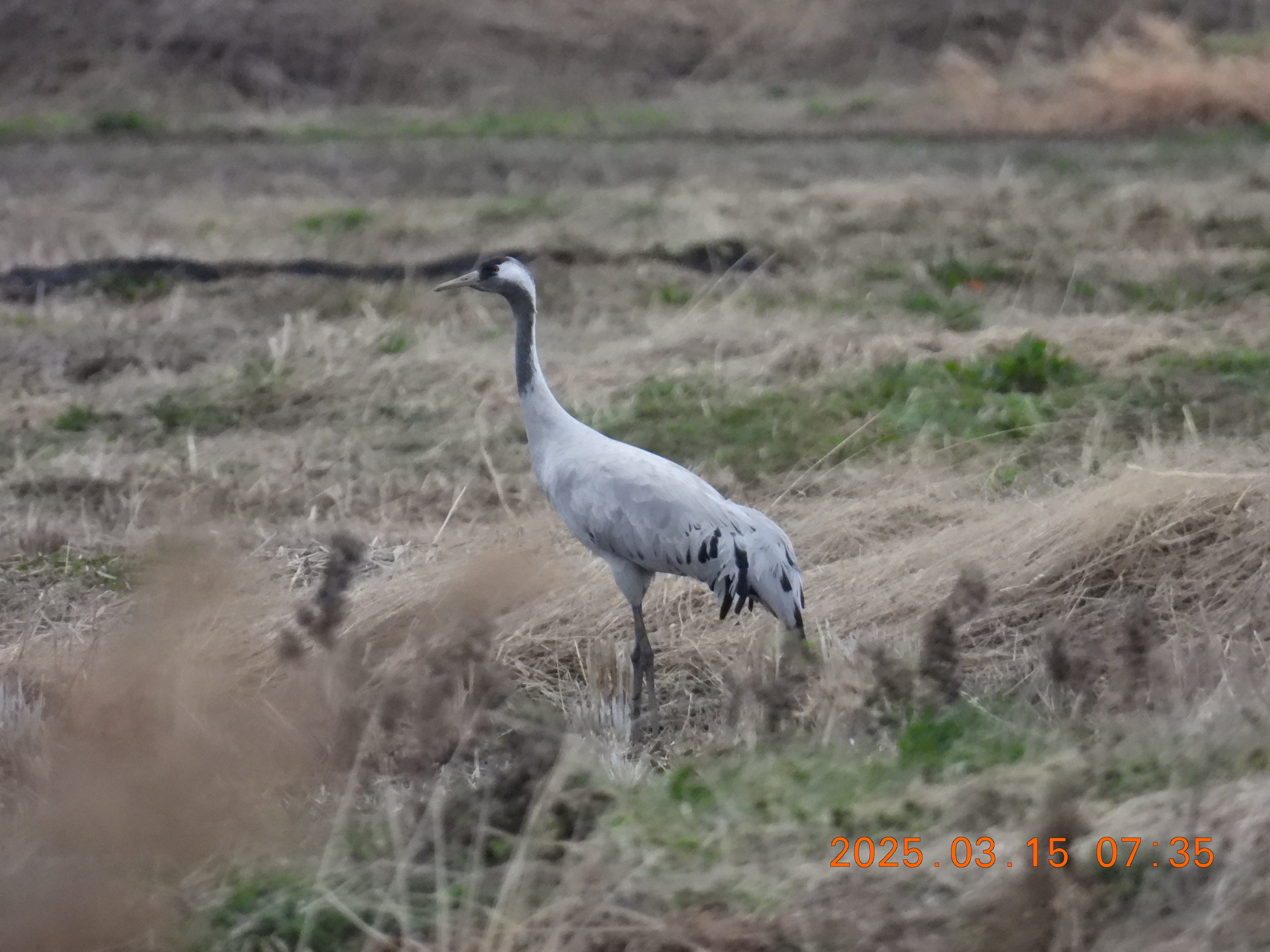 早朝飛んできたクロツルも干拓田で一人ぼっちでいます。カメラマンもいません。