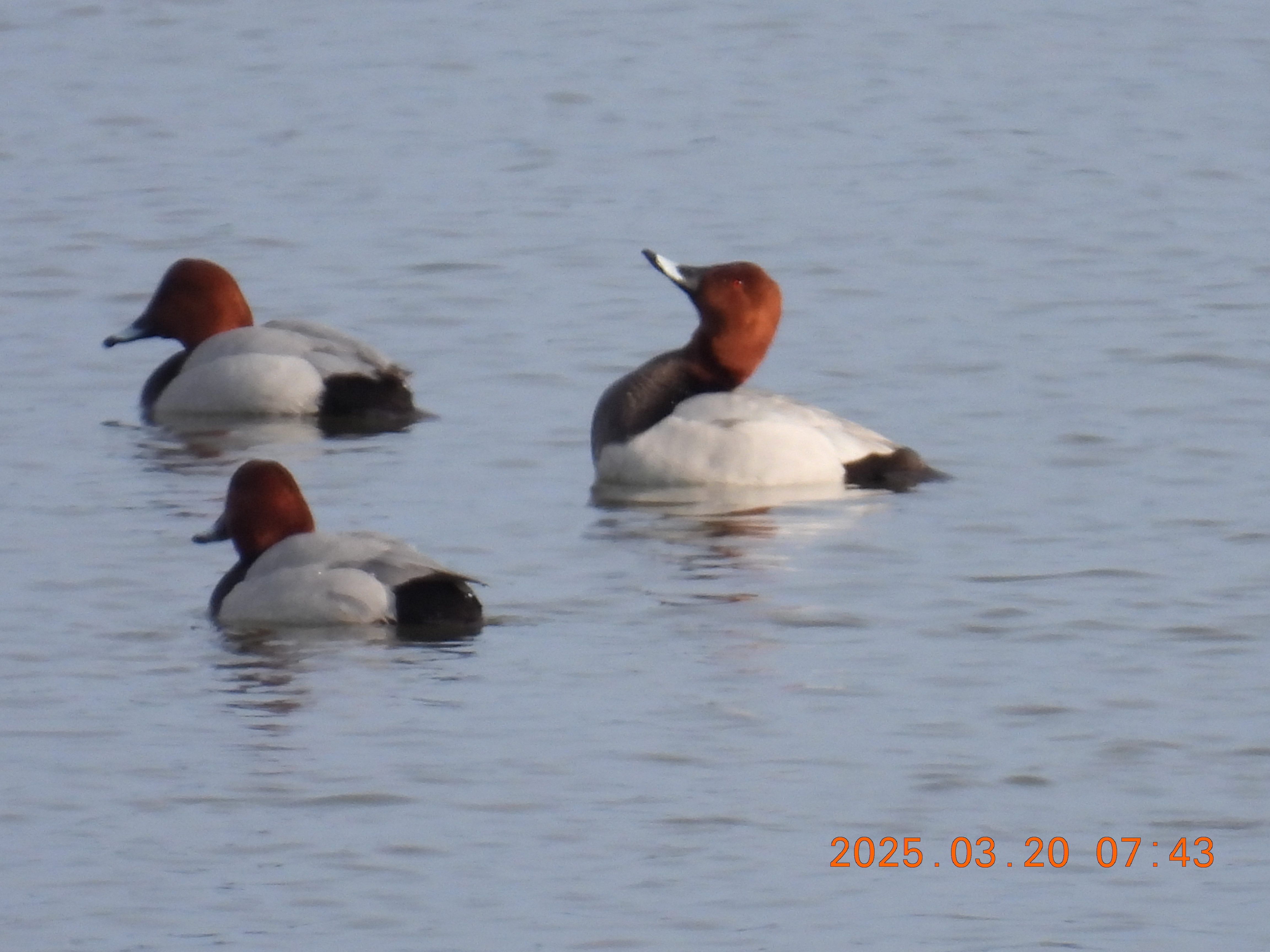 今朝は、ホシハジロの群れが入ってきています。