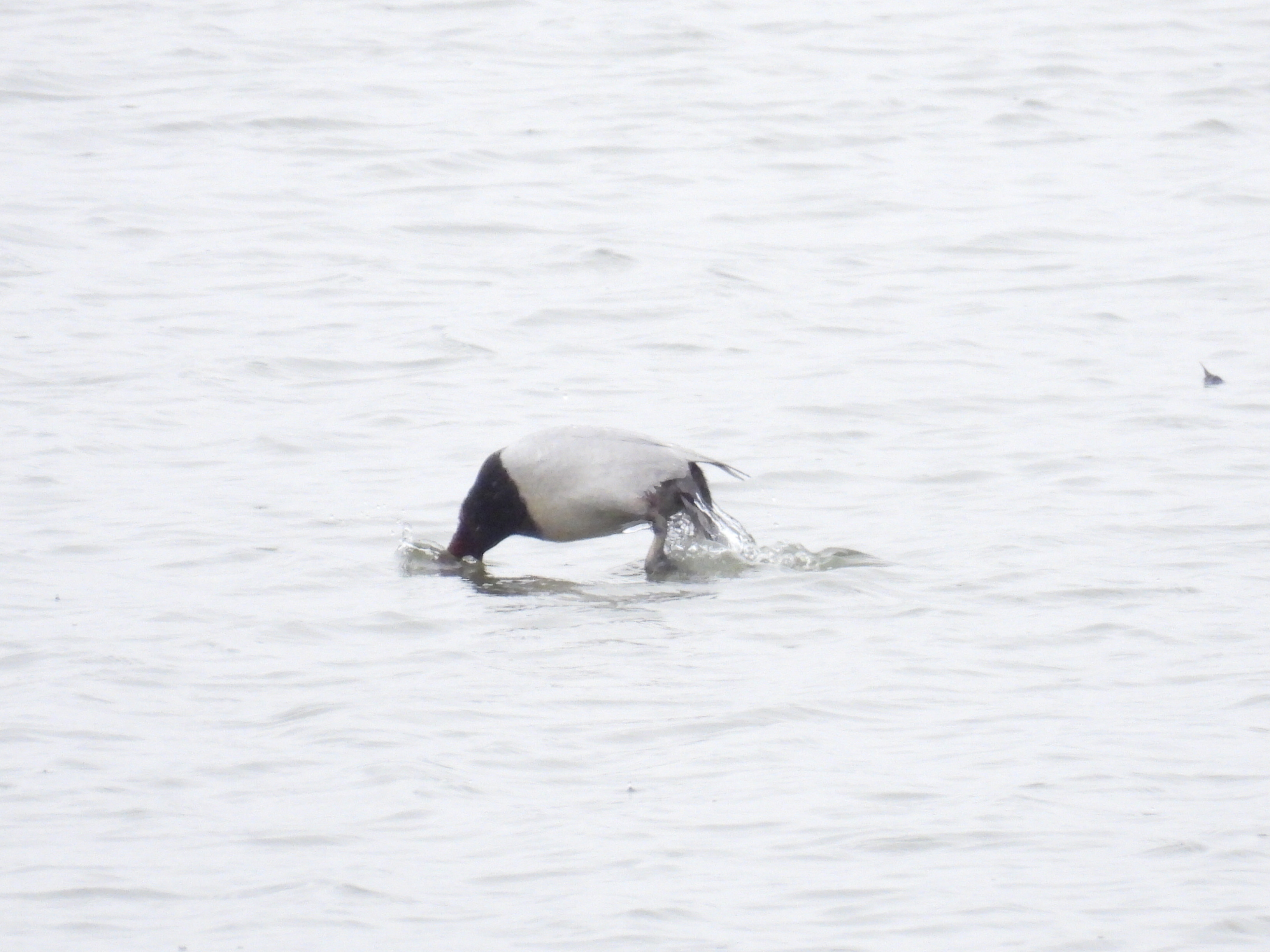 ホシハジロが水に入るところです他のカモと違って飛び込むように水中に入ります。