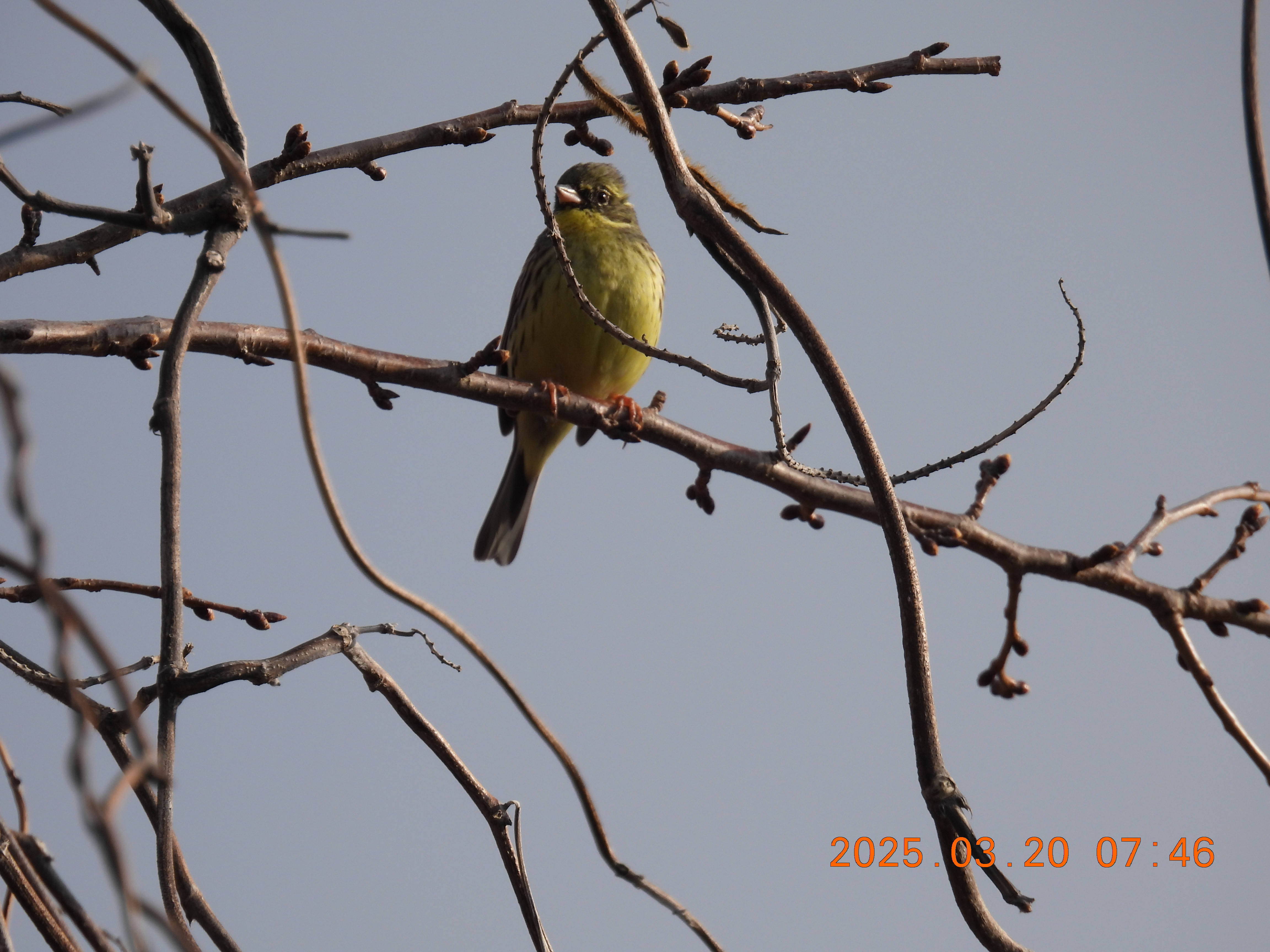 桜の木にアオジのようです。