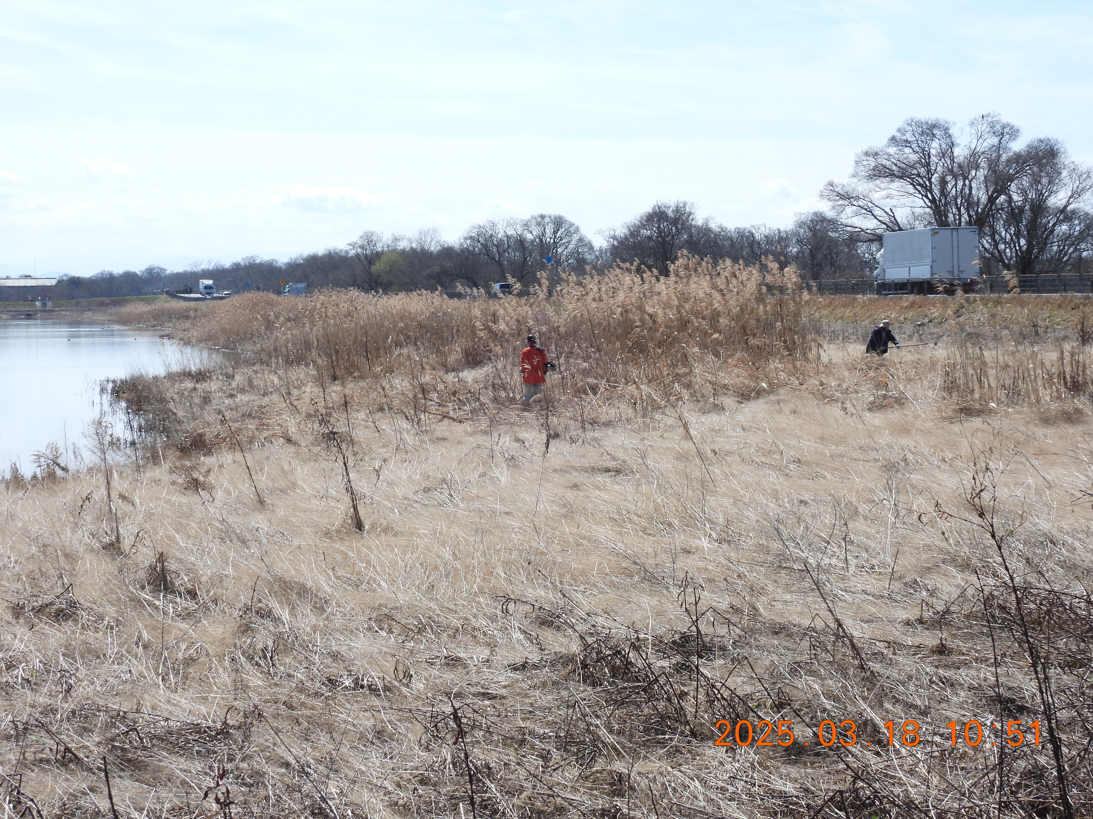 草刈り機で草やヨシを刈り倒していきます。3/18撮影