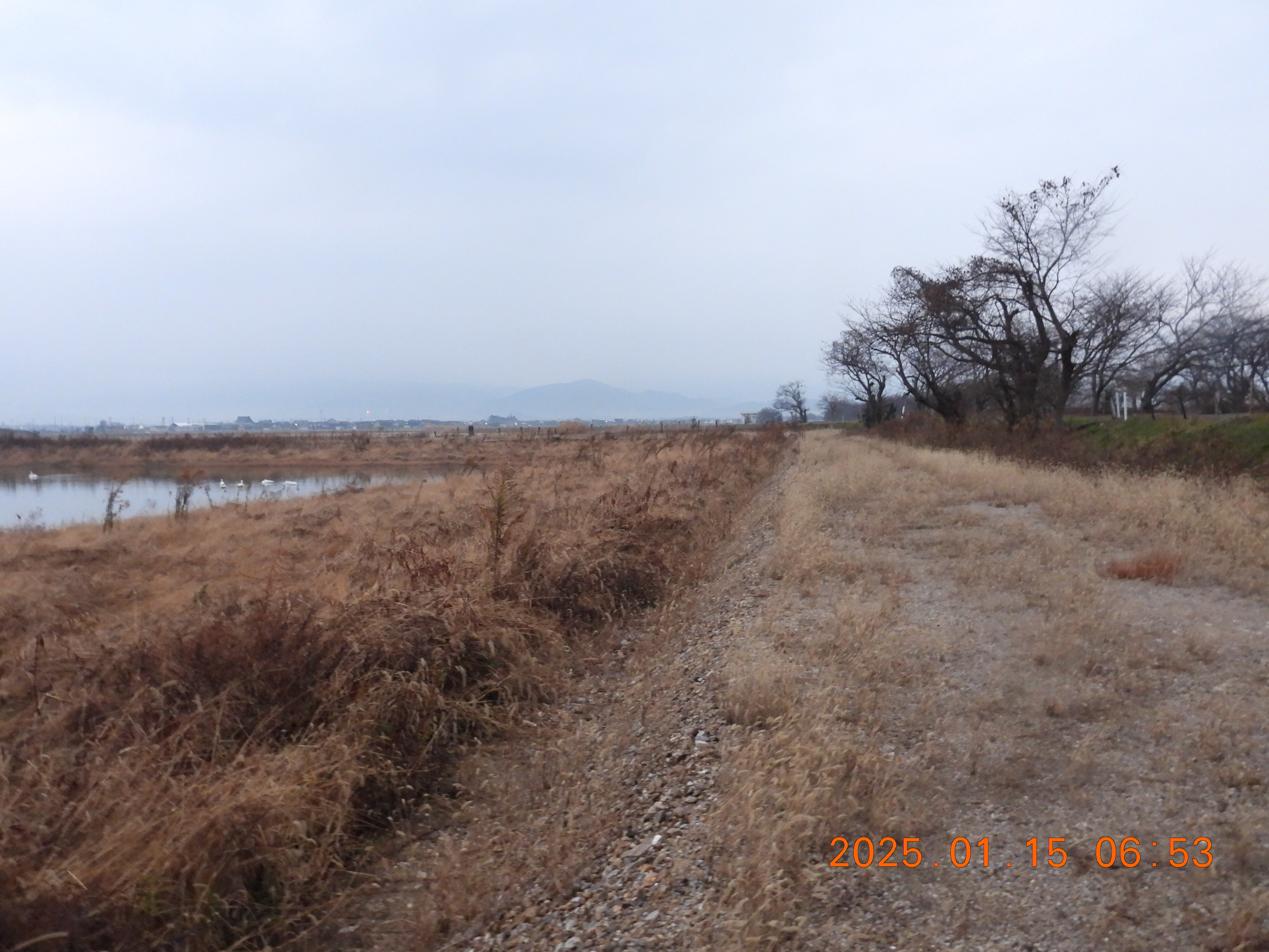 今朝は雨が降っています。コハクチョウも300羽近く入っているかな。