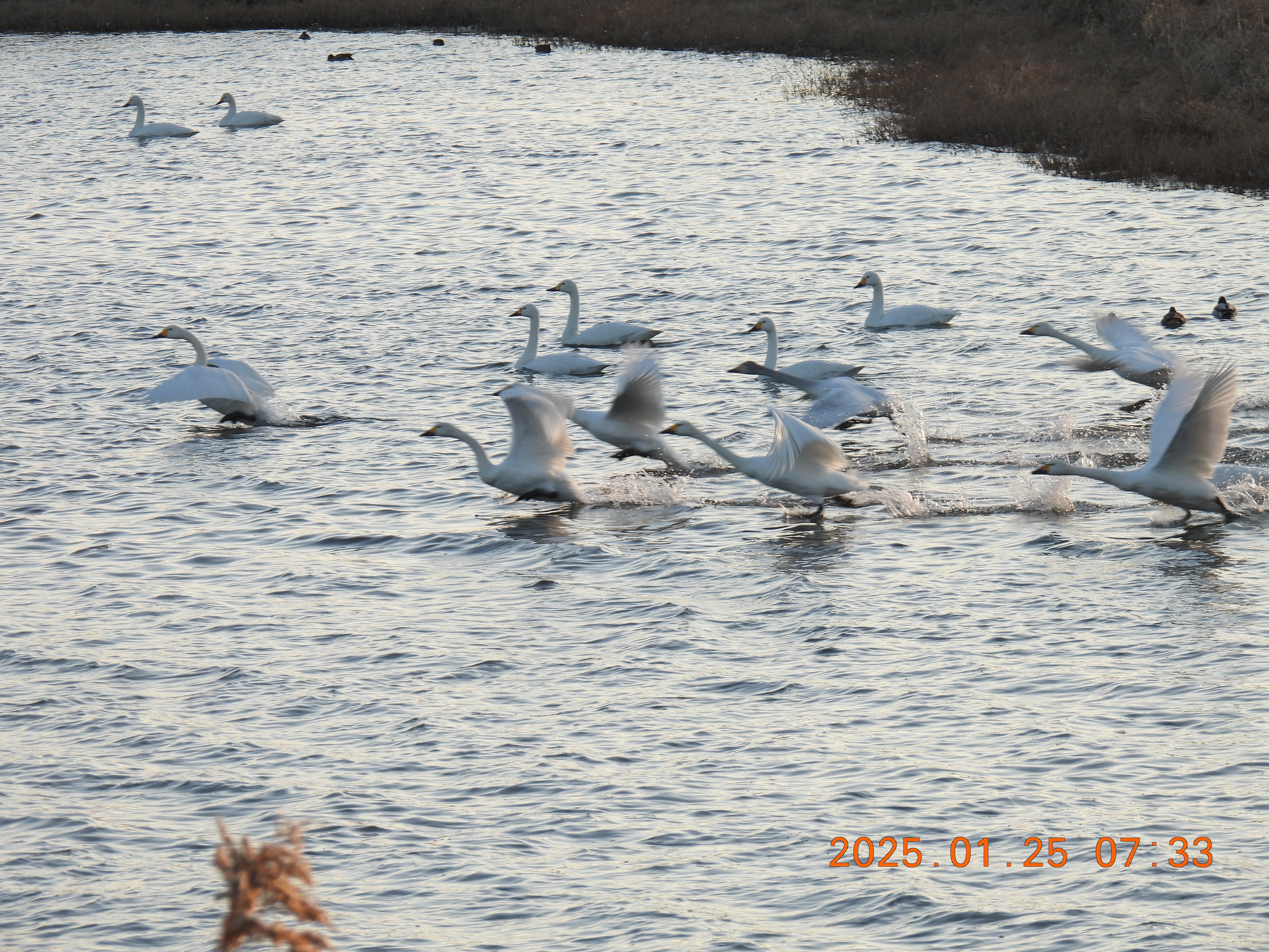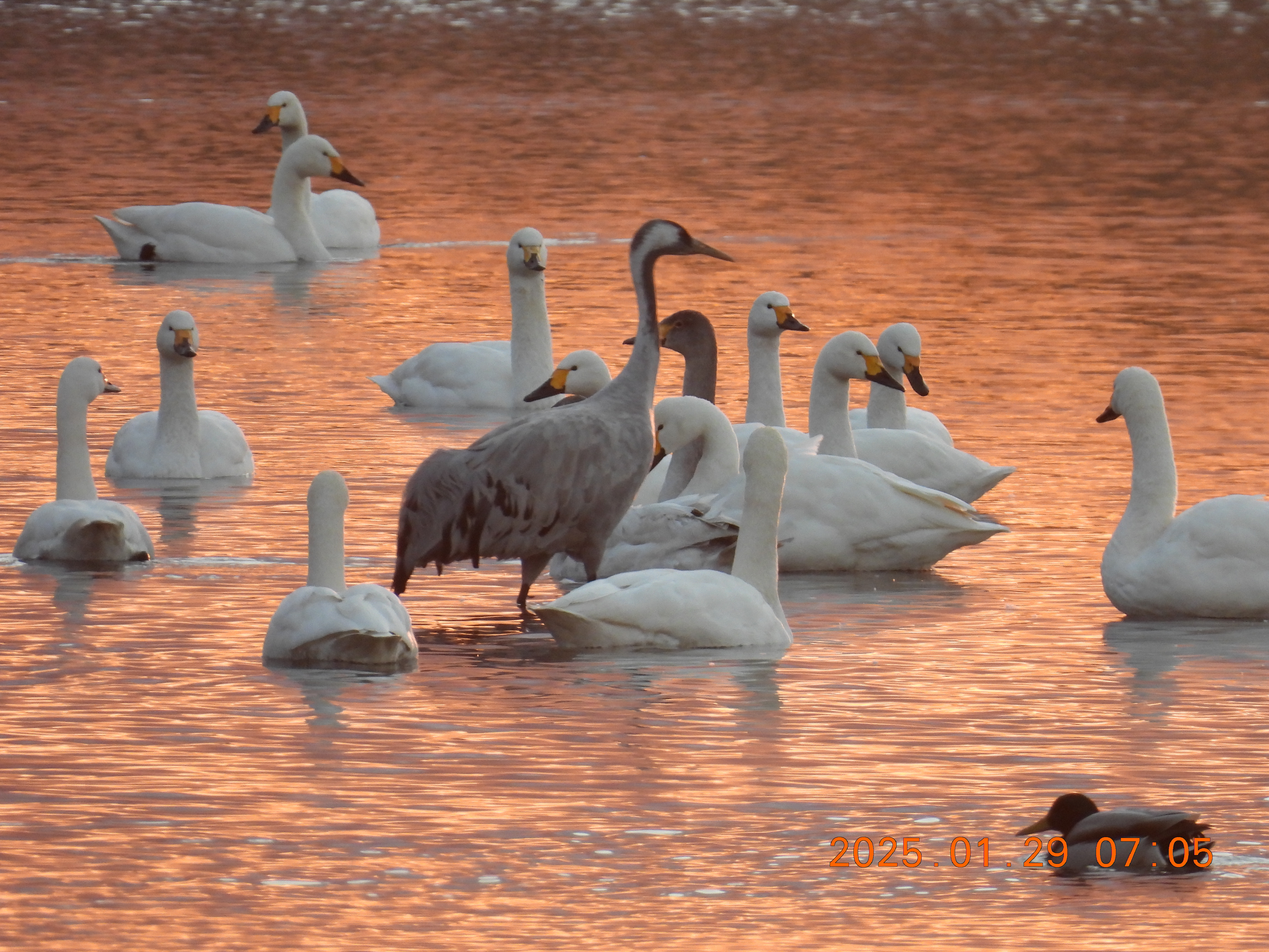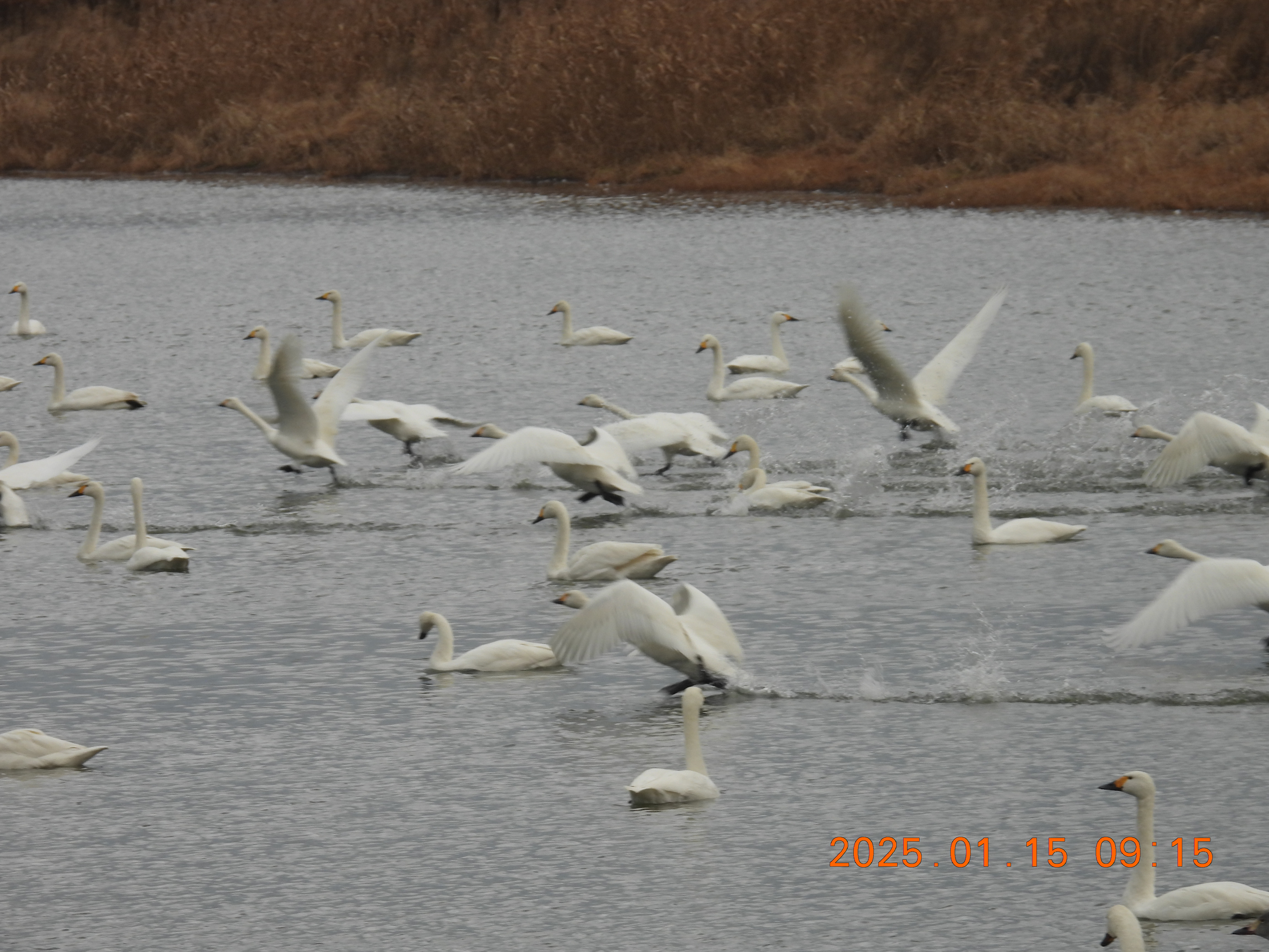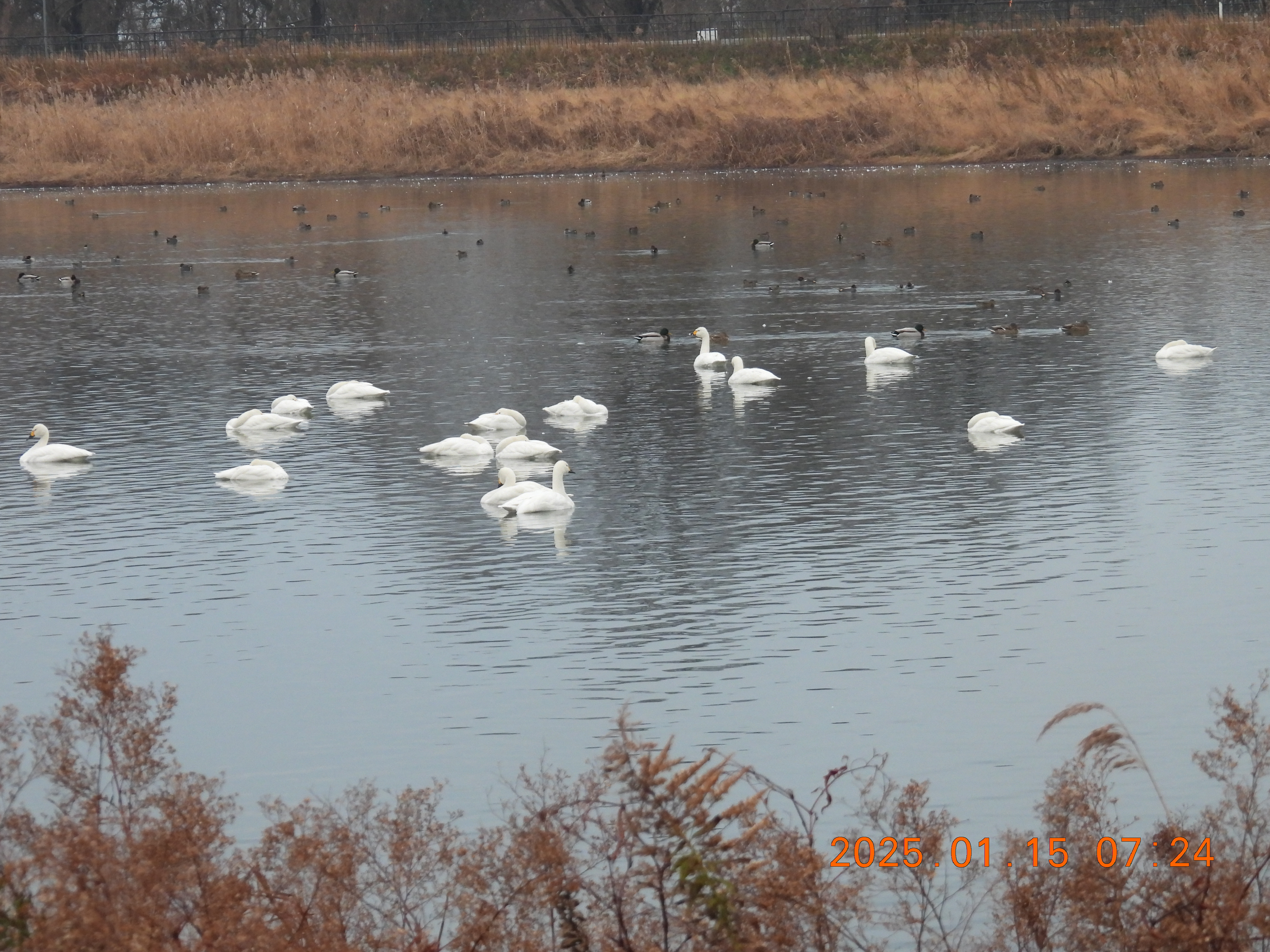 今朝のコハクチョウの約役全体数の撮影です。