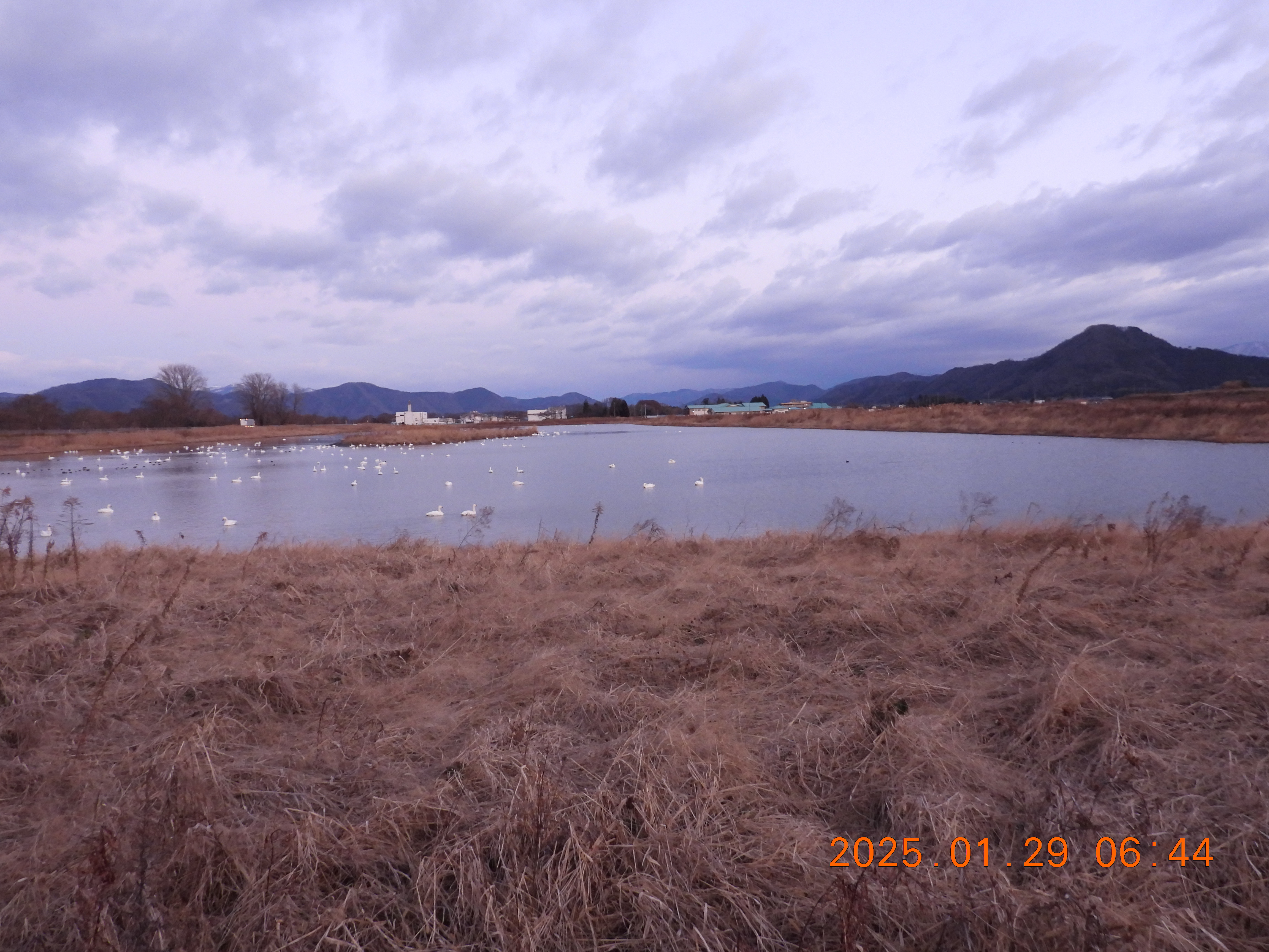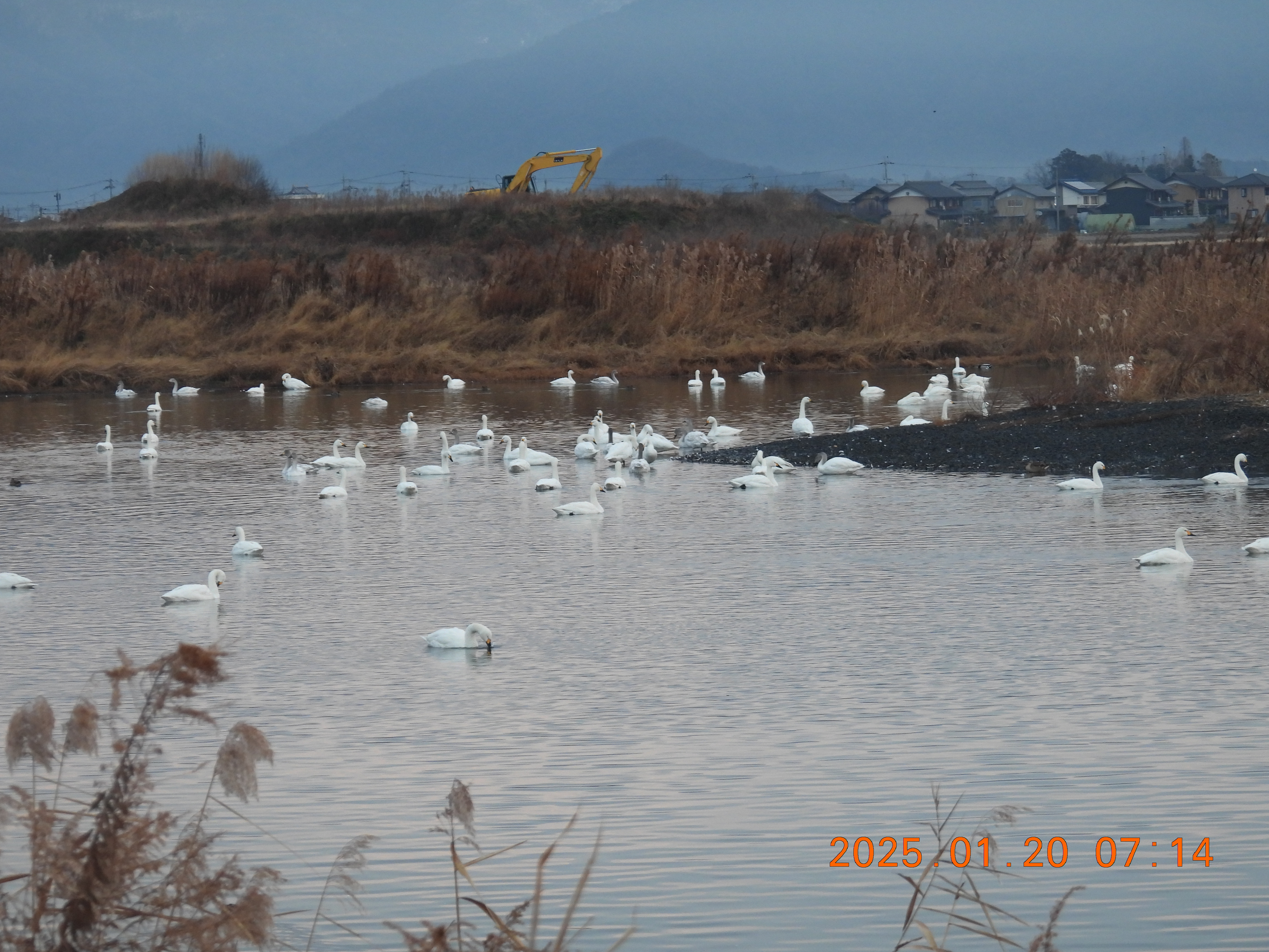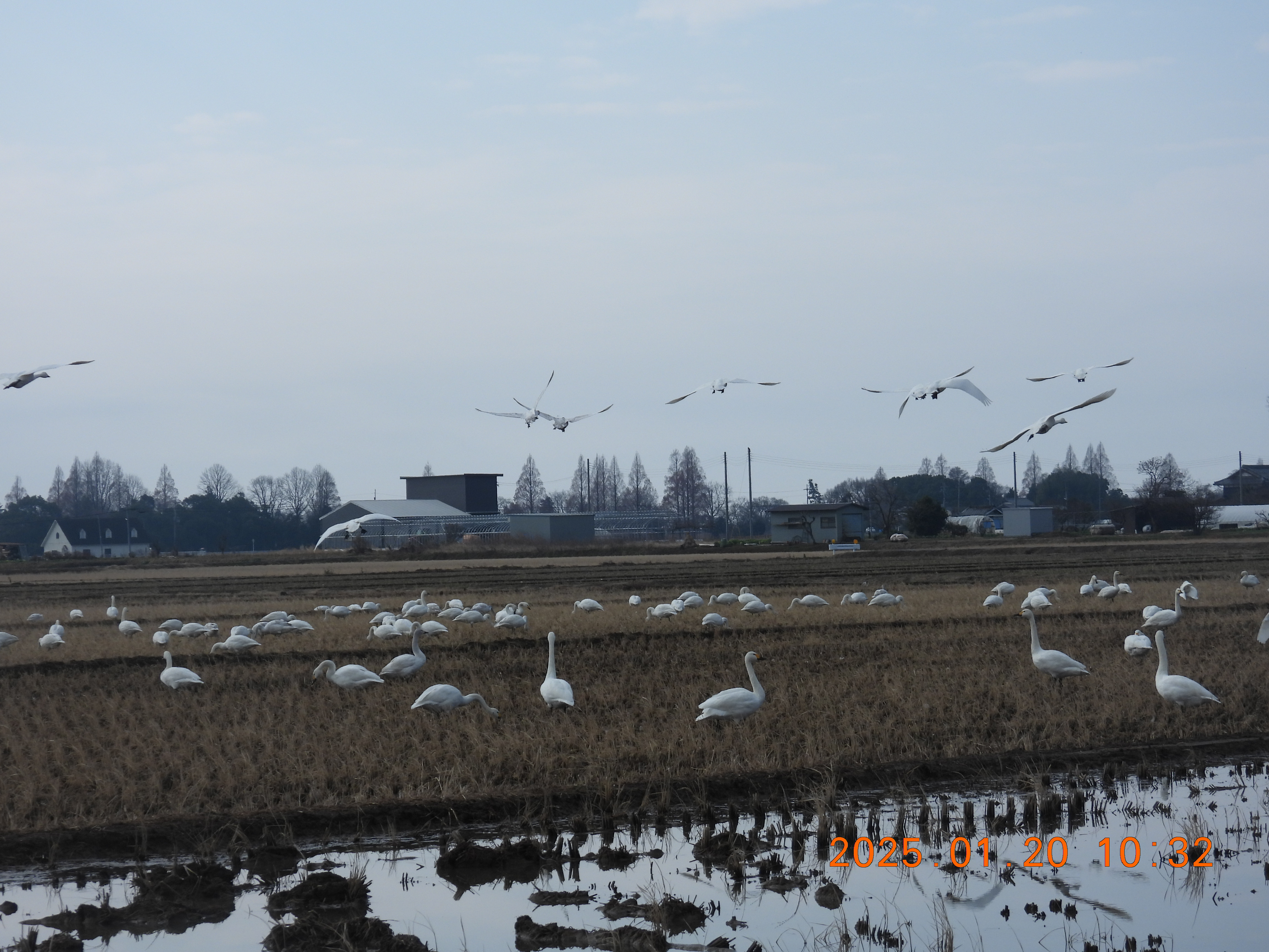 今朝のコハクチョウの約役全体数の撮影です。