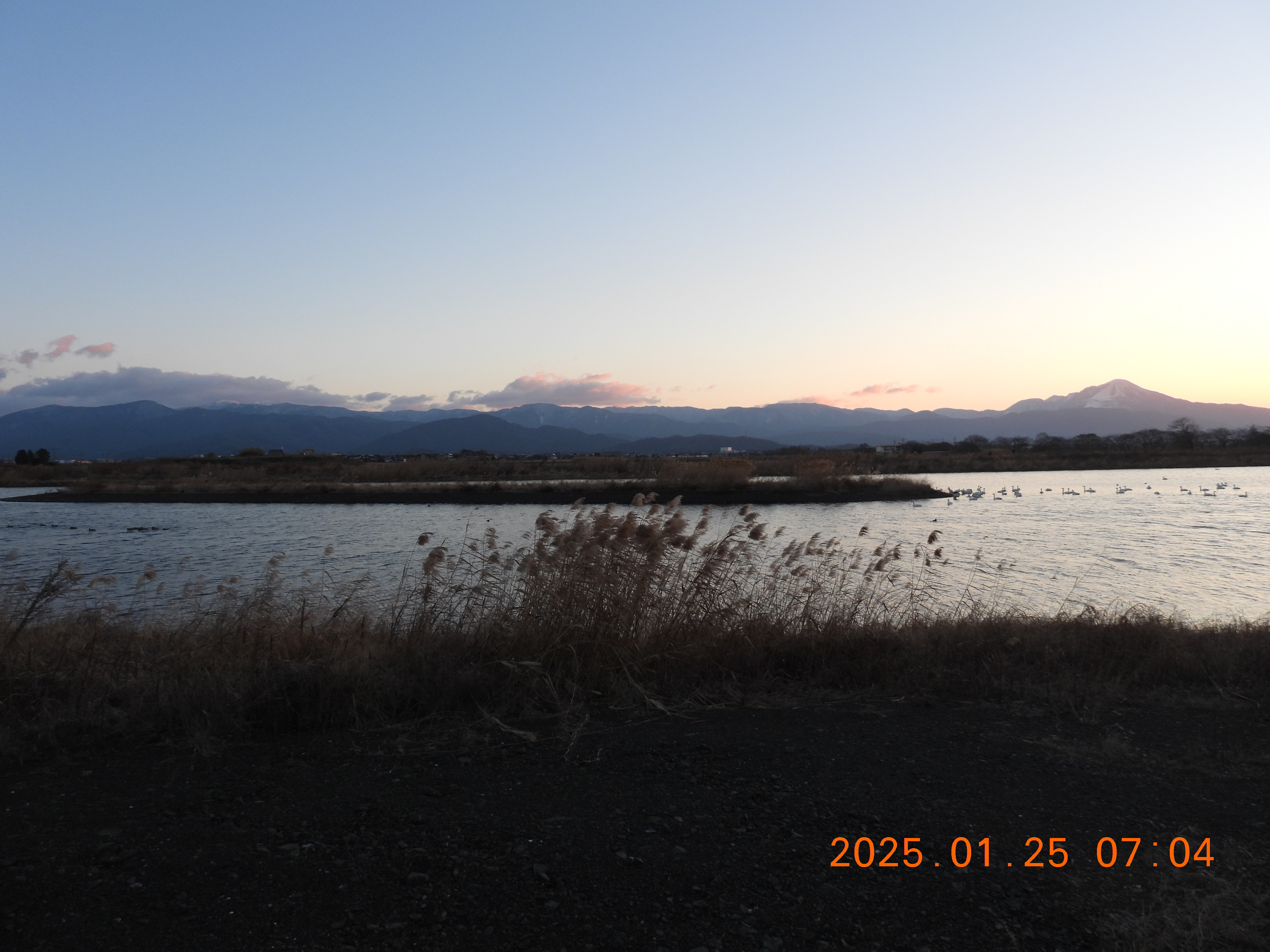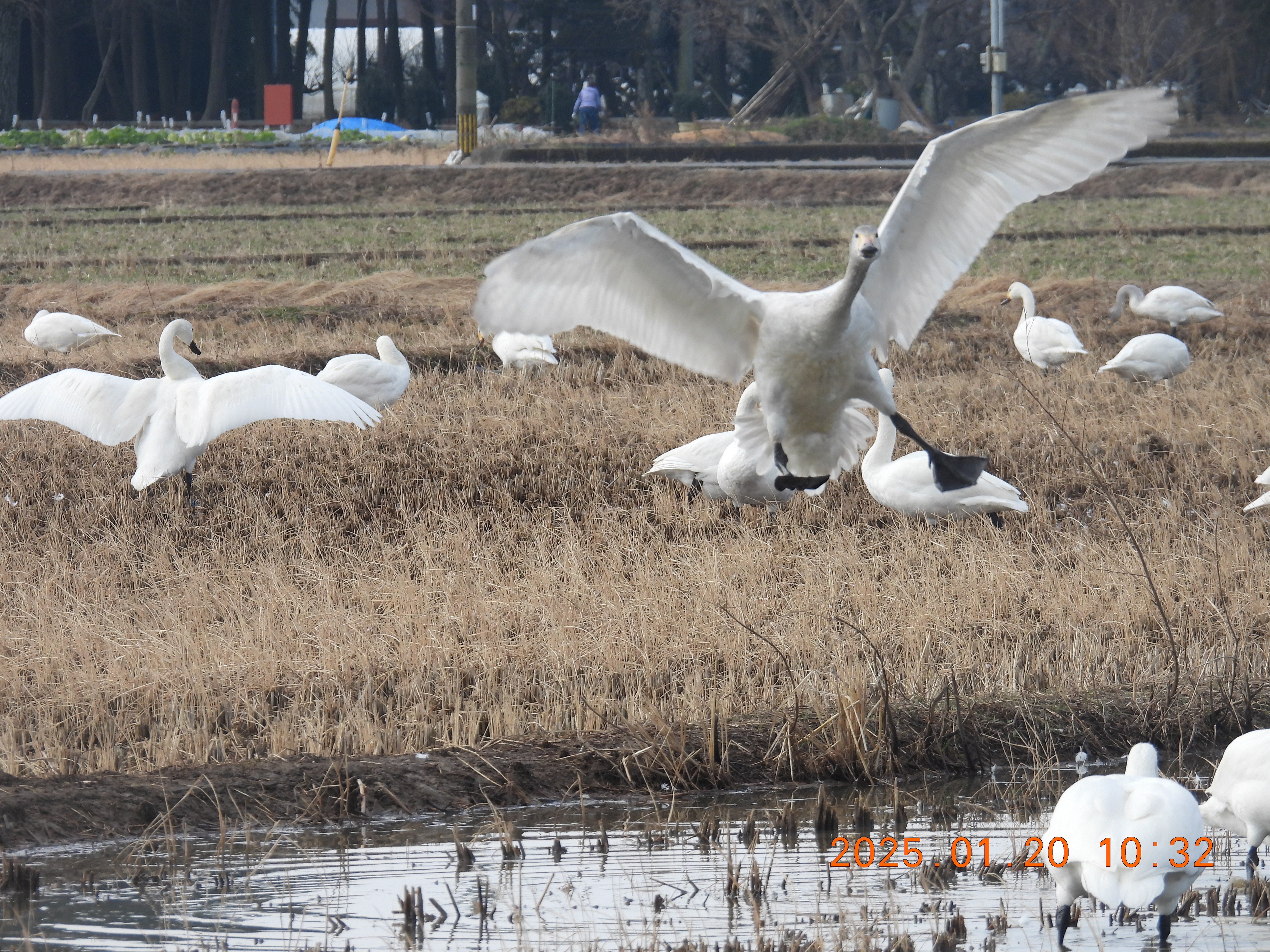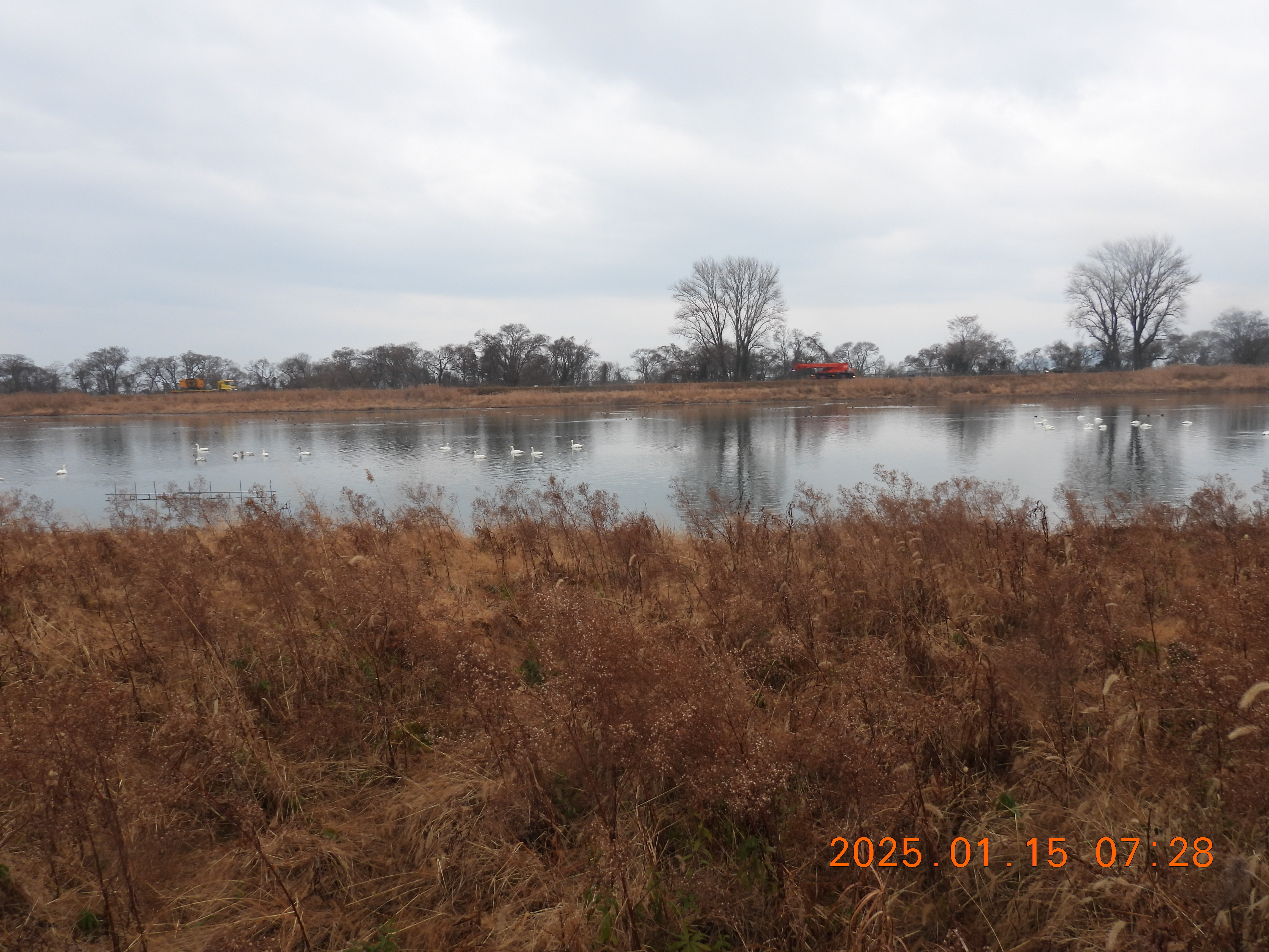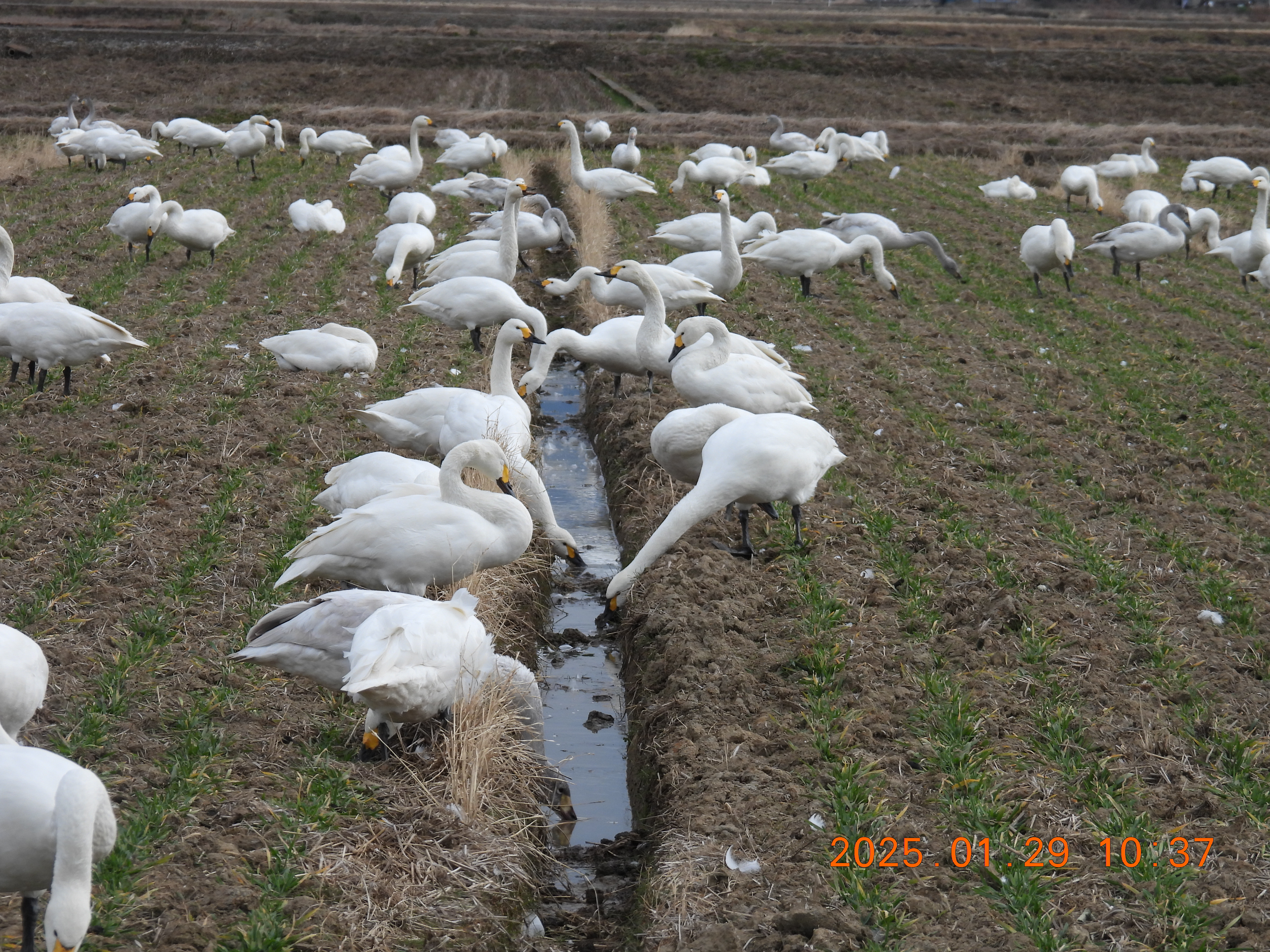 今朝のコハクチョウの約役全体数の撮影です。