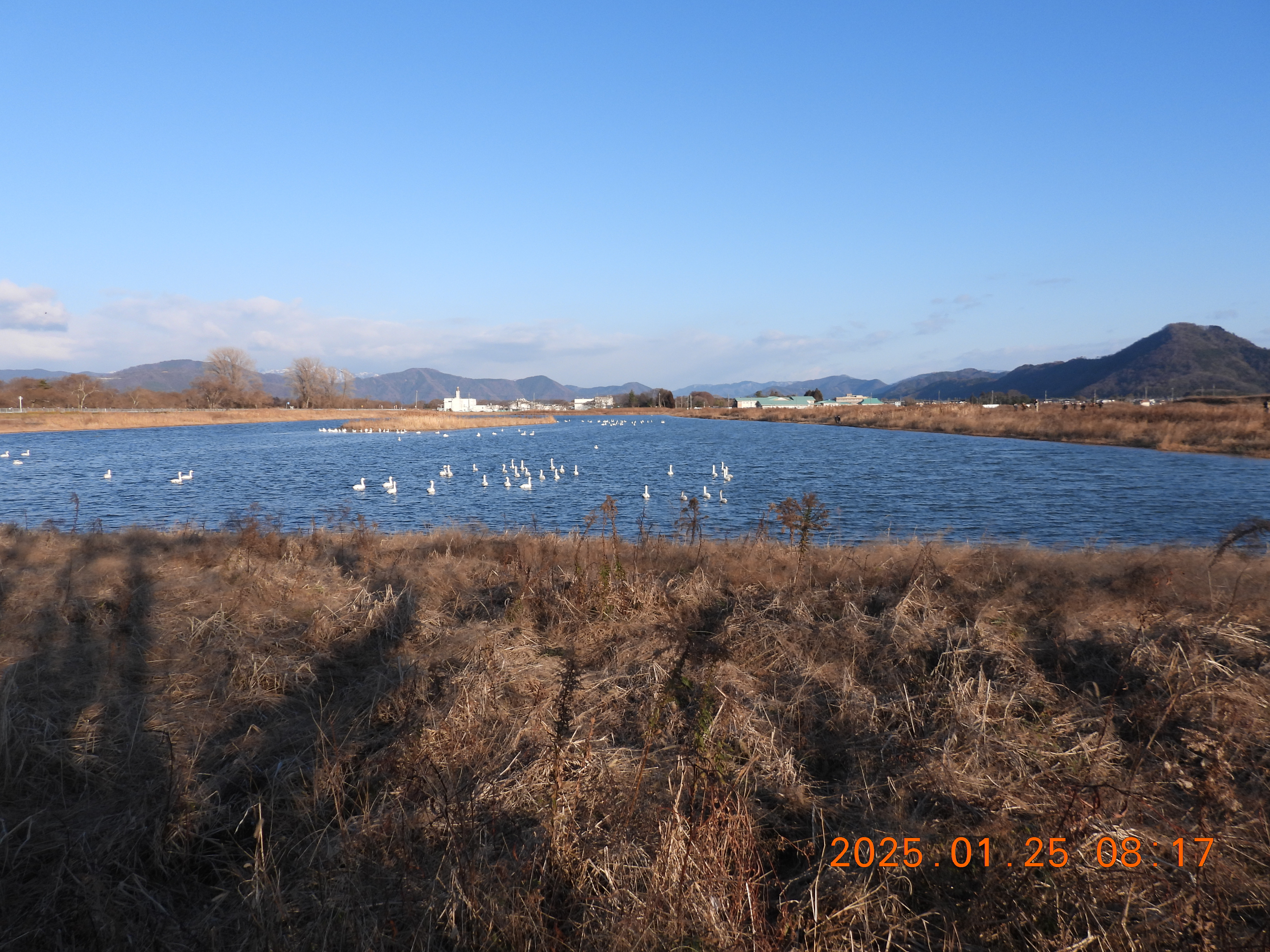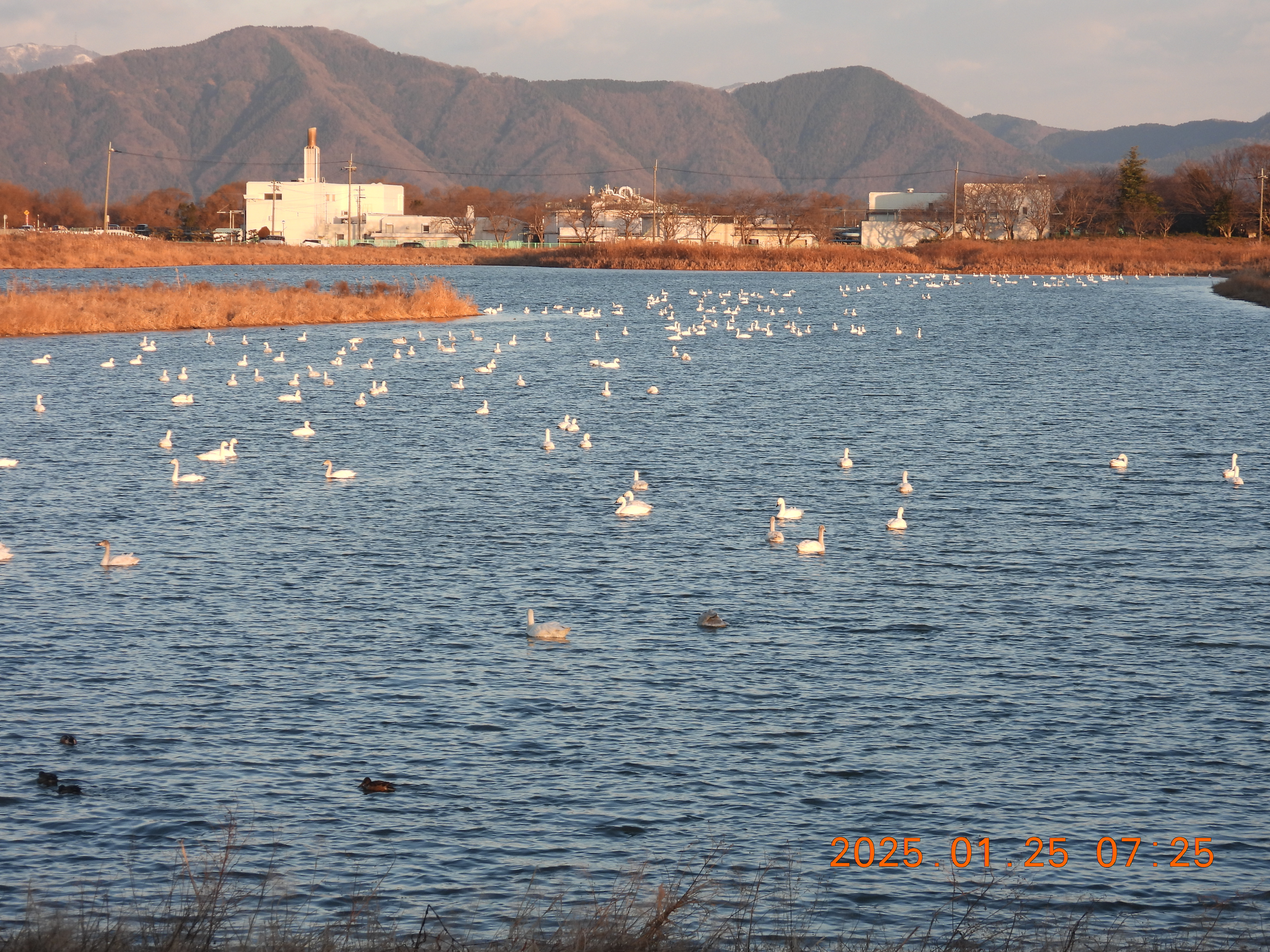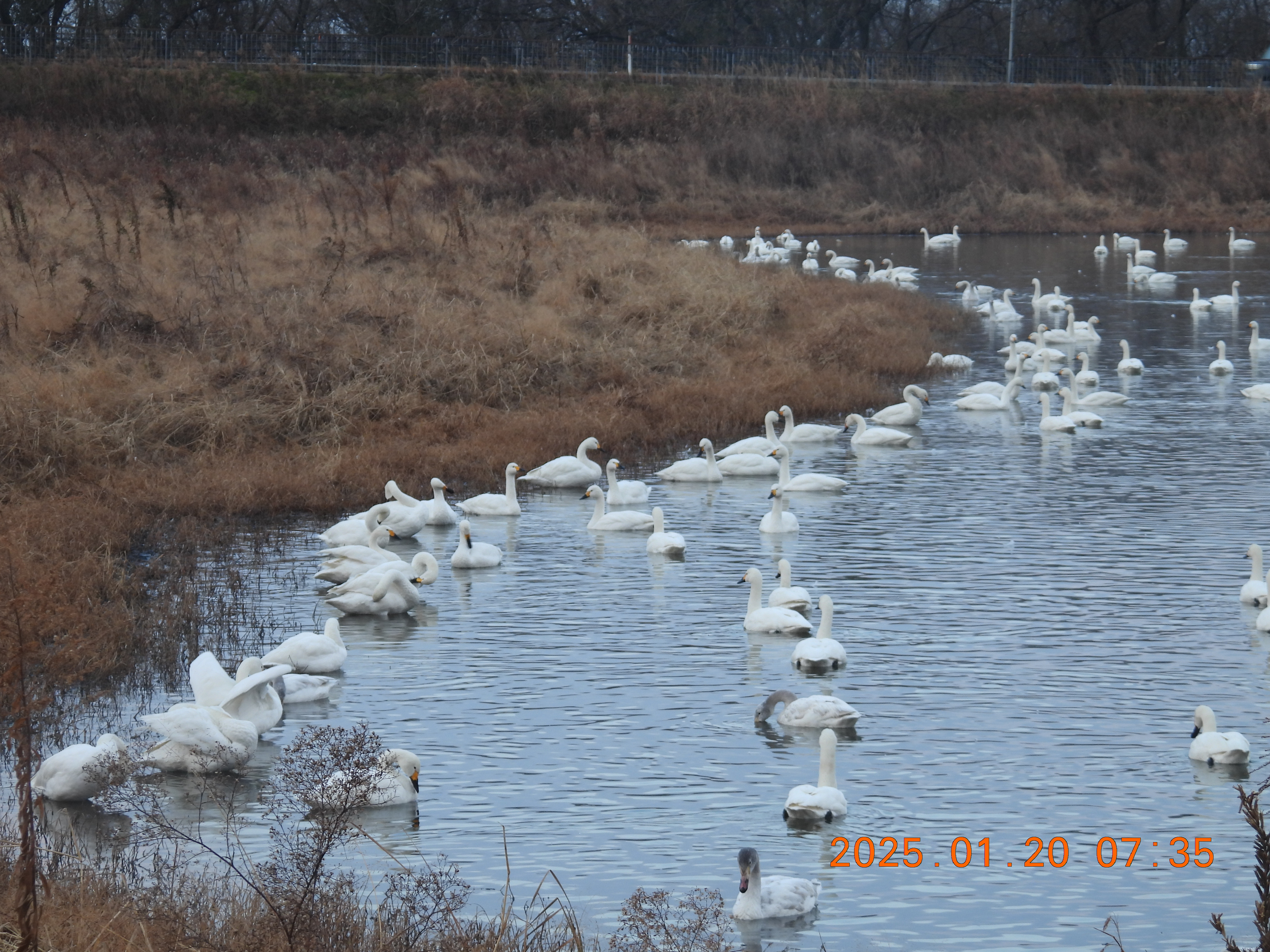 内湖にいたコハクチョウだけのようです。100羽位です。