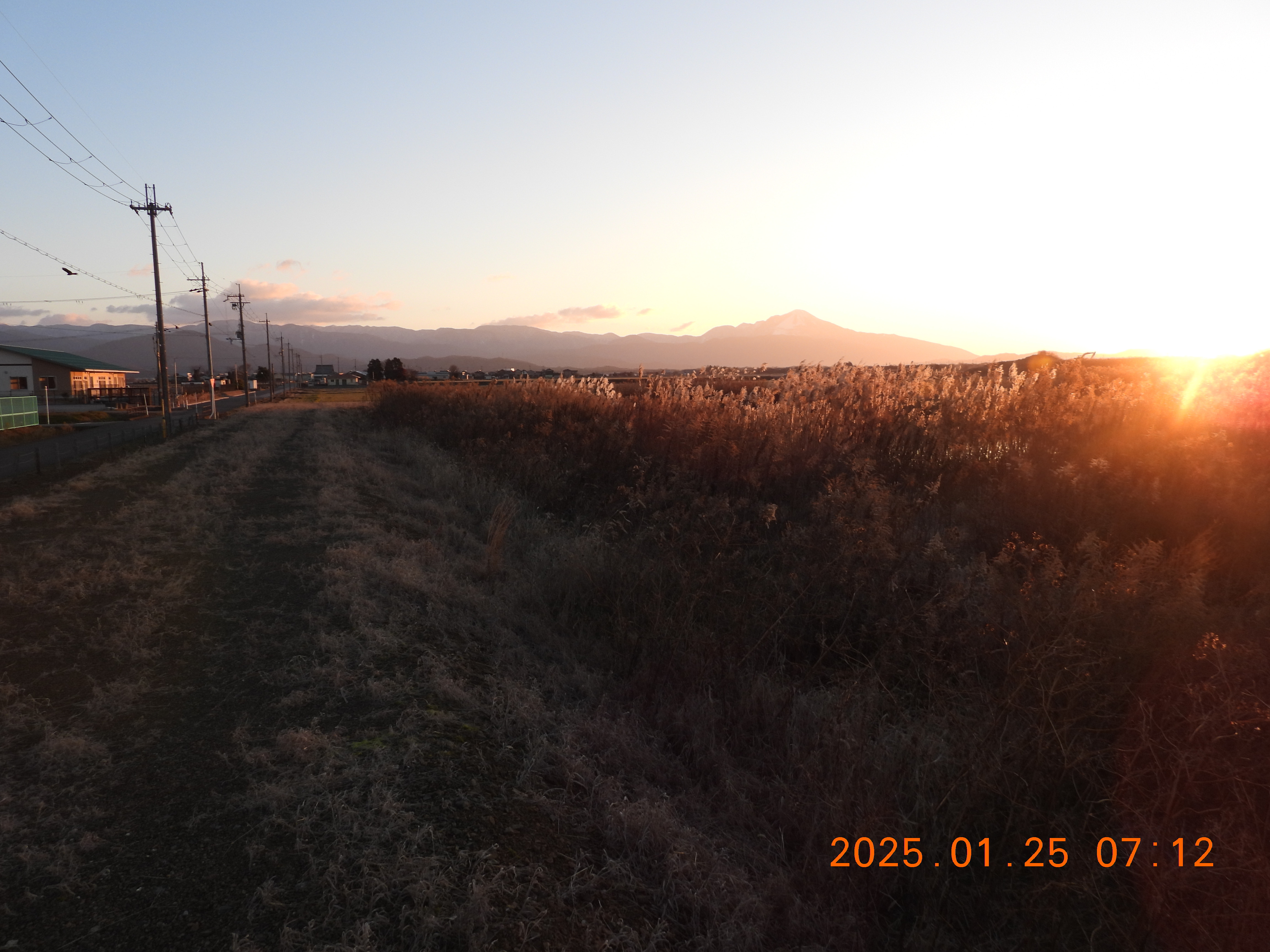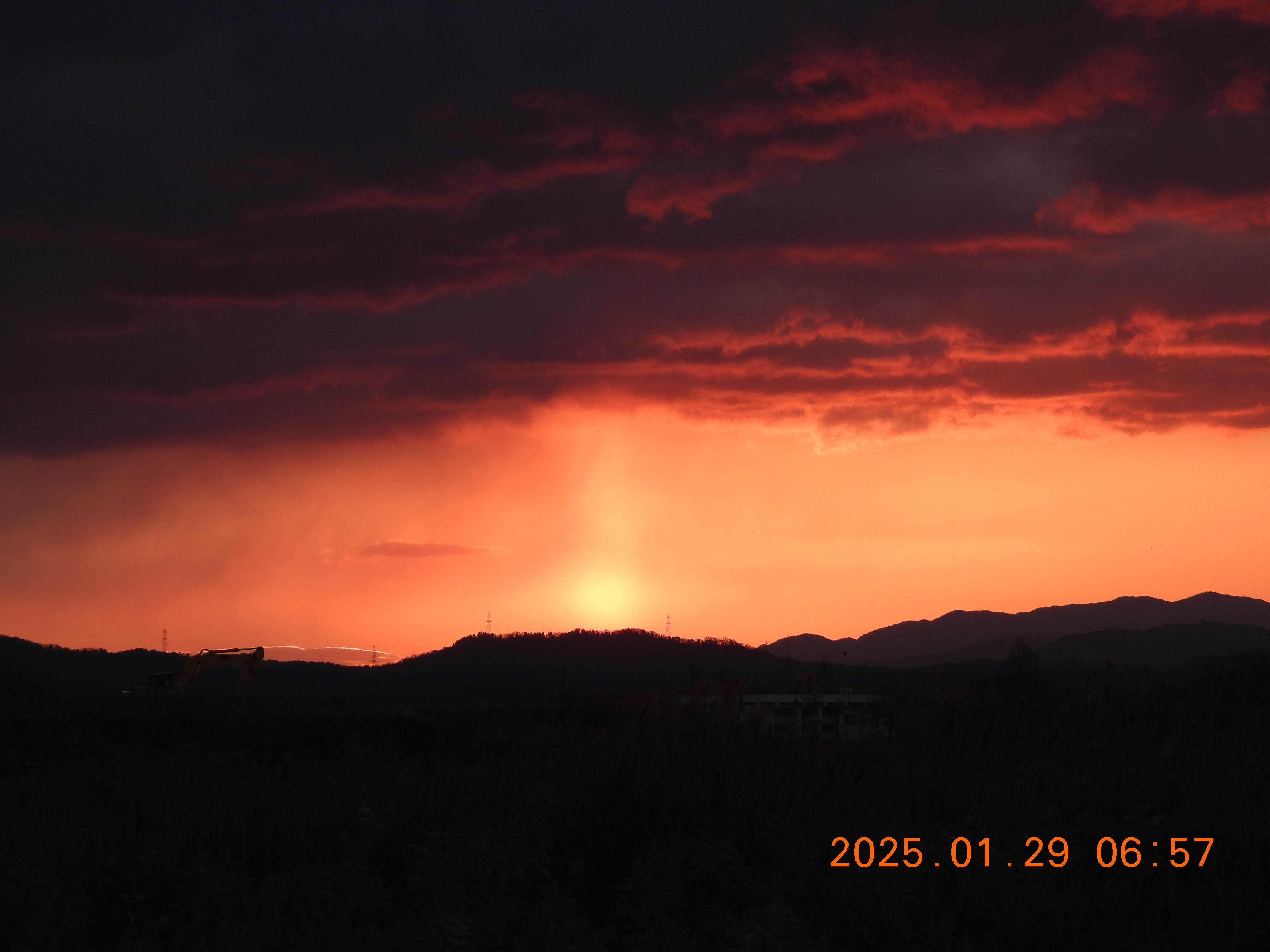 今朝の日の出前、火柱が上がっているよう