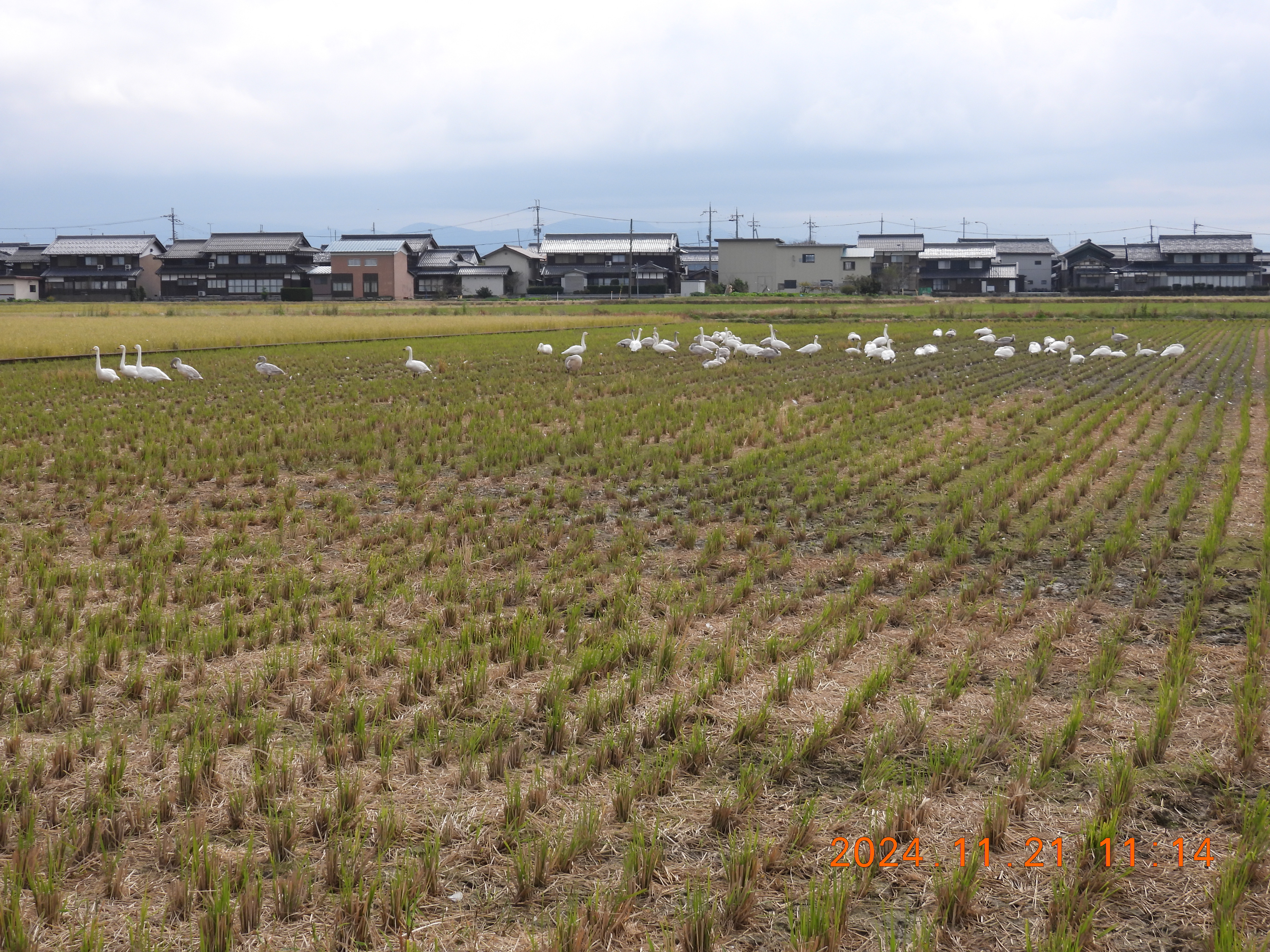 今日は八木浜地区の東の田んぼに約70羽