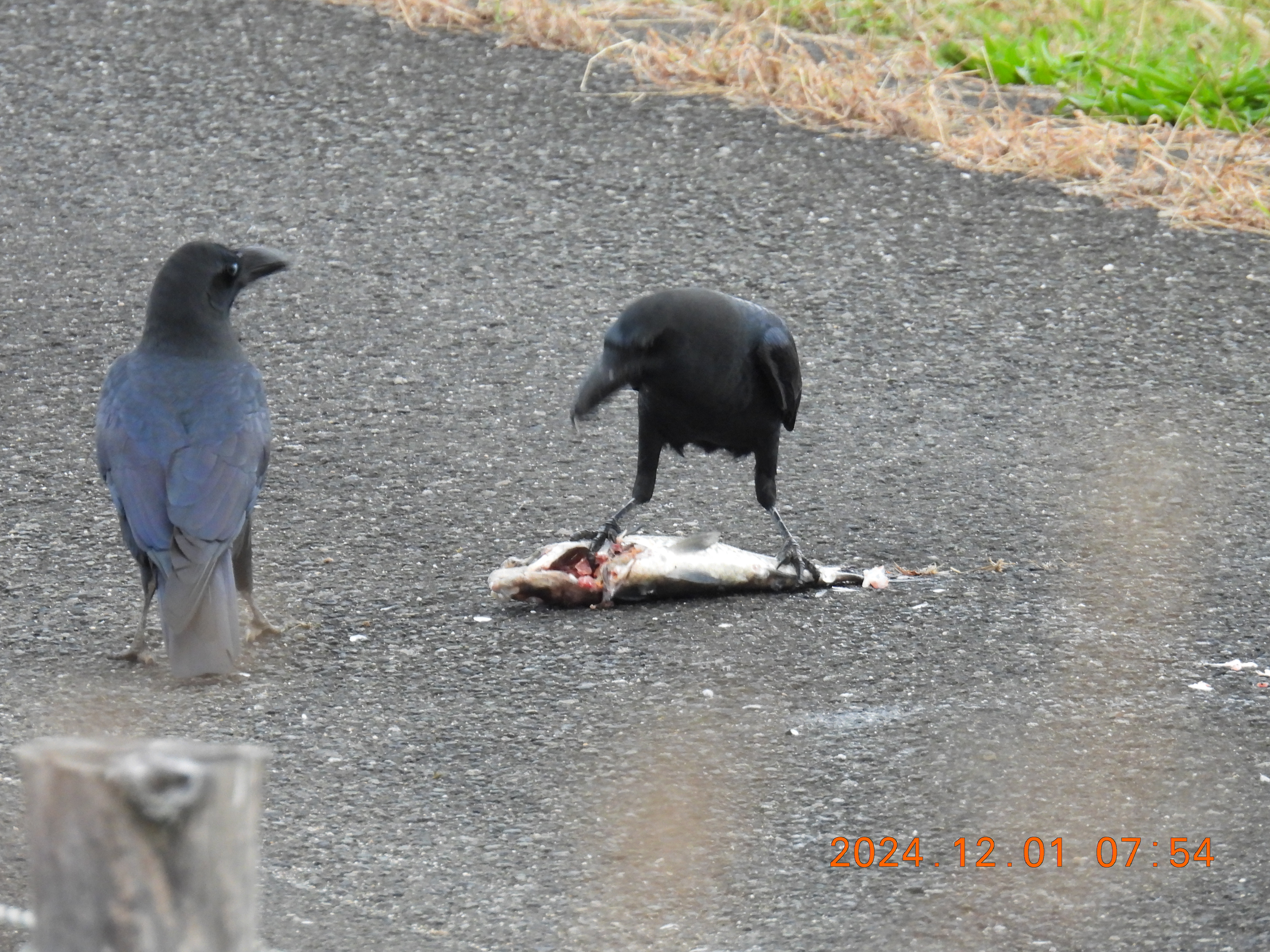 すると待っていたようにカラスがやってきて食事中です。