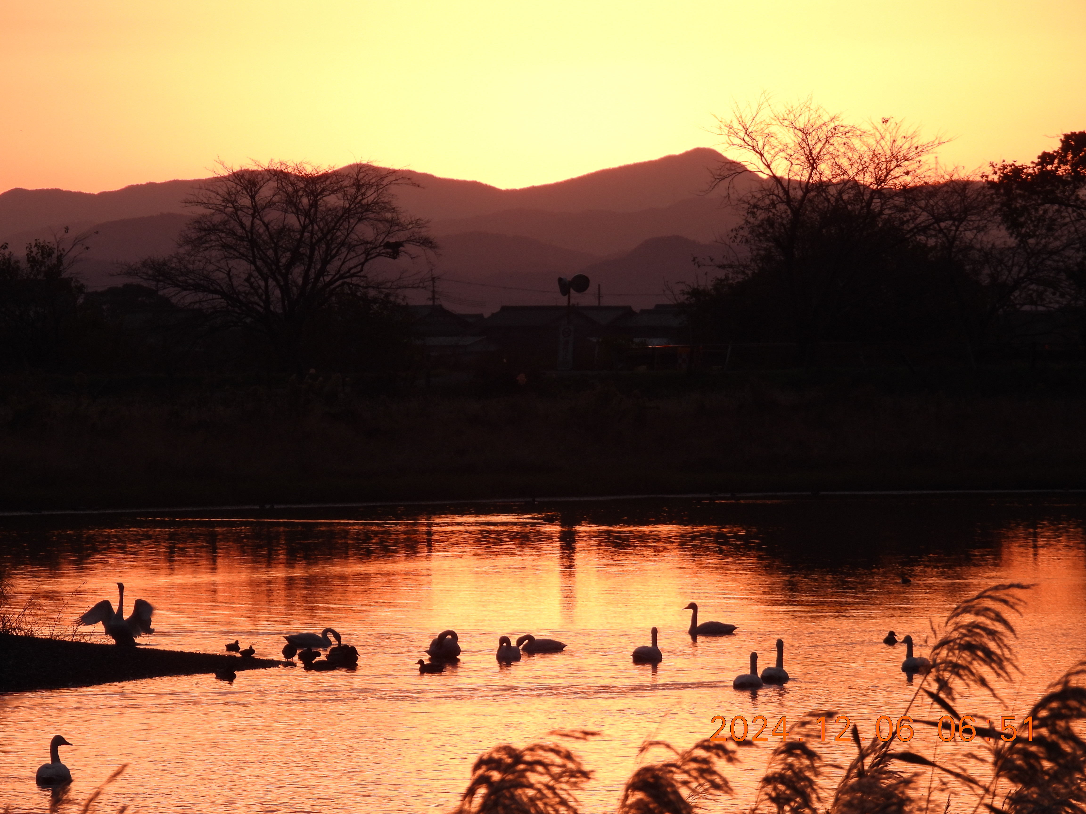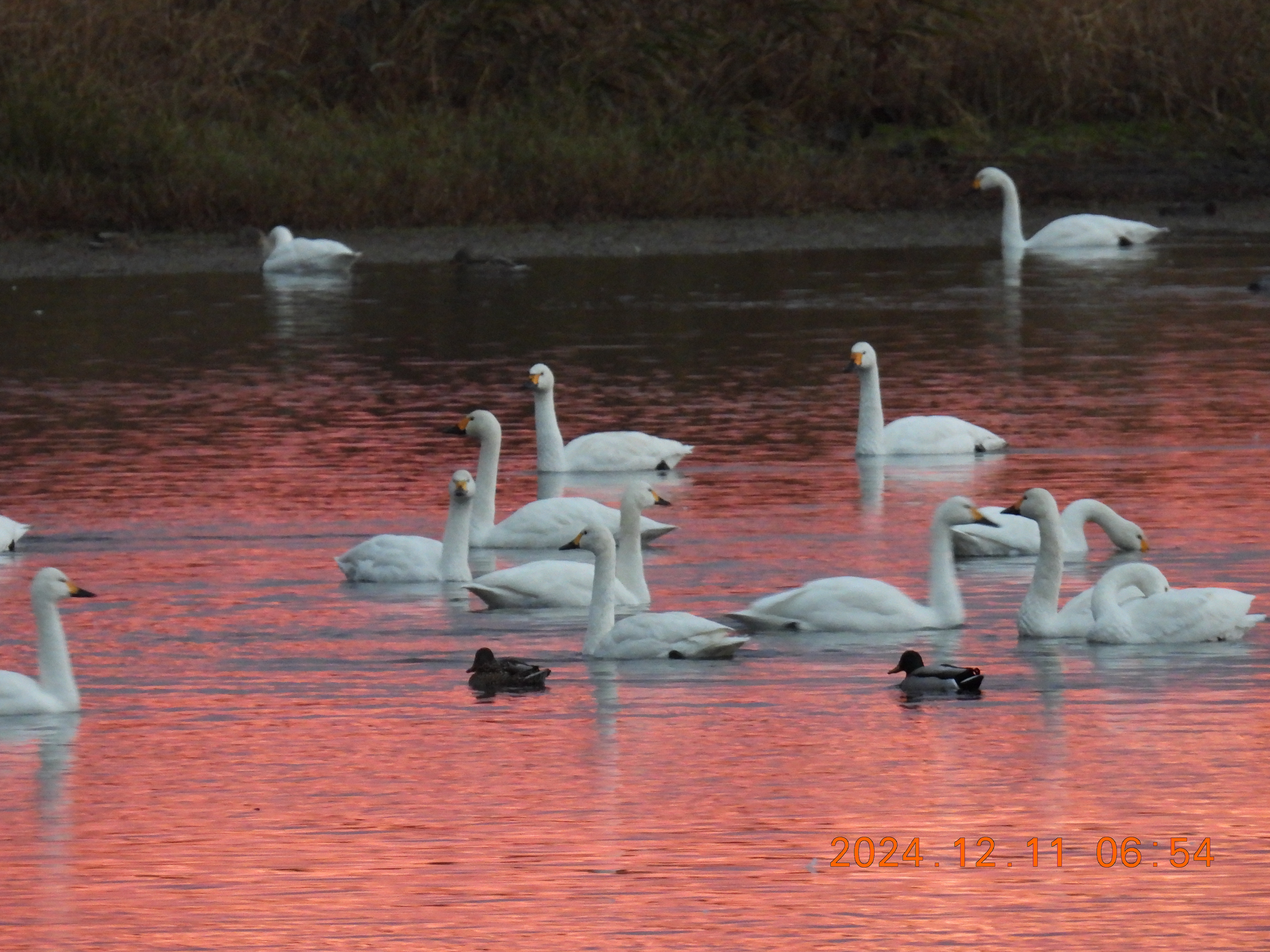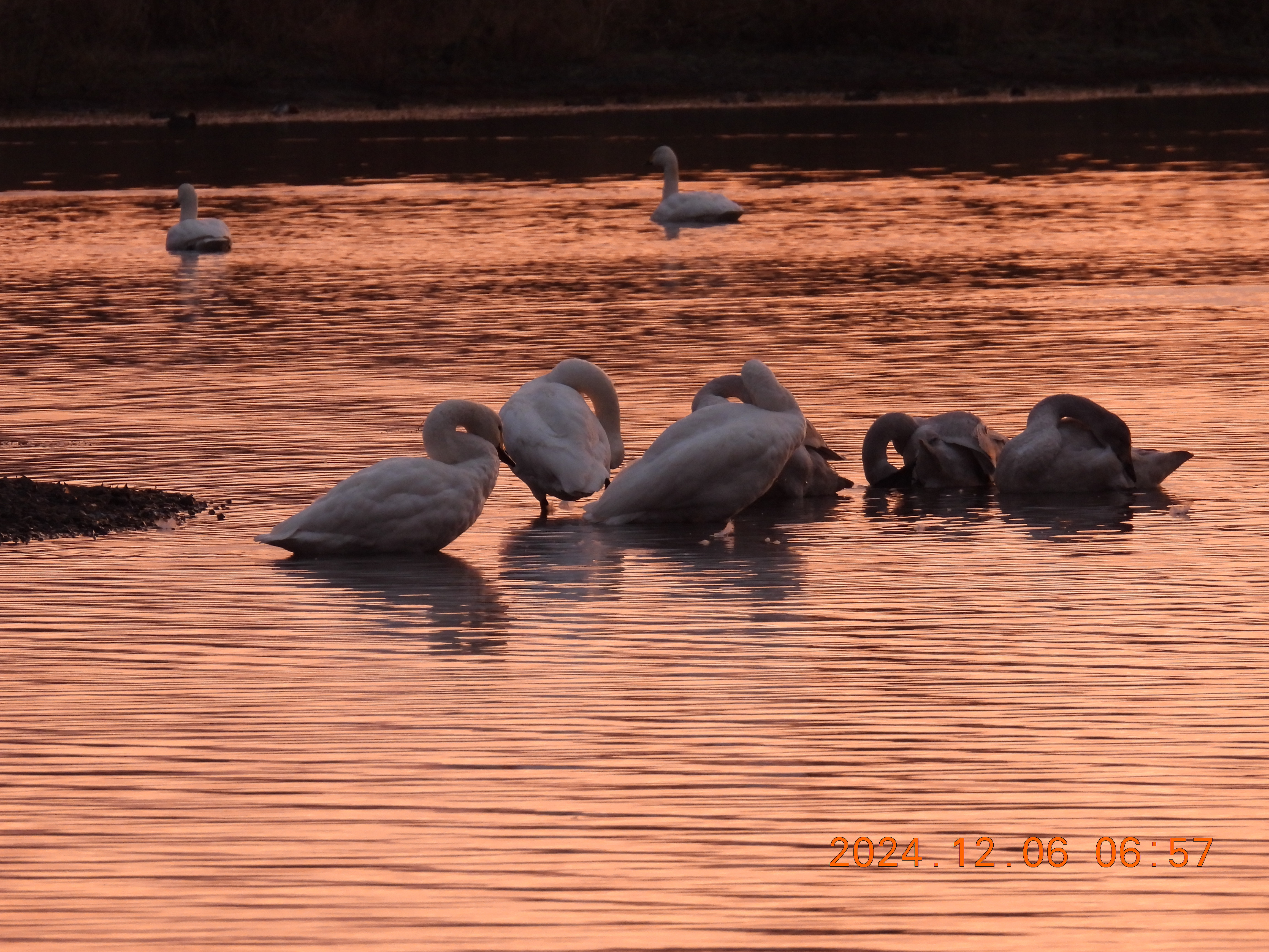 朝のコハクチョウたち。