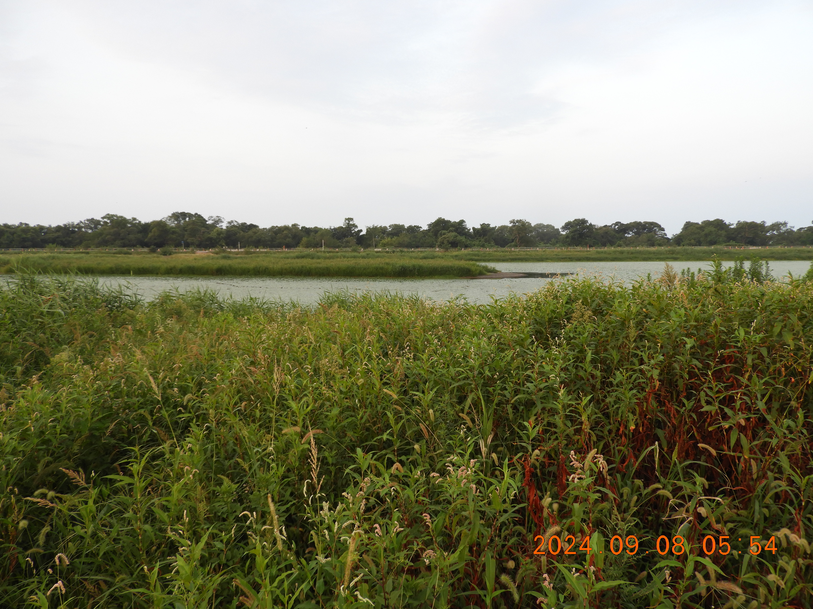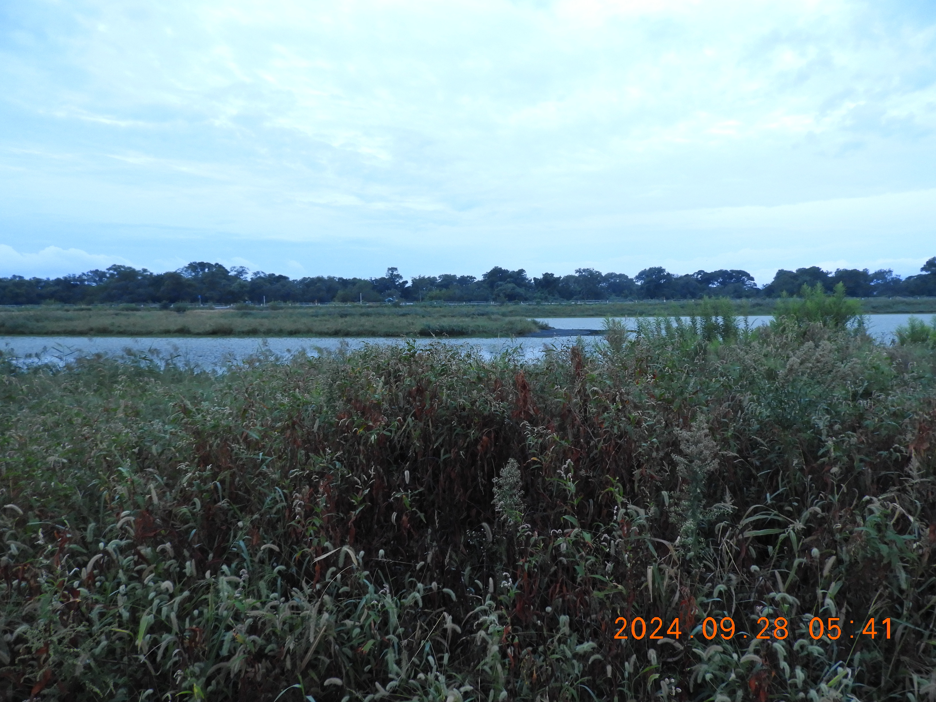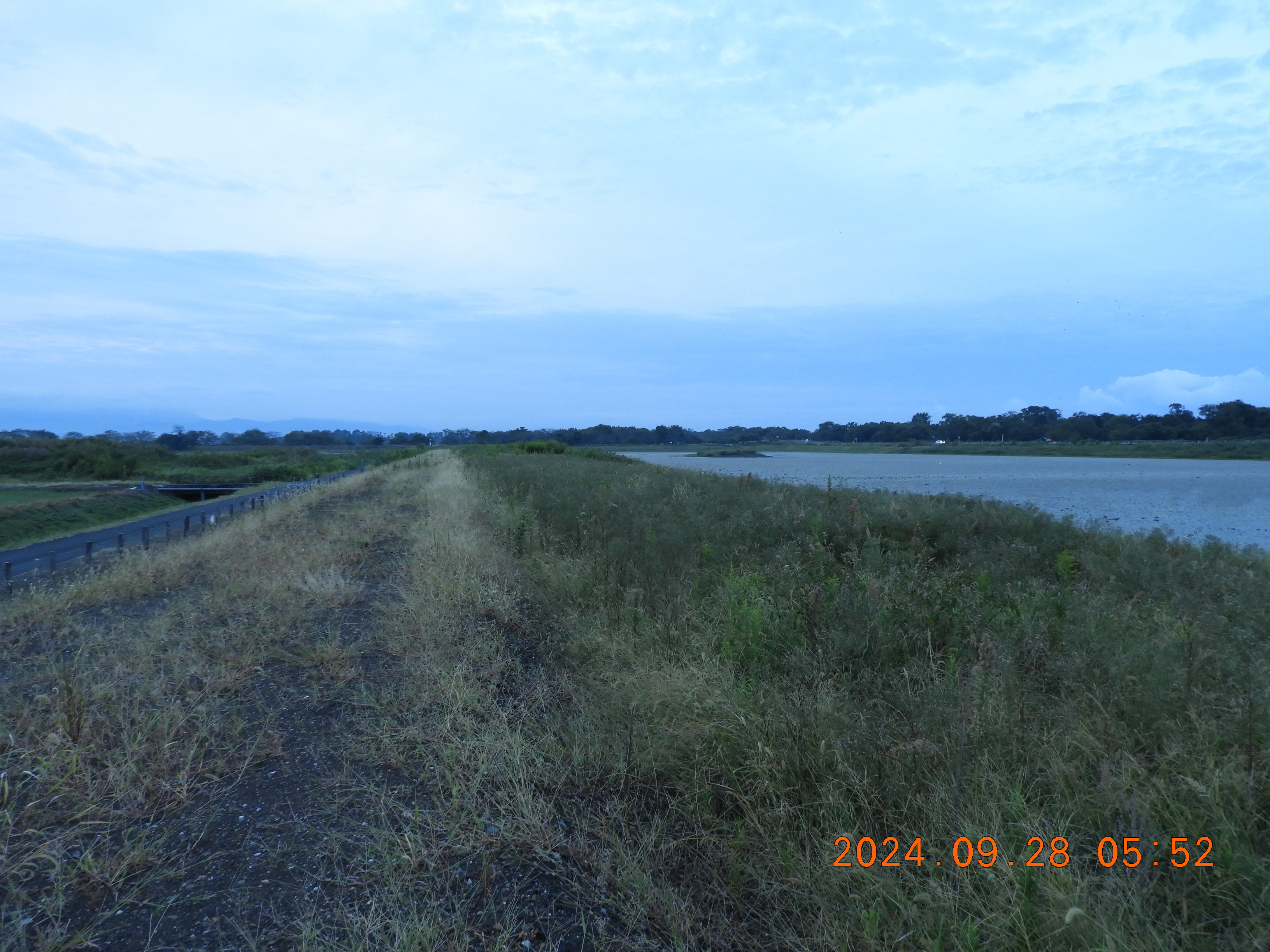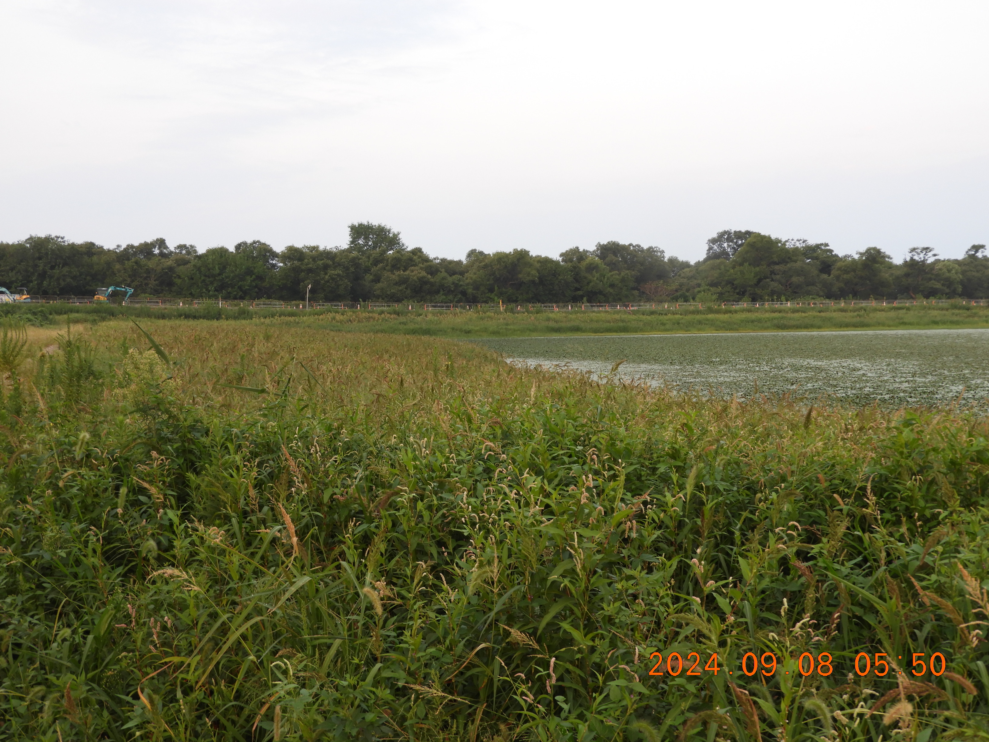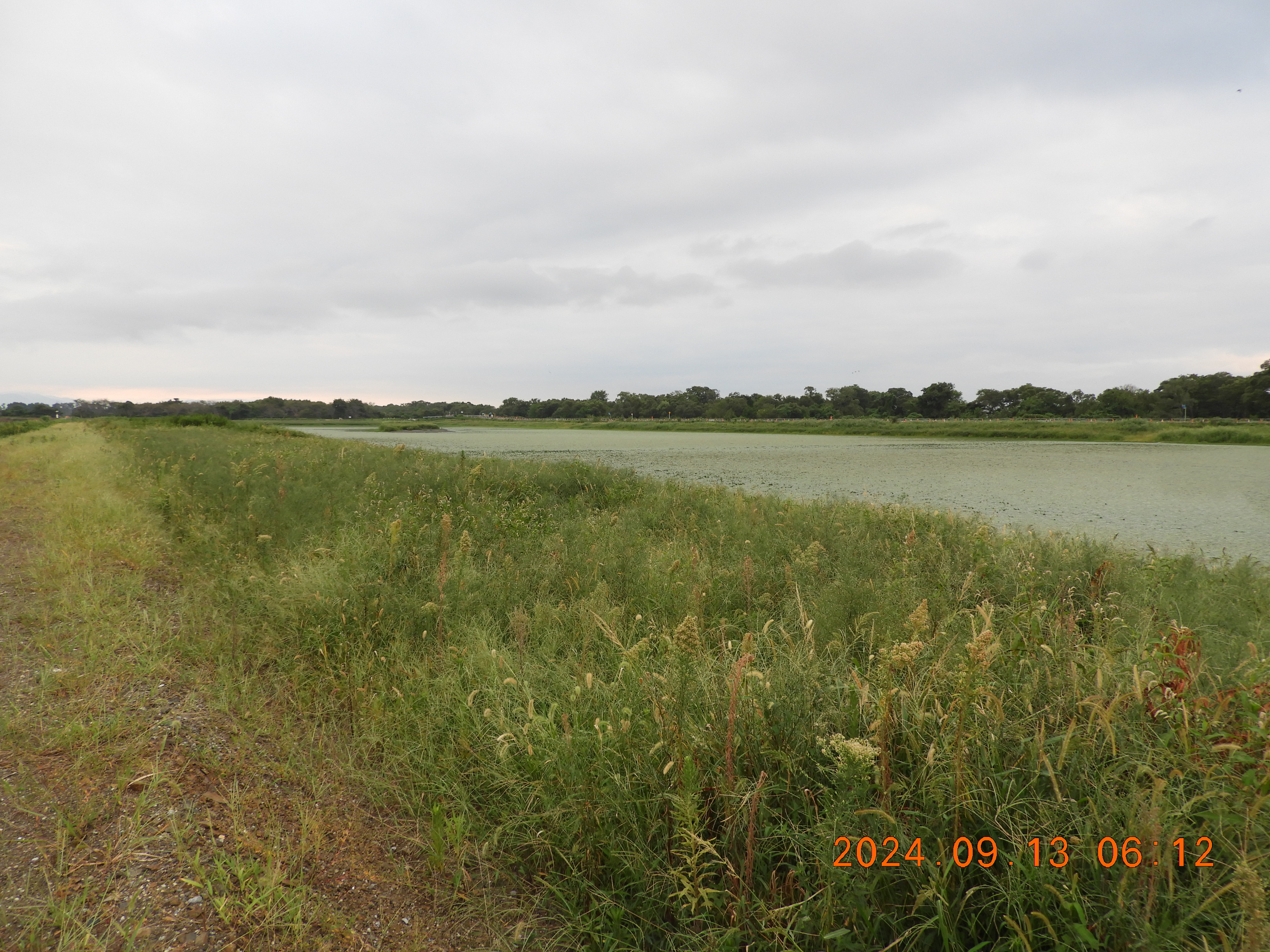 東からの撮影 草丈の繁殖で堤防から内湖の水面を広く見られるのはここだけ