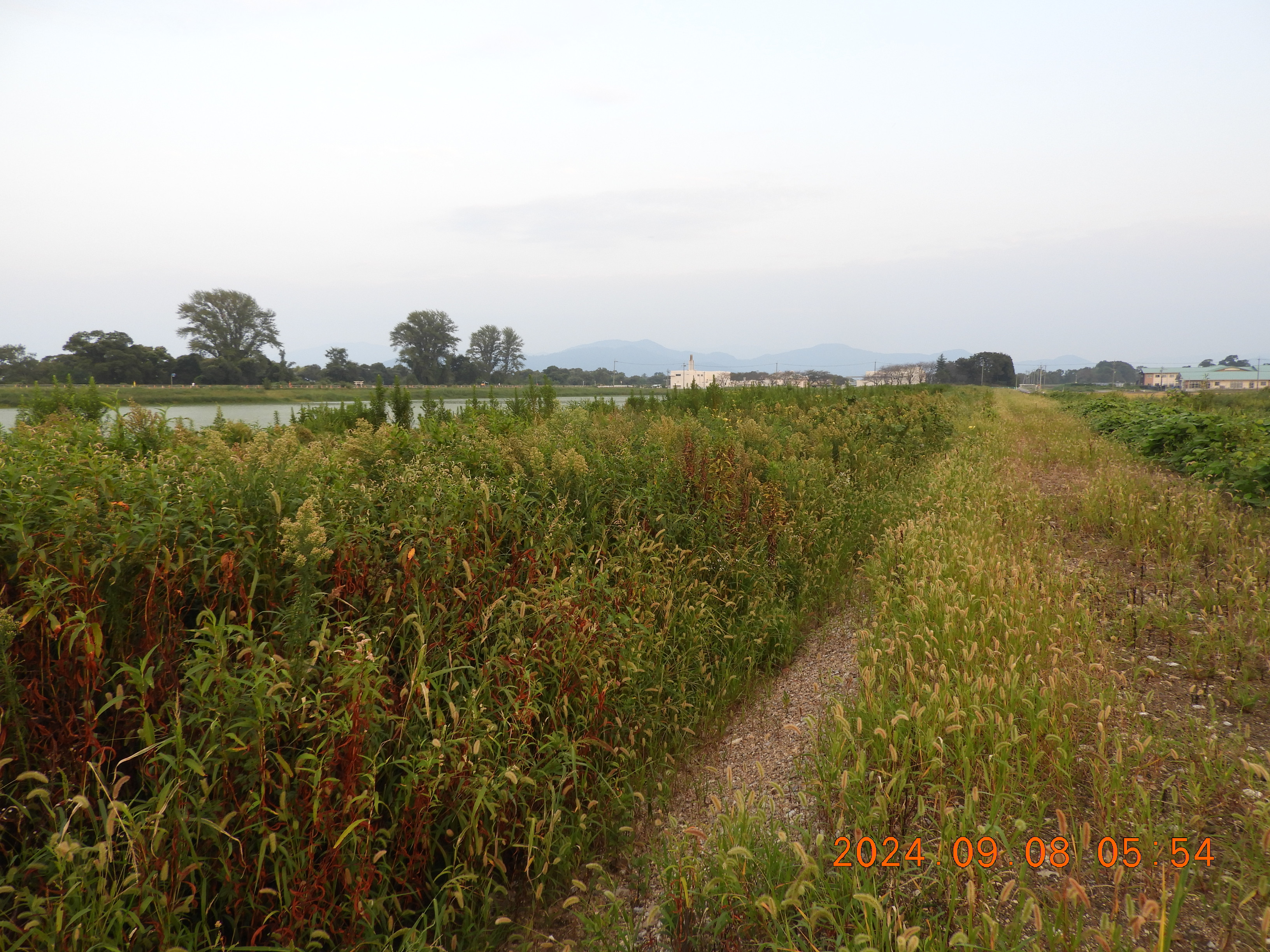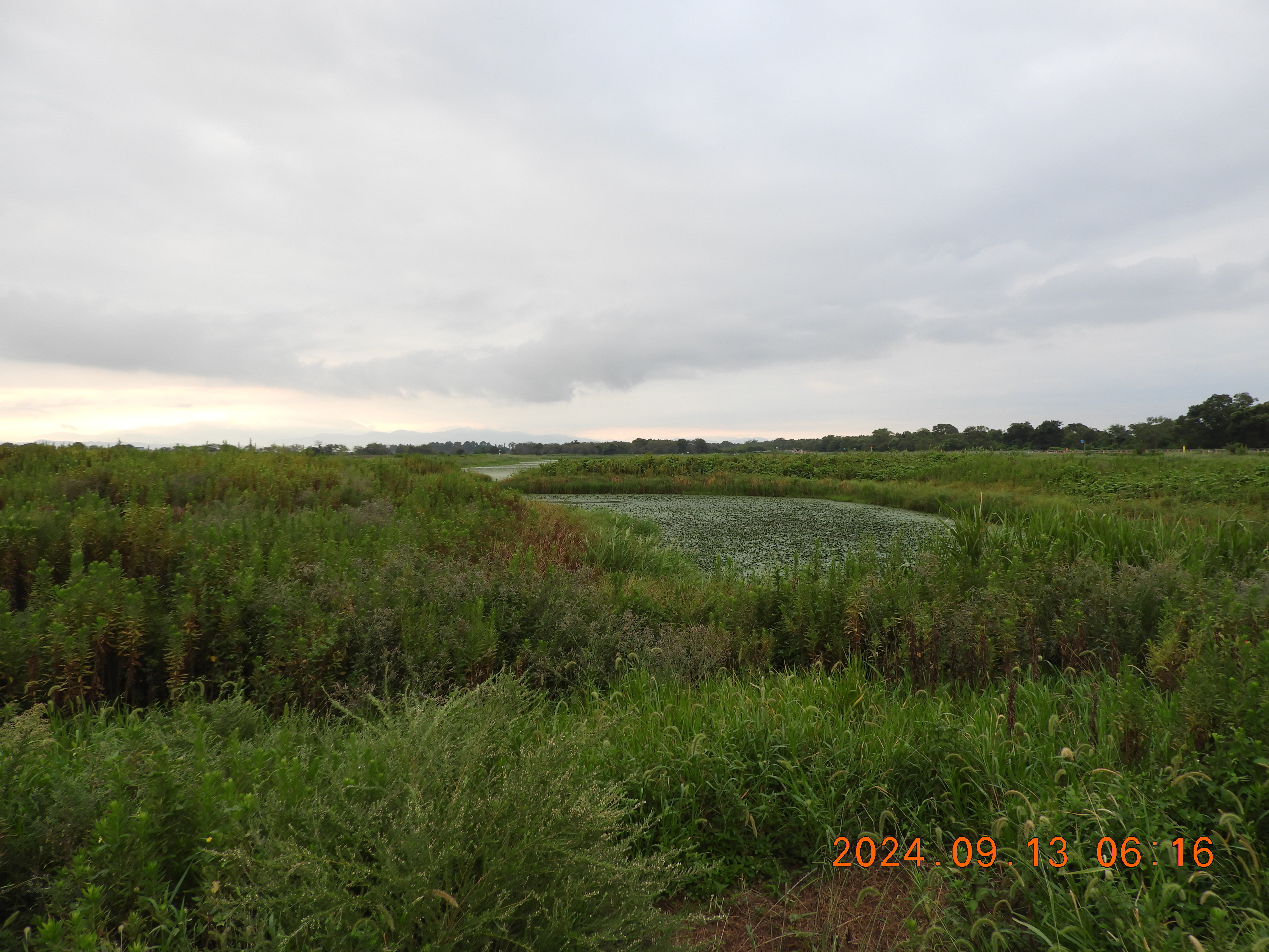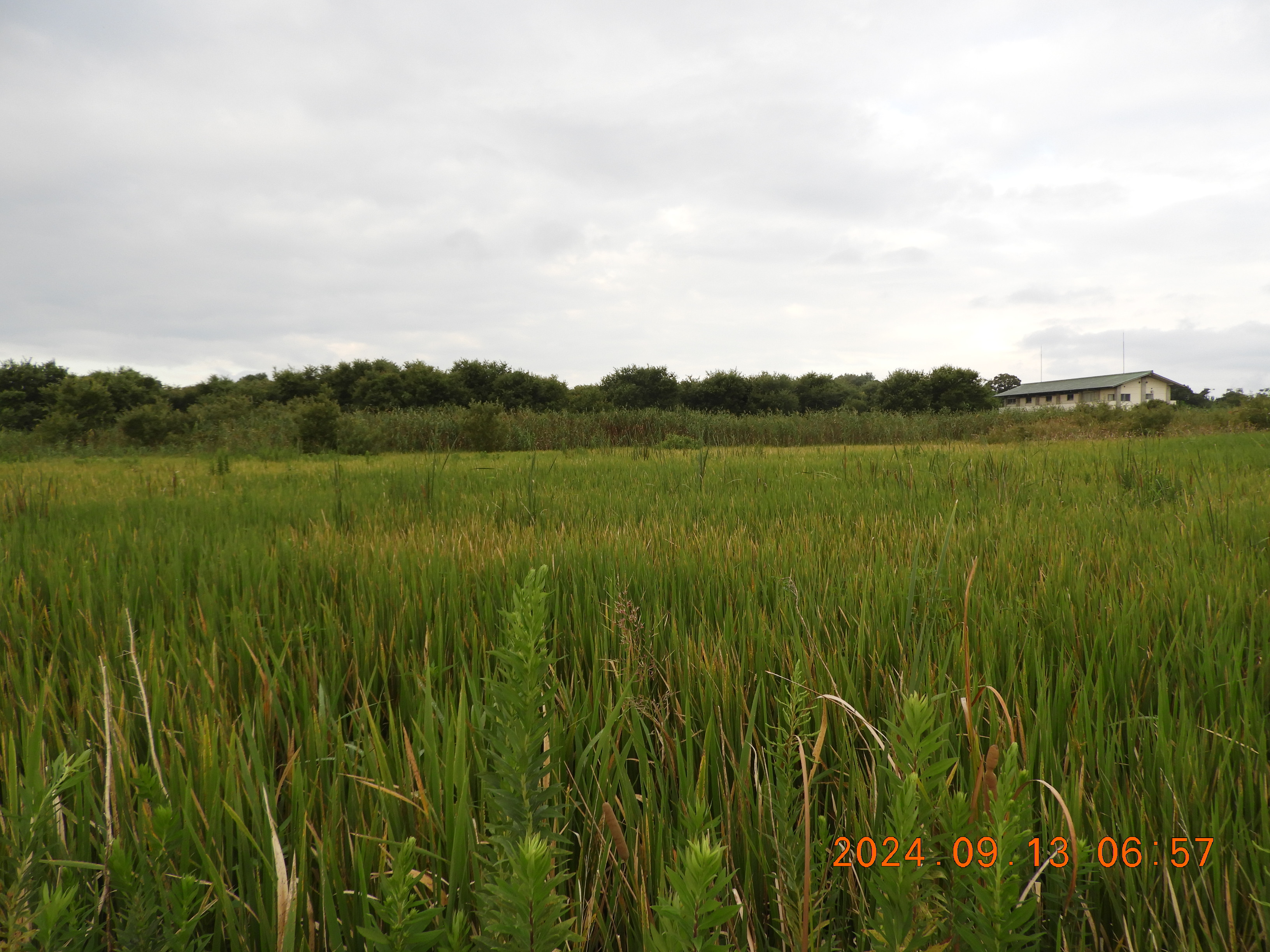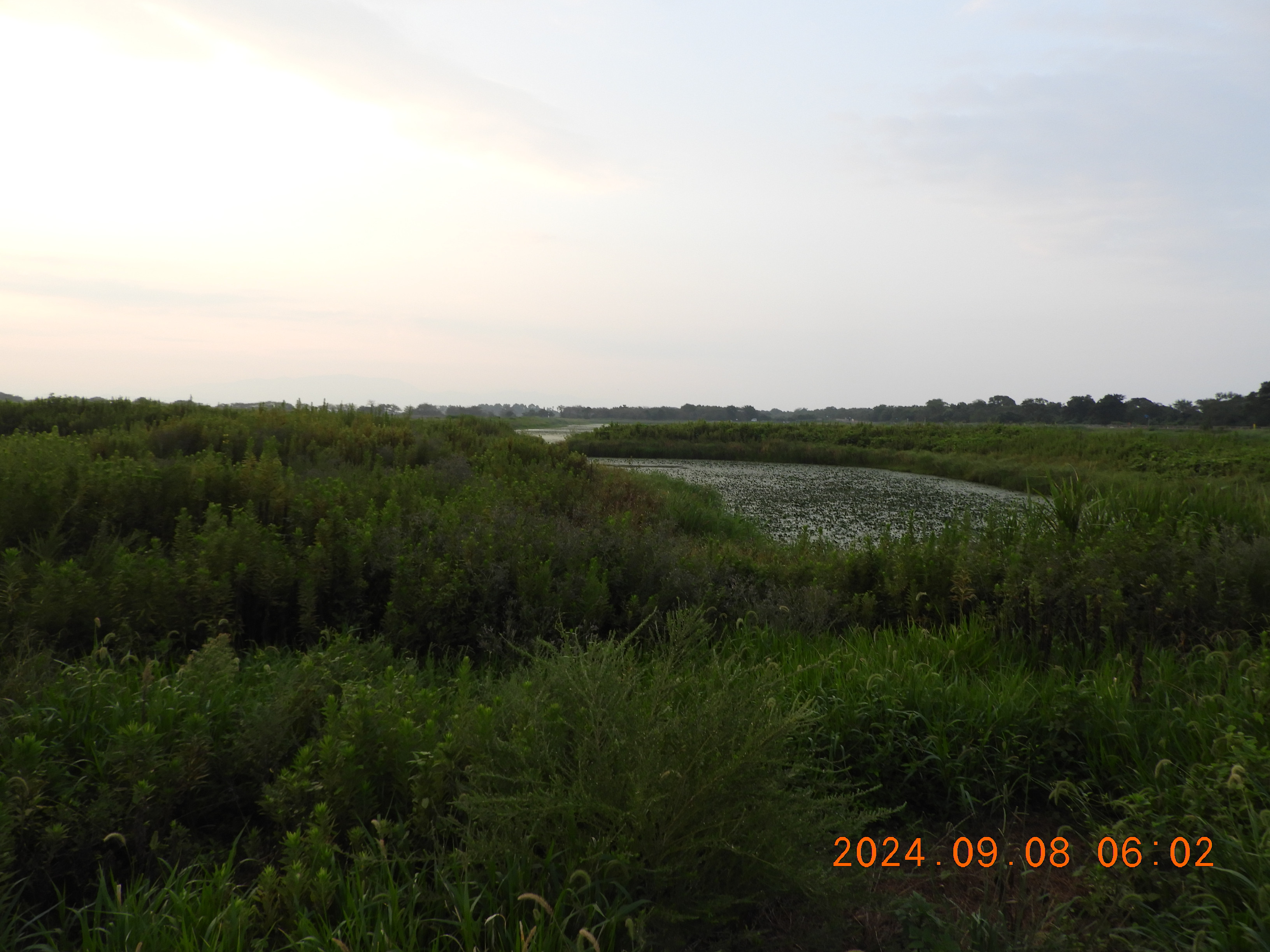 東からの撮影 草丈の繁殖で堤防から内湖の水面を広く見られるのはここだけ