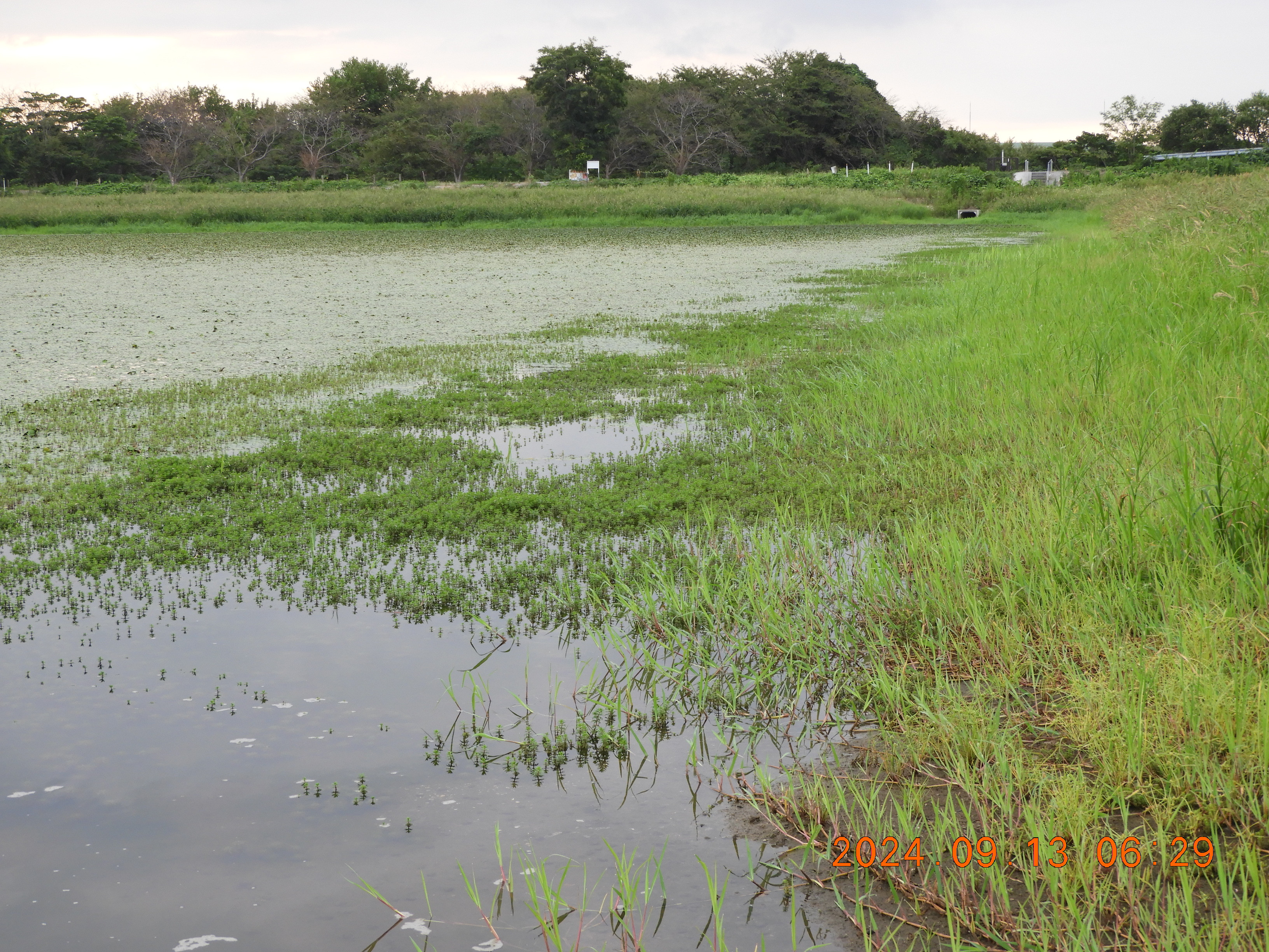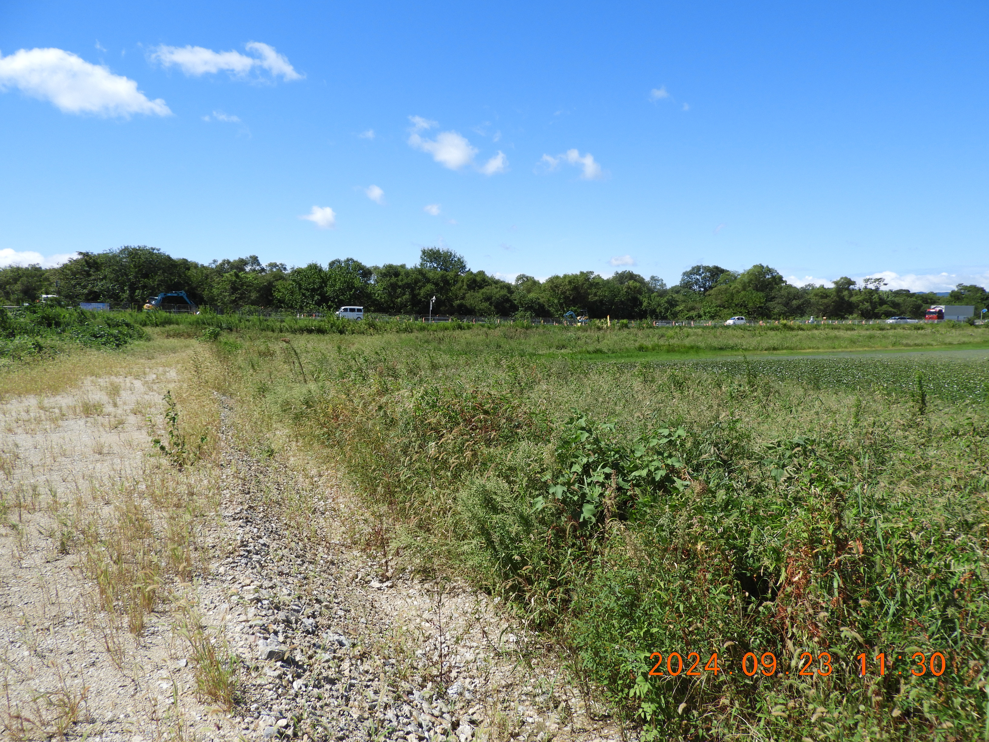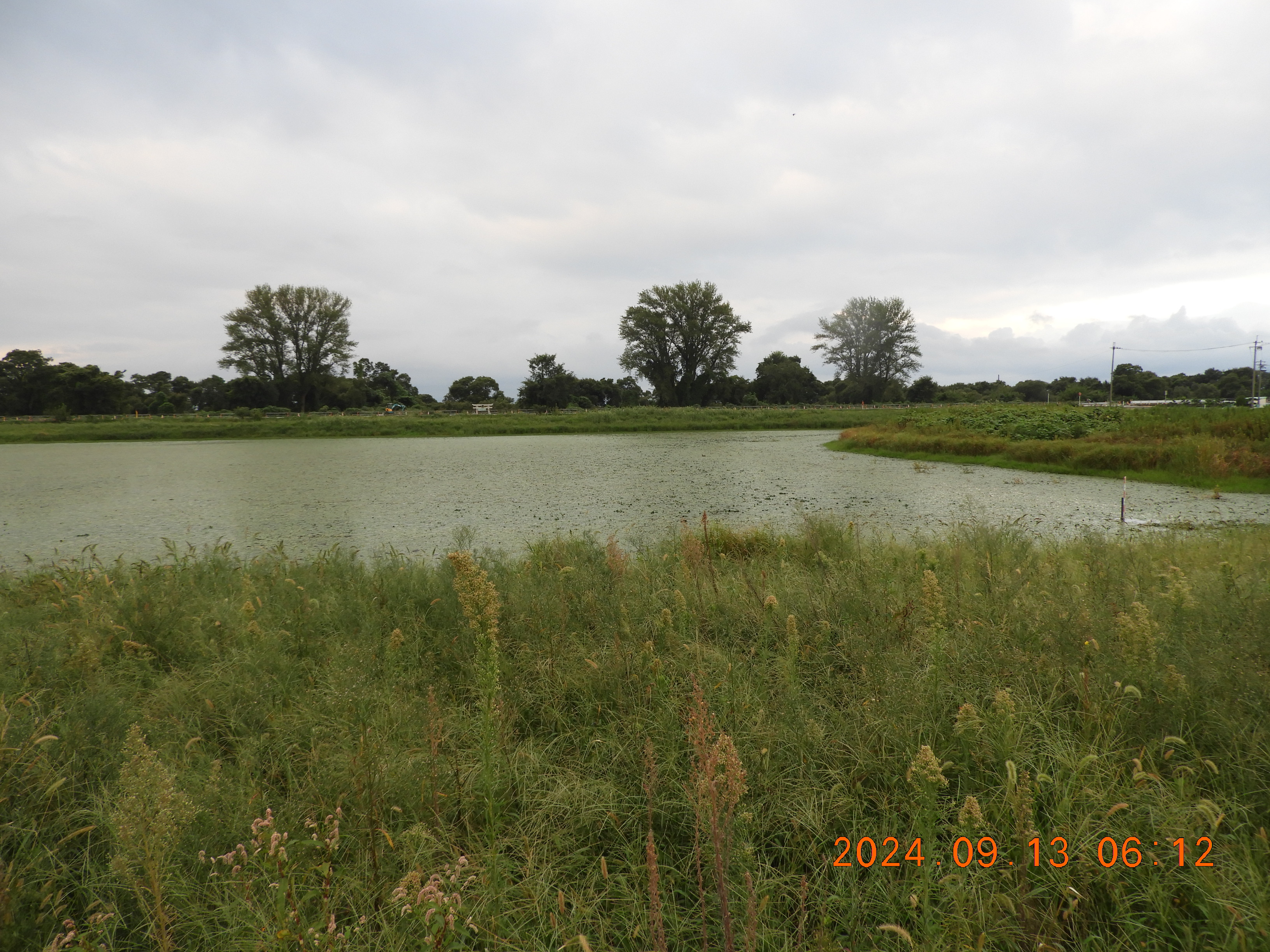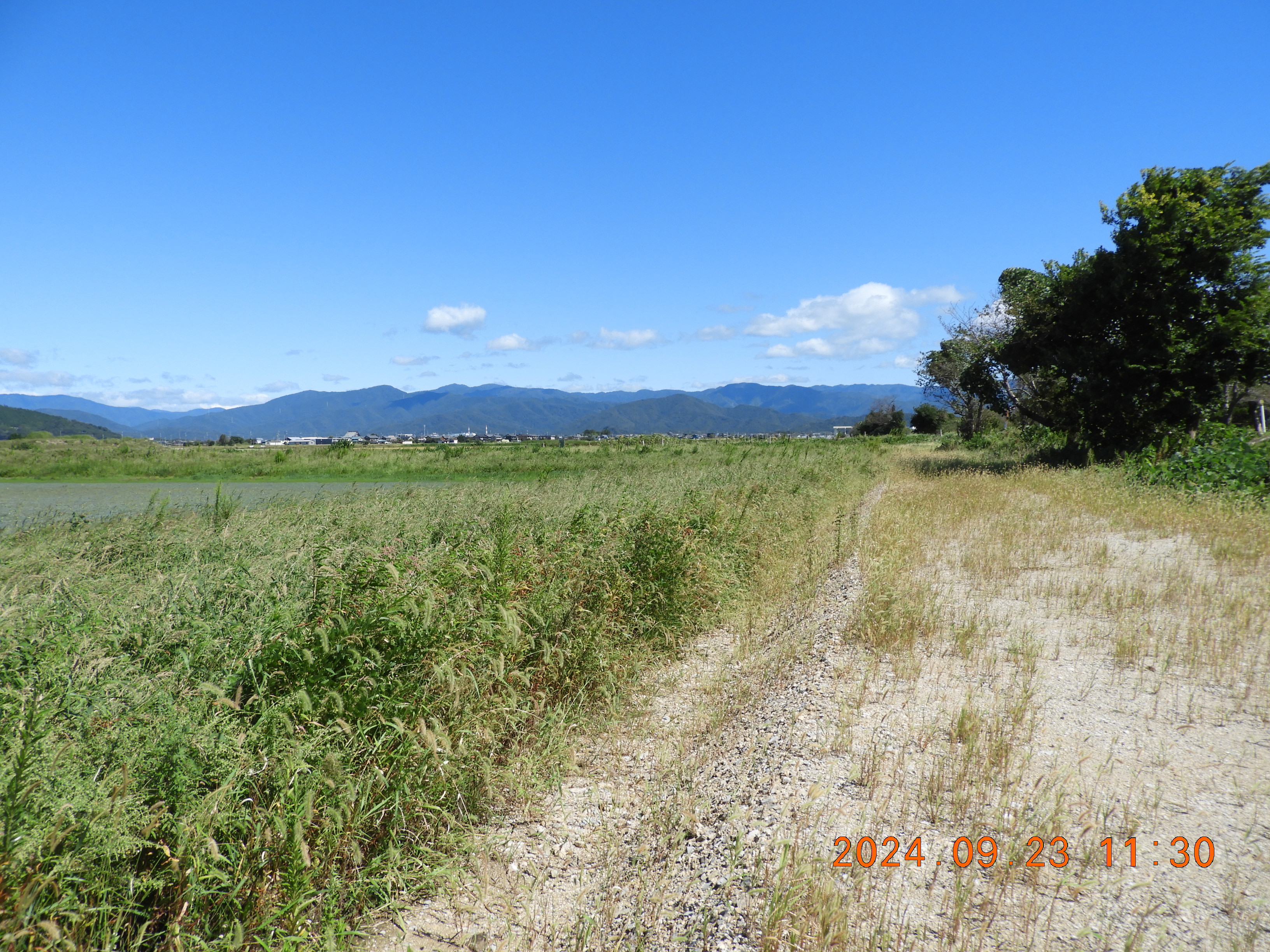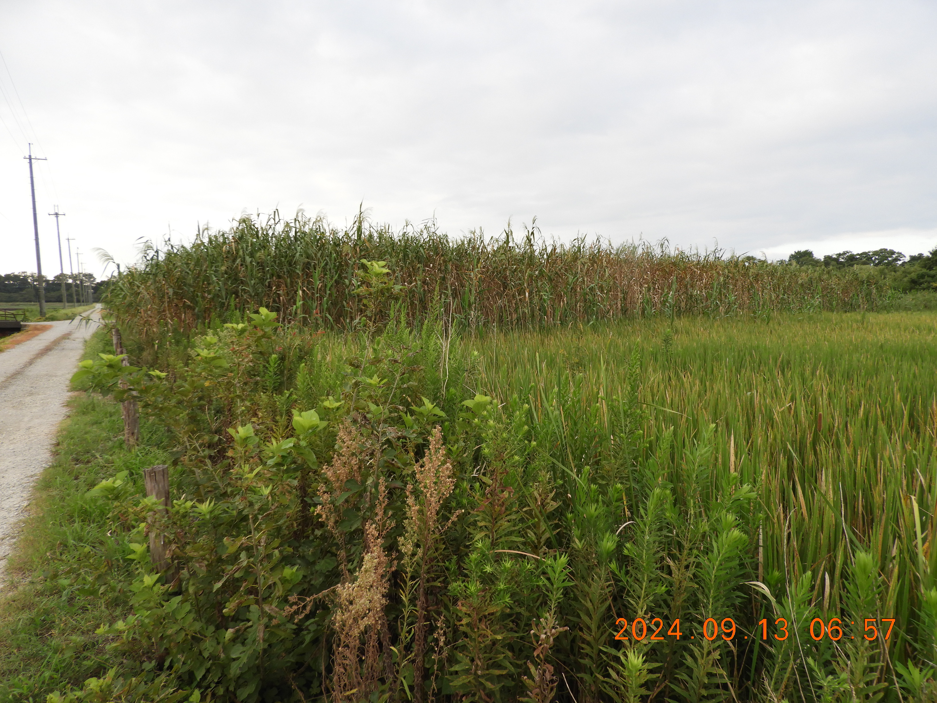 東からの撮影 草丈の繁殖で堤防から内湖の水面を広く見られるのはここだけ