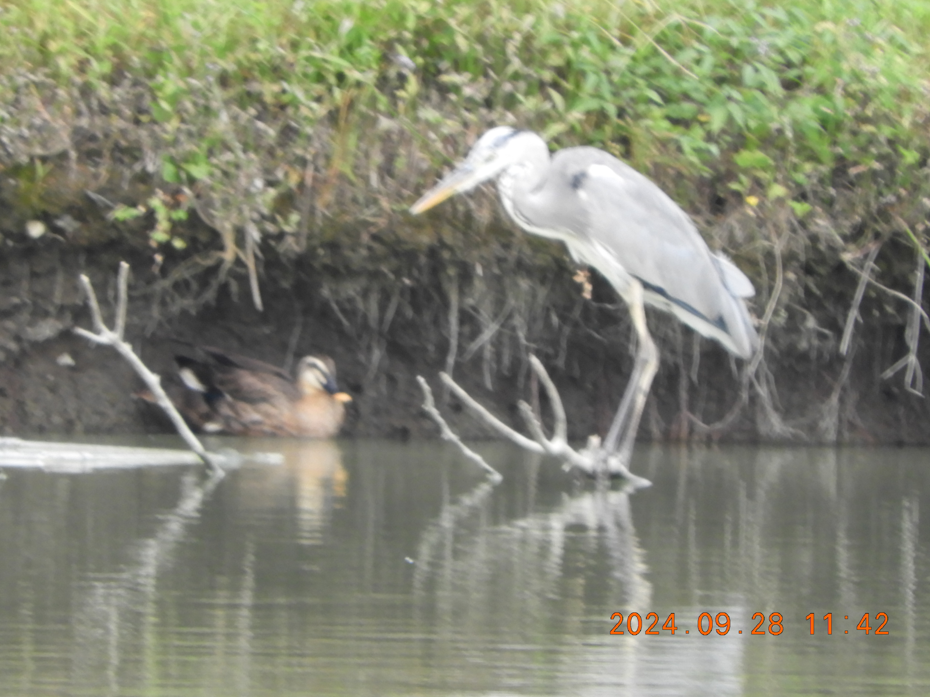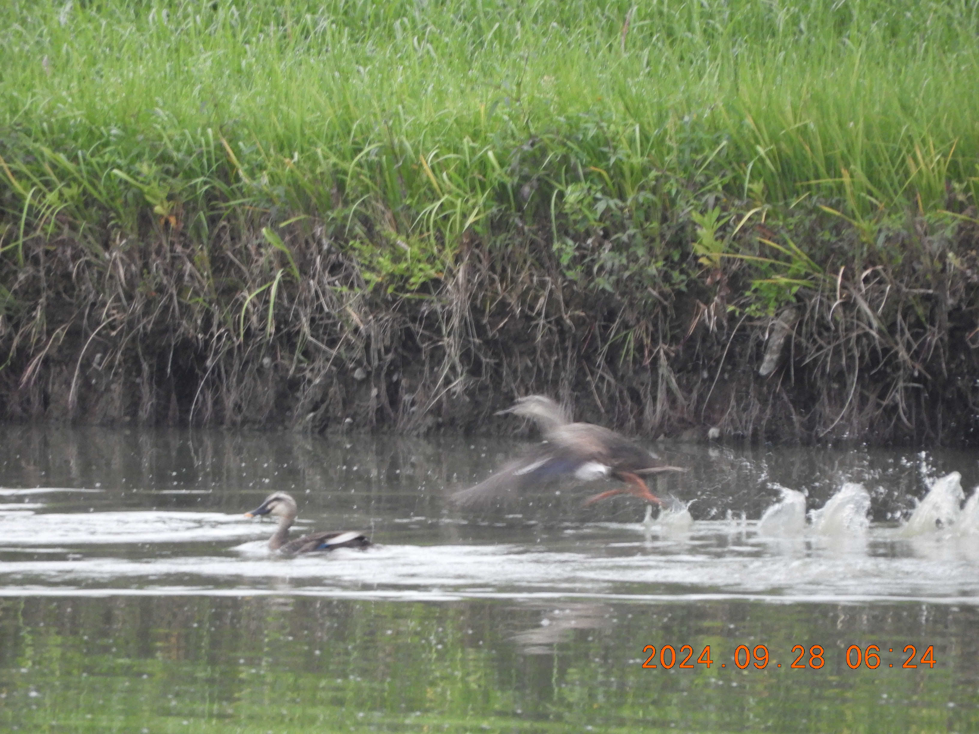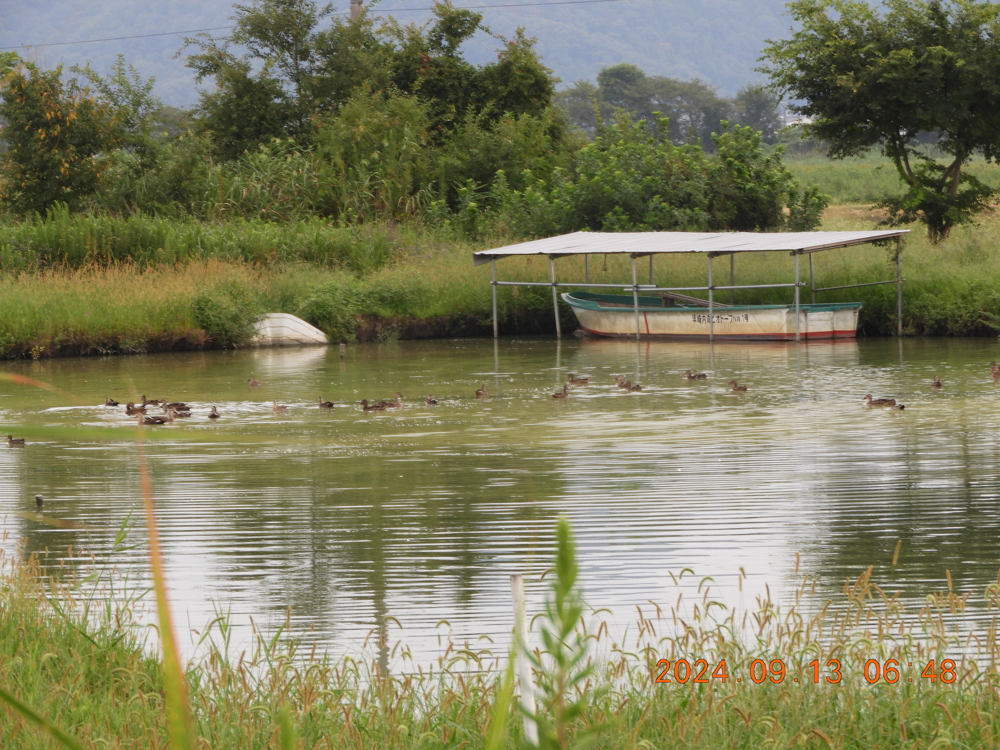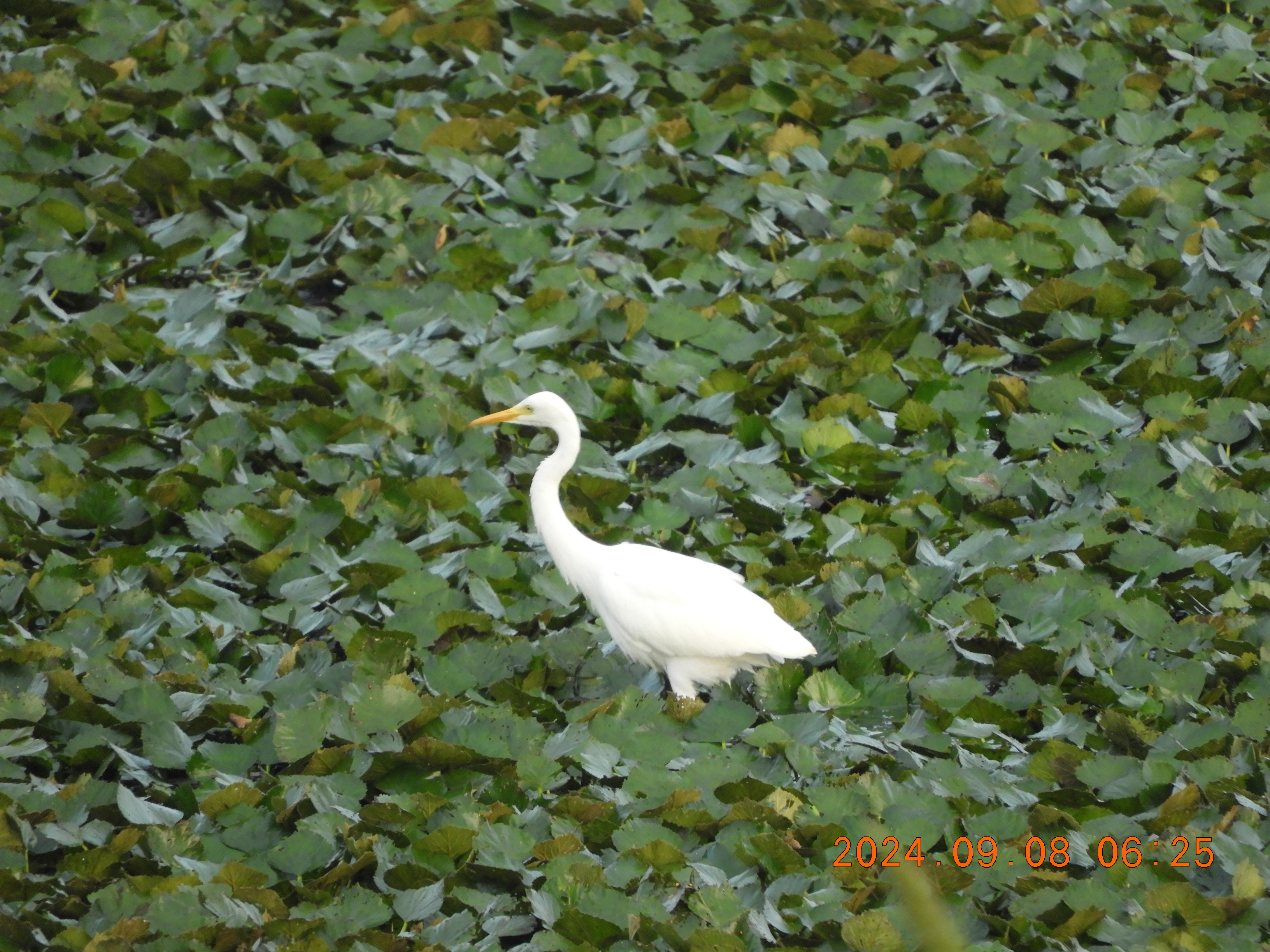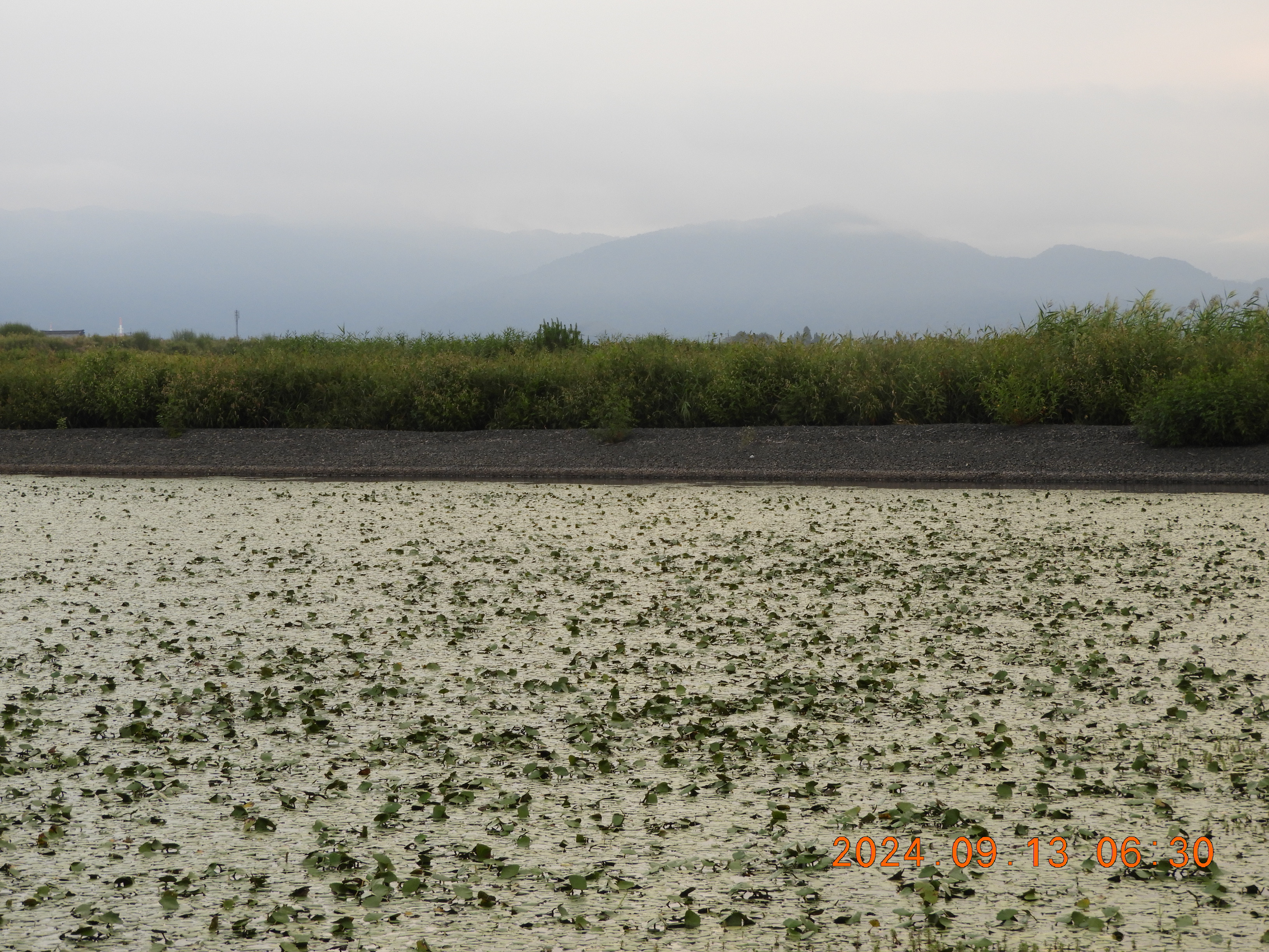 定点④からの撮影、ヒシの時期も終わり近くなって水面が見えるようになってきたようです。