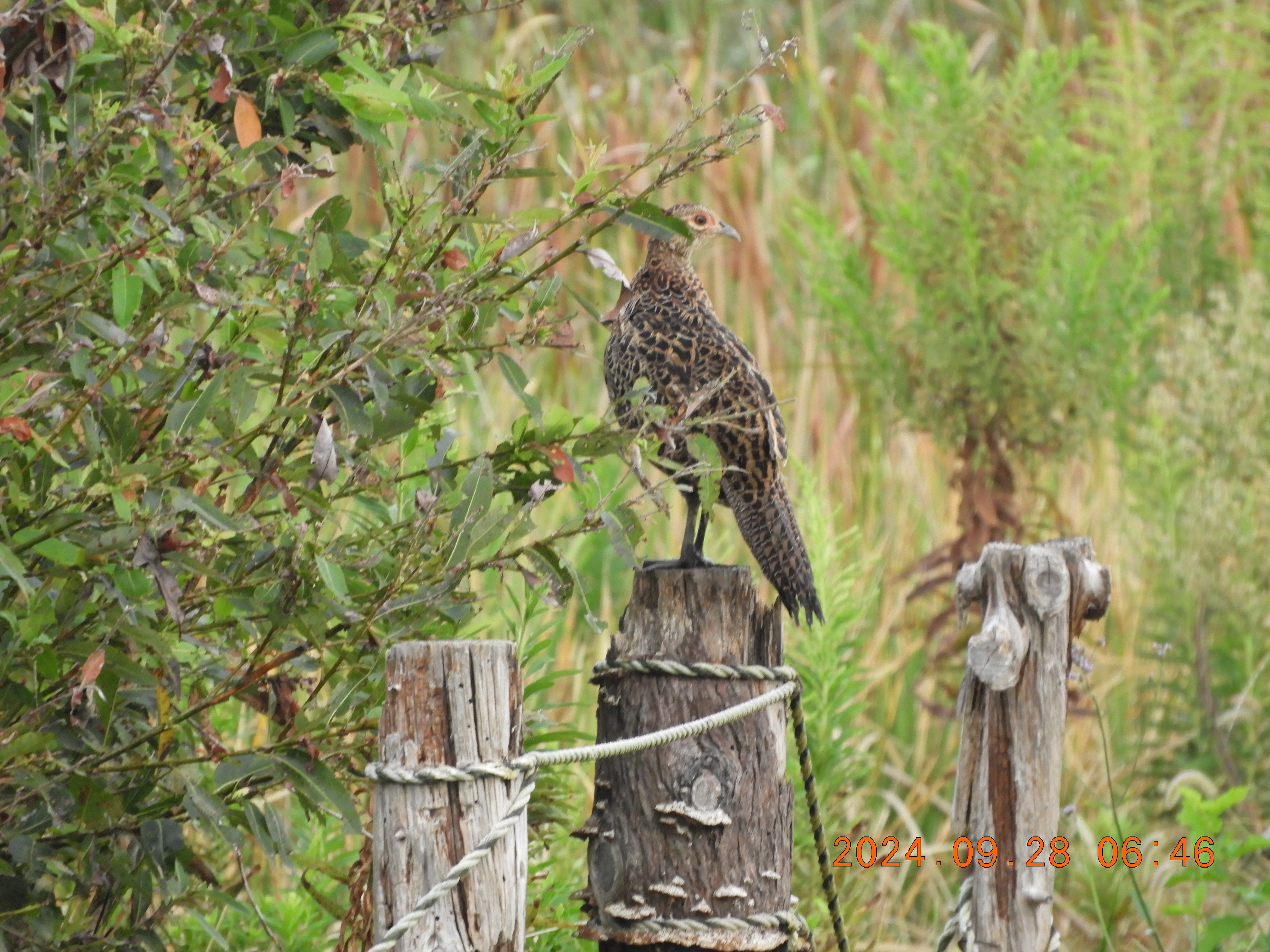 キジの子供がいます。5羽が育っています。今朝は2羽でした。