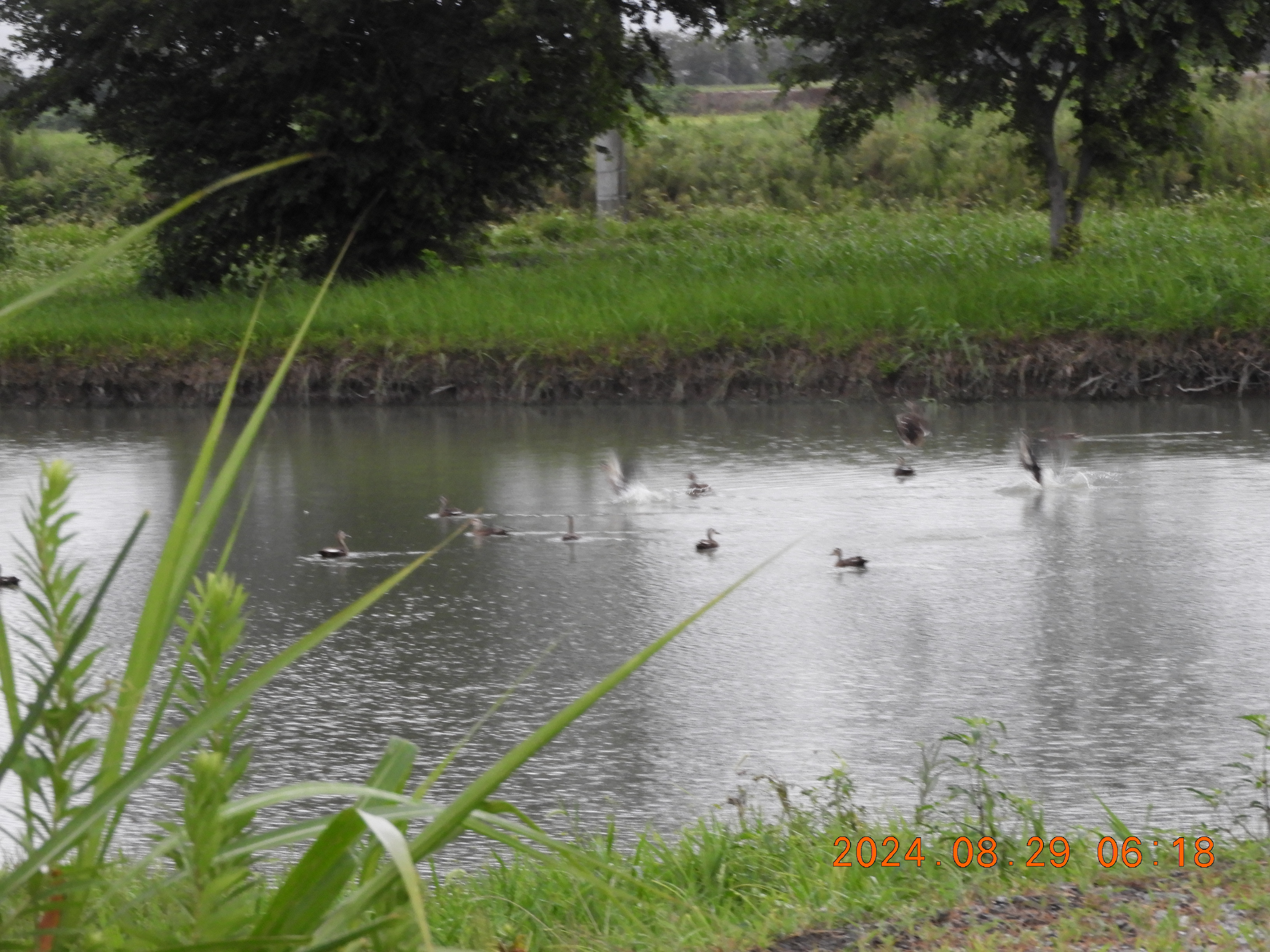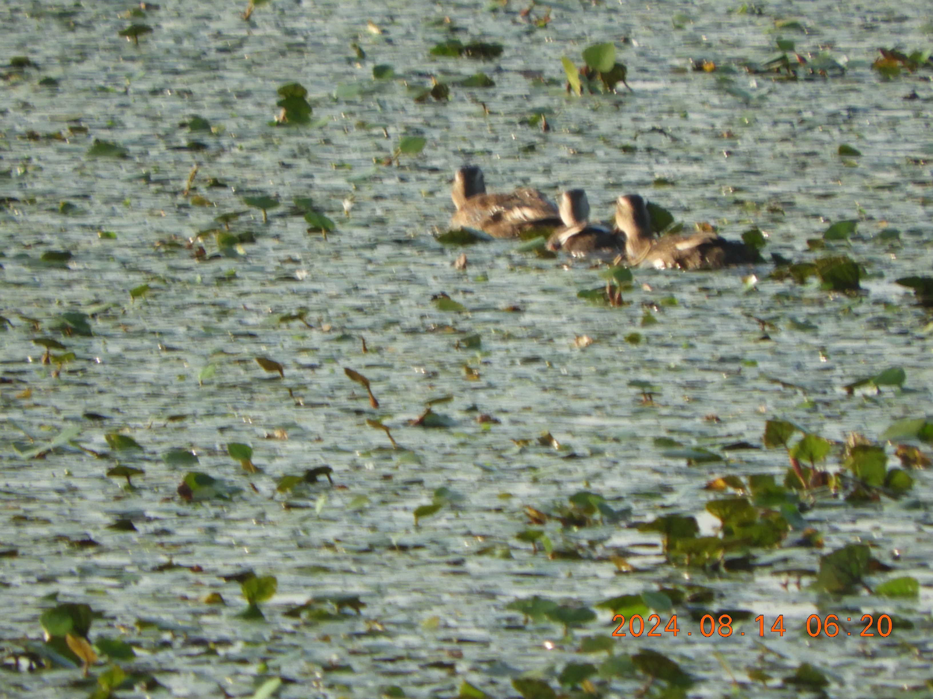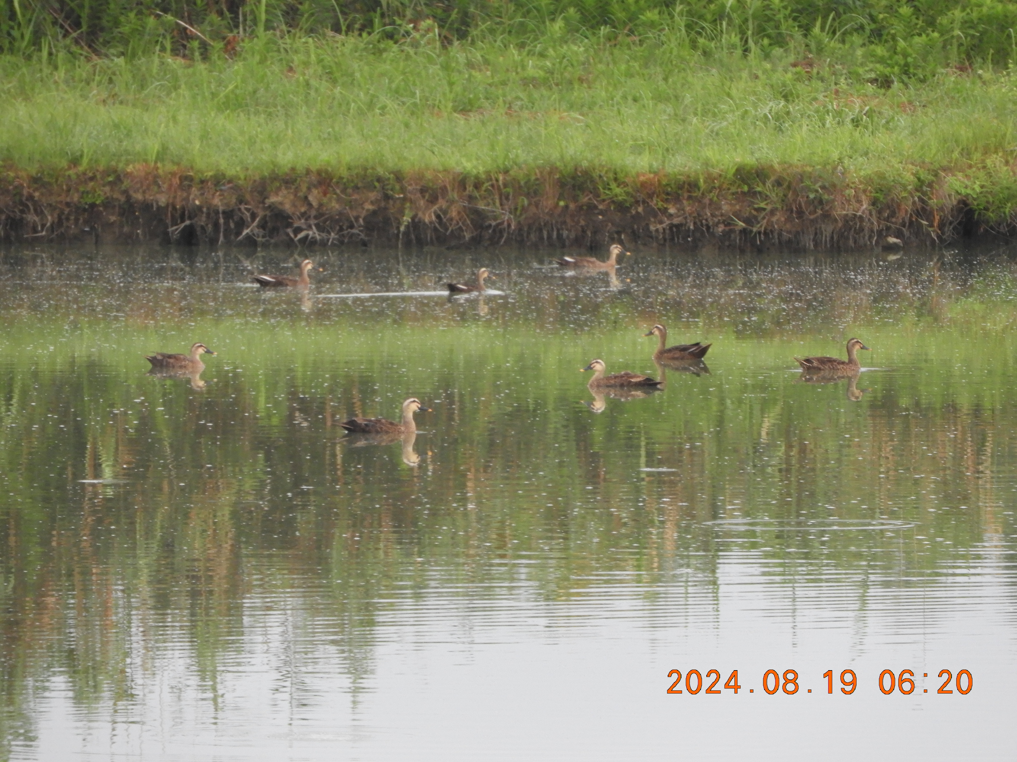 観察会場の水面時間を変えて撮影しました。30羽以上のカルガモが入っています。