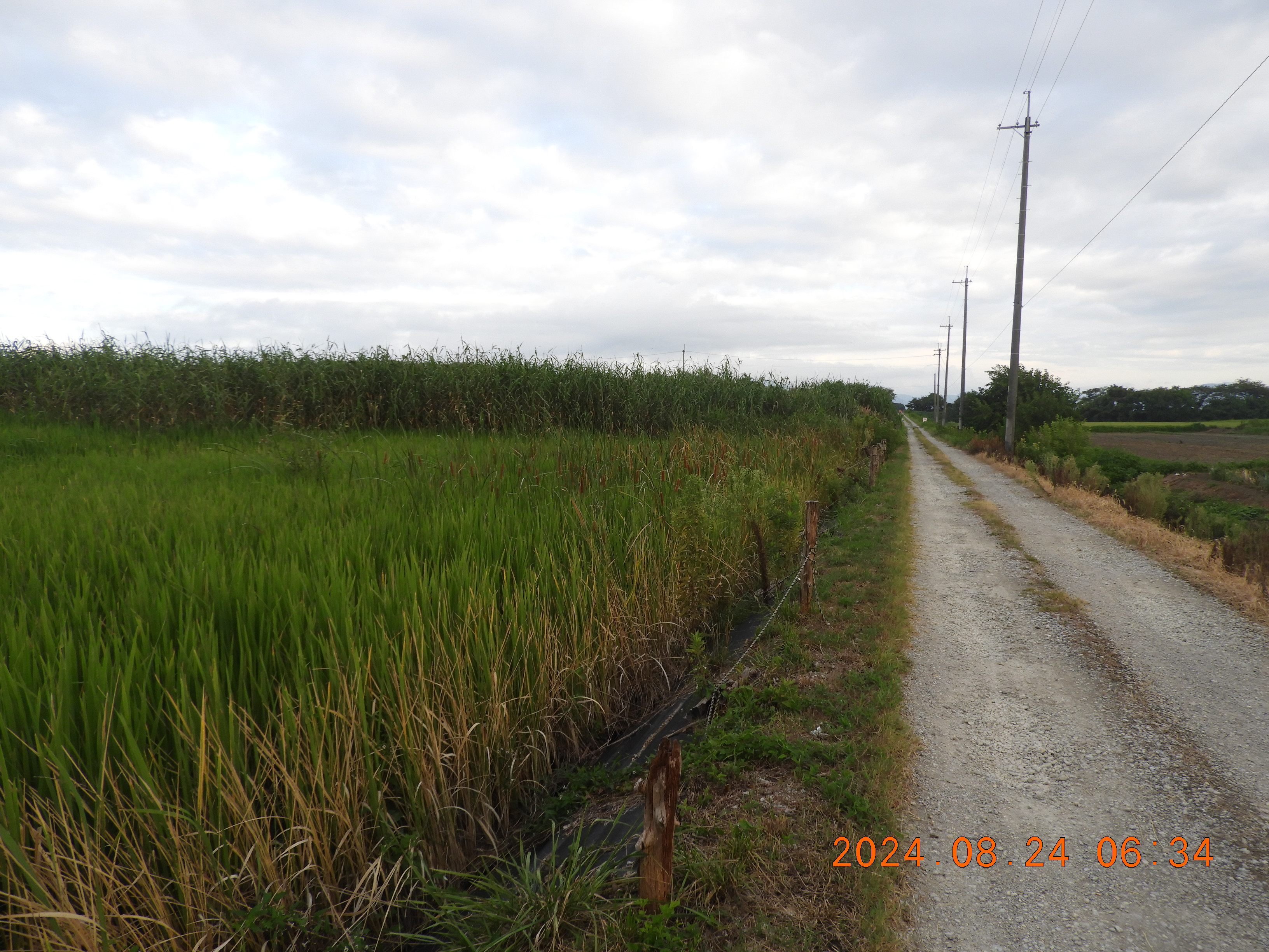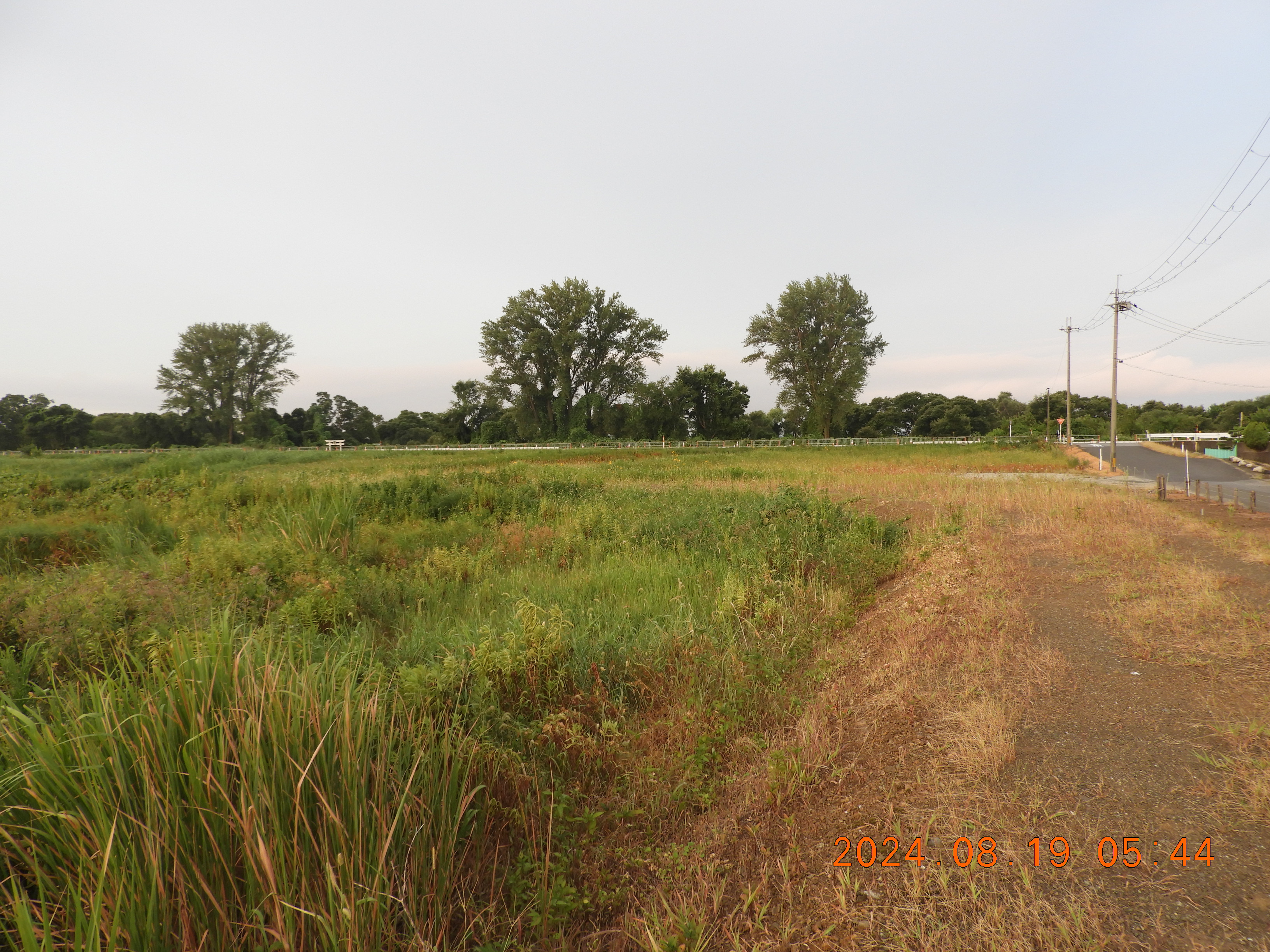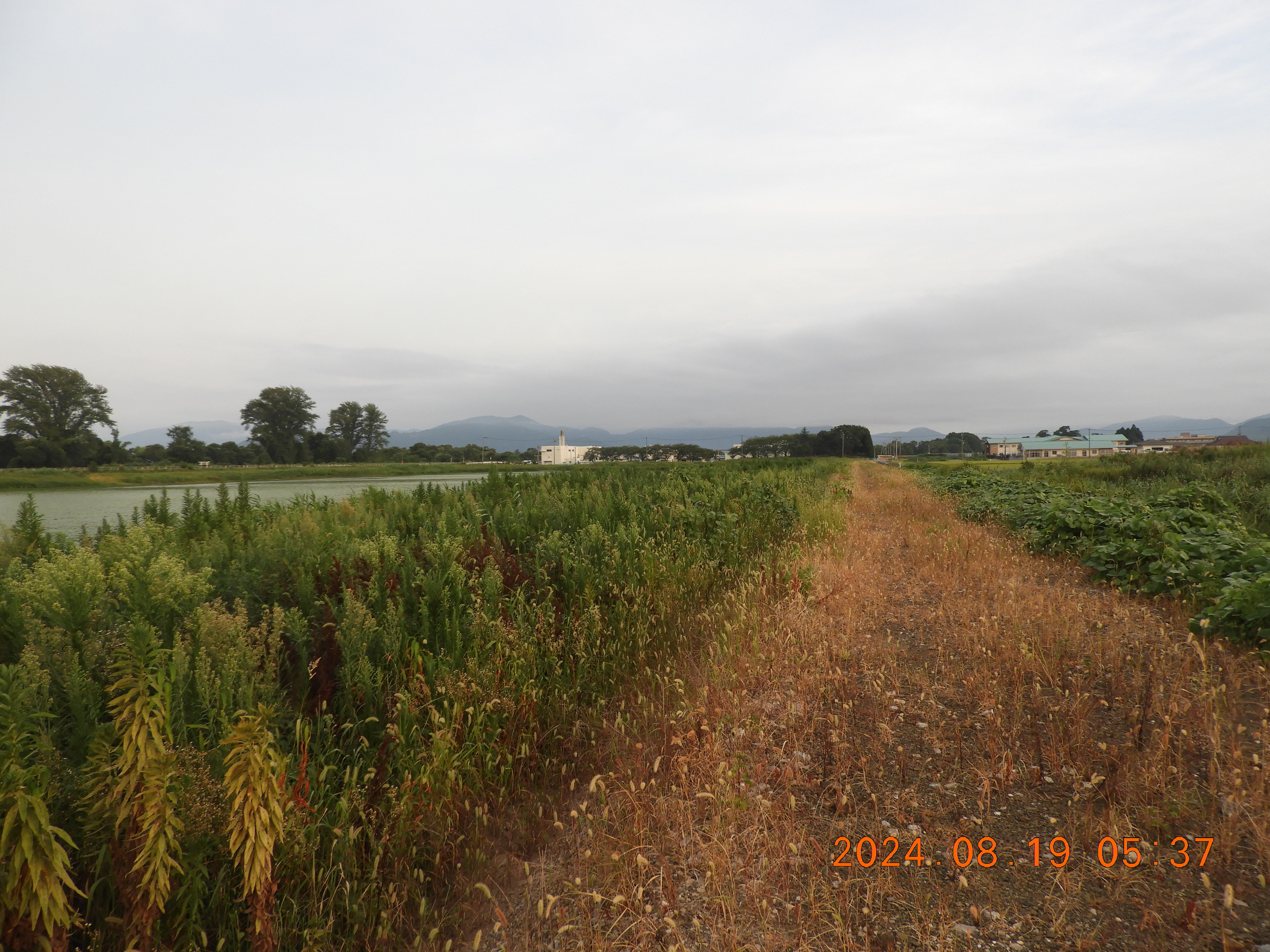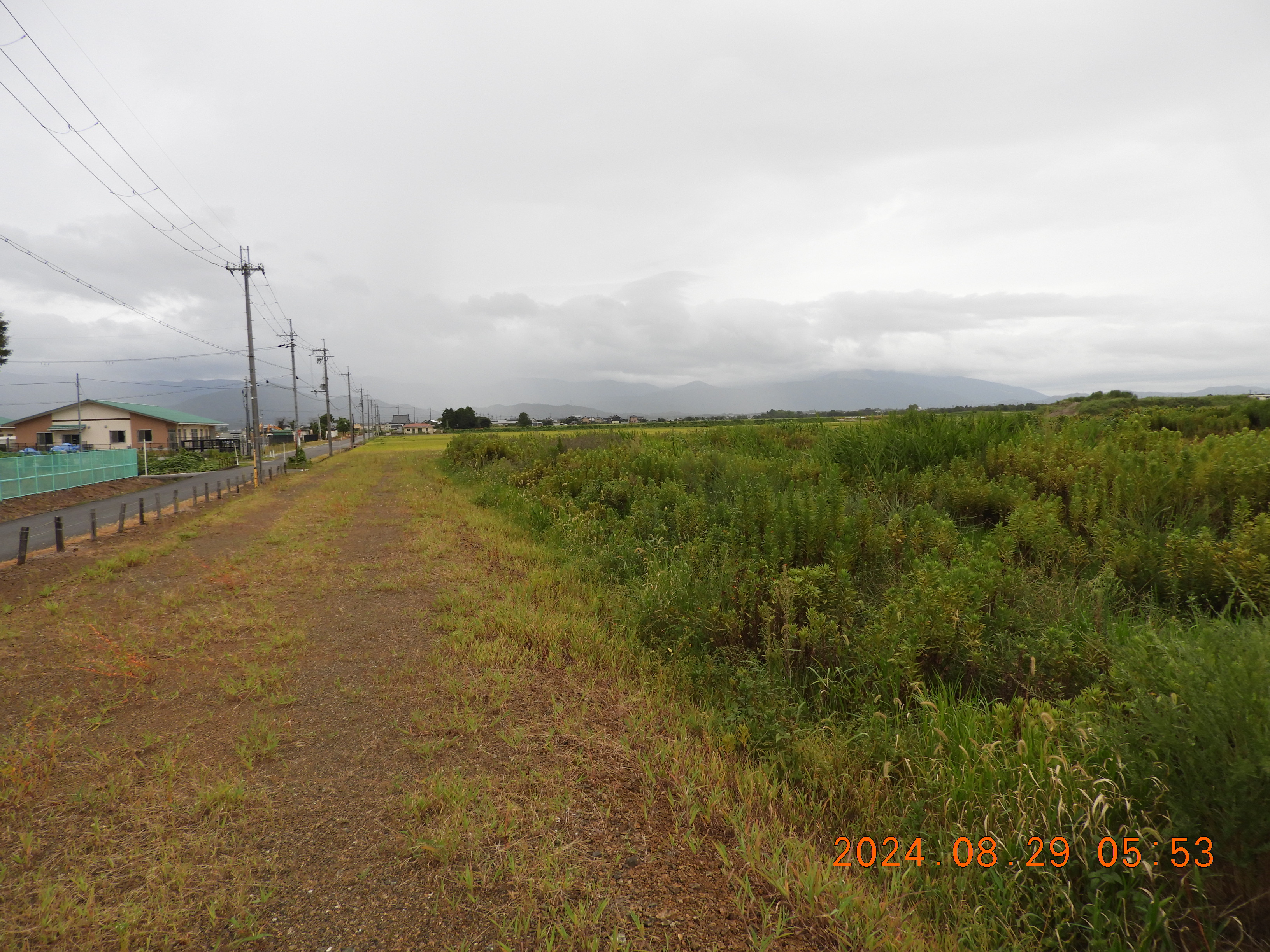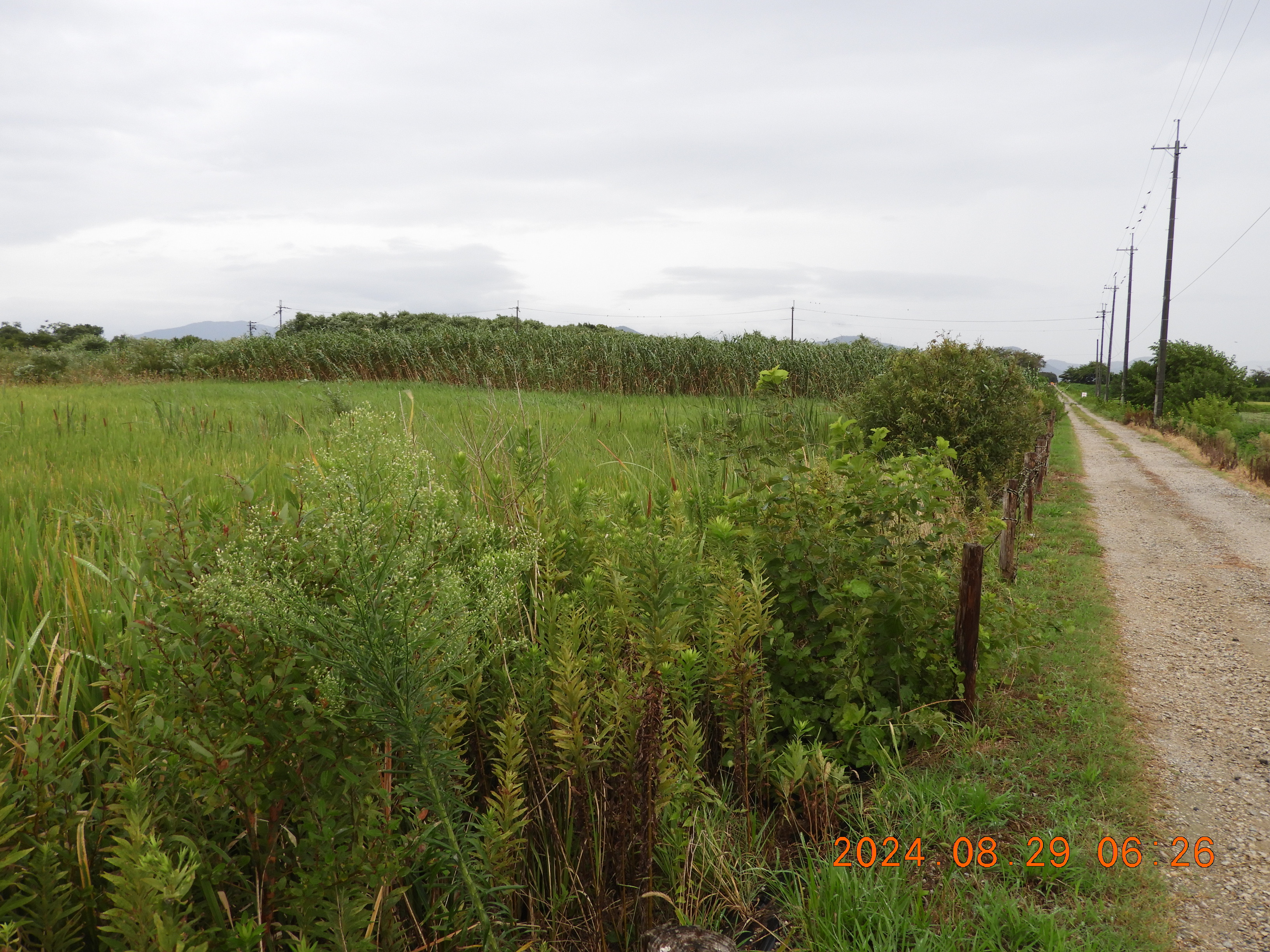 東からの撮影 中央部分の仮設道路の後は少しヒシの繁殖も少ないです。