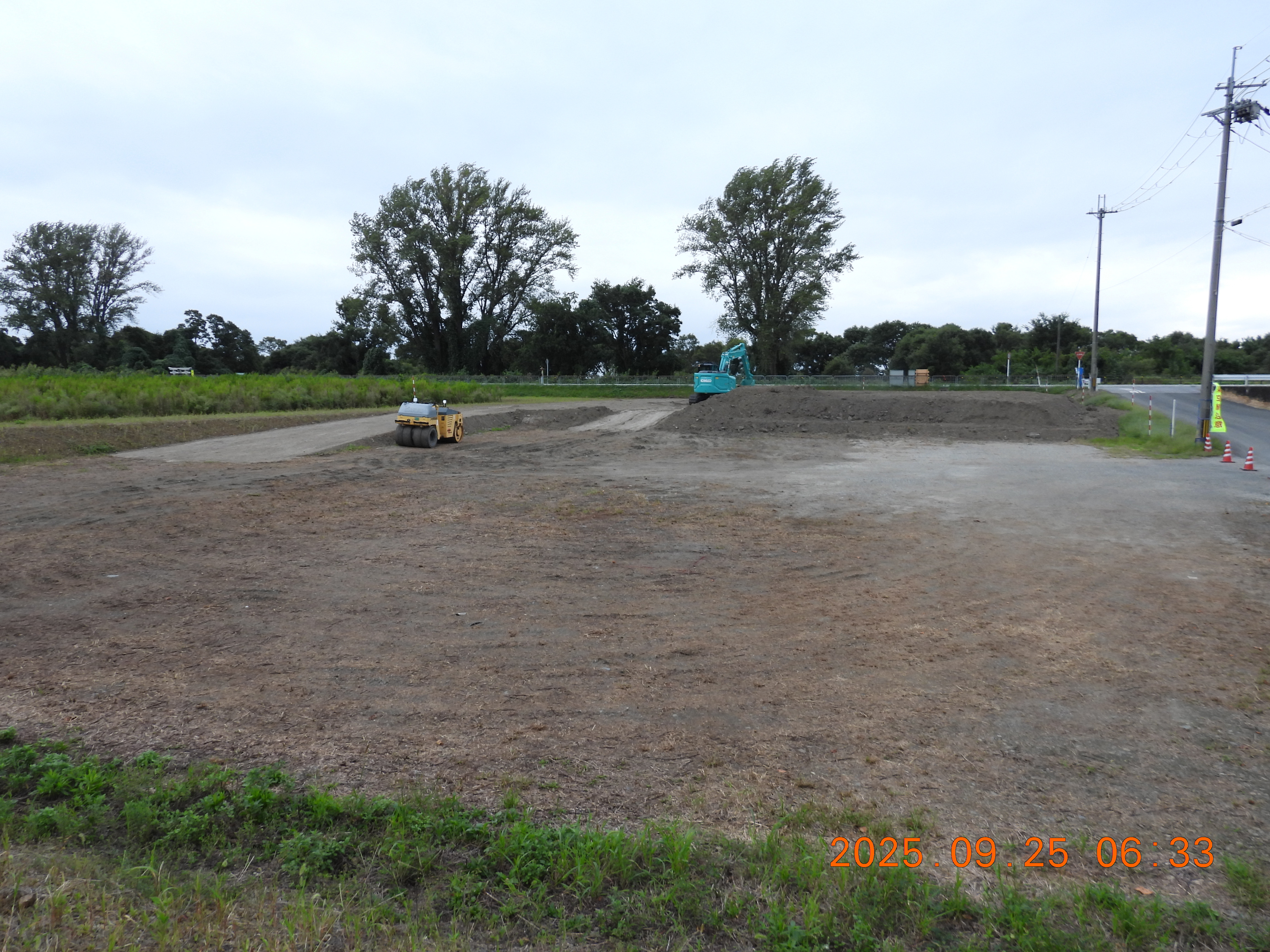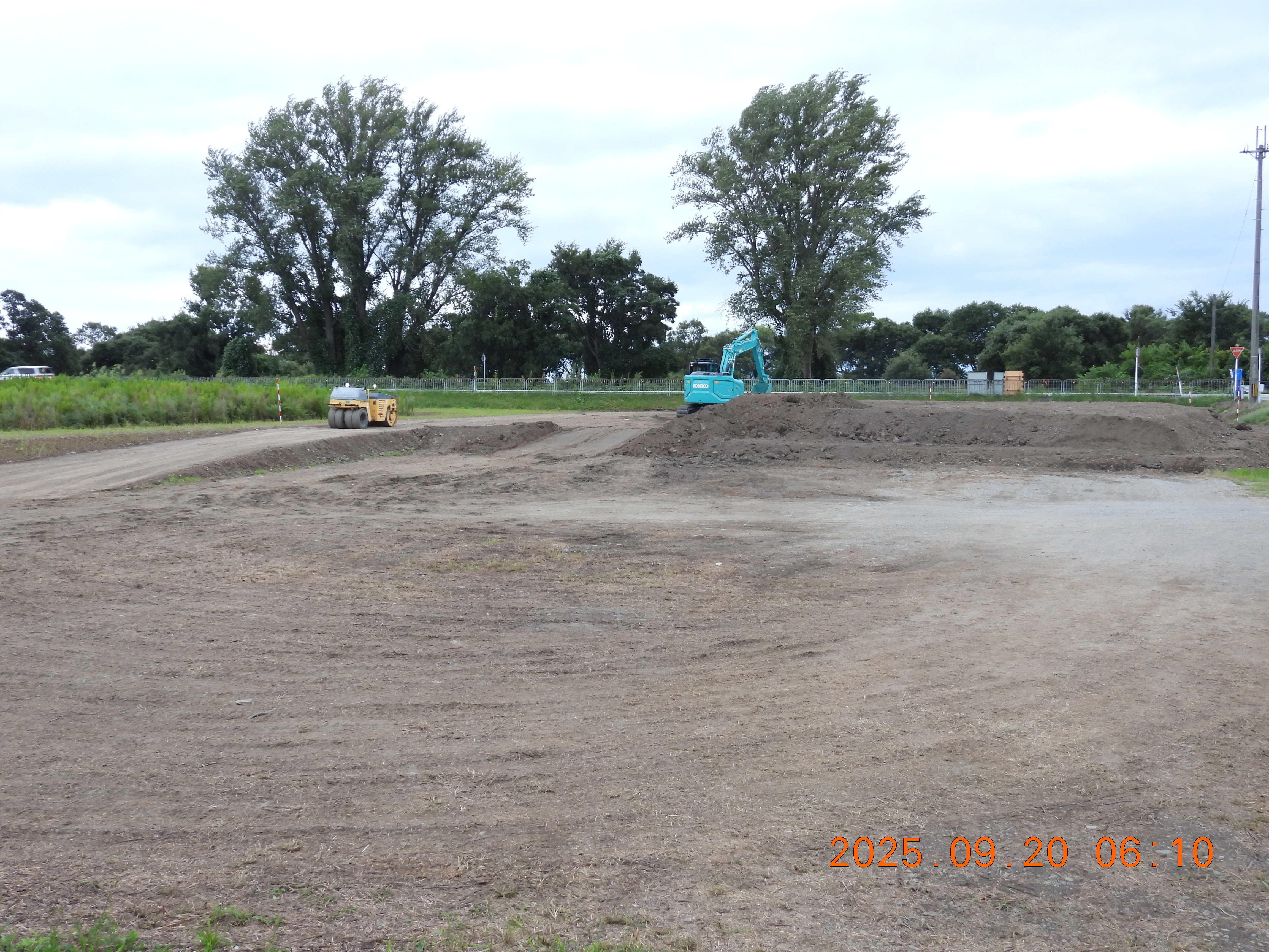 工事が駐車場の盛り土から始まっています。