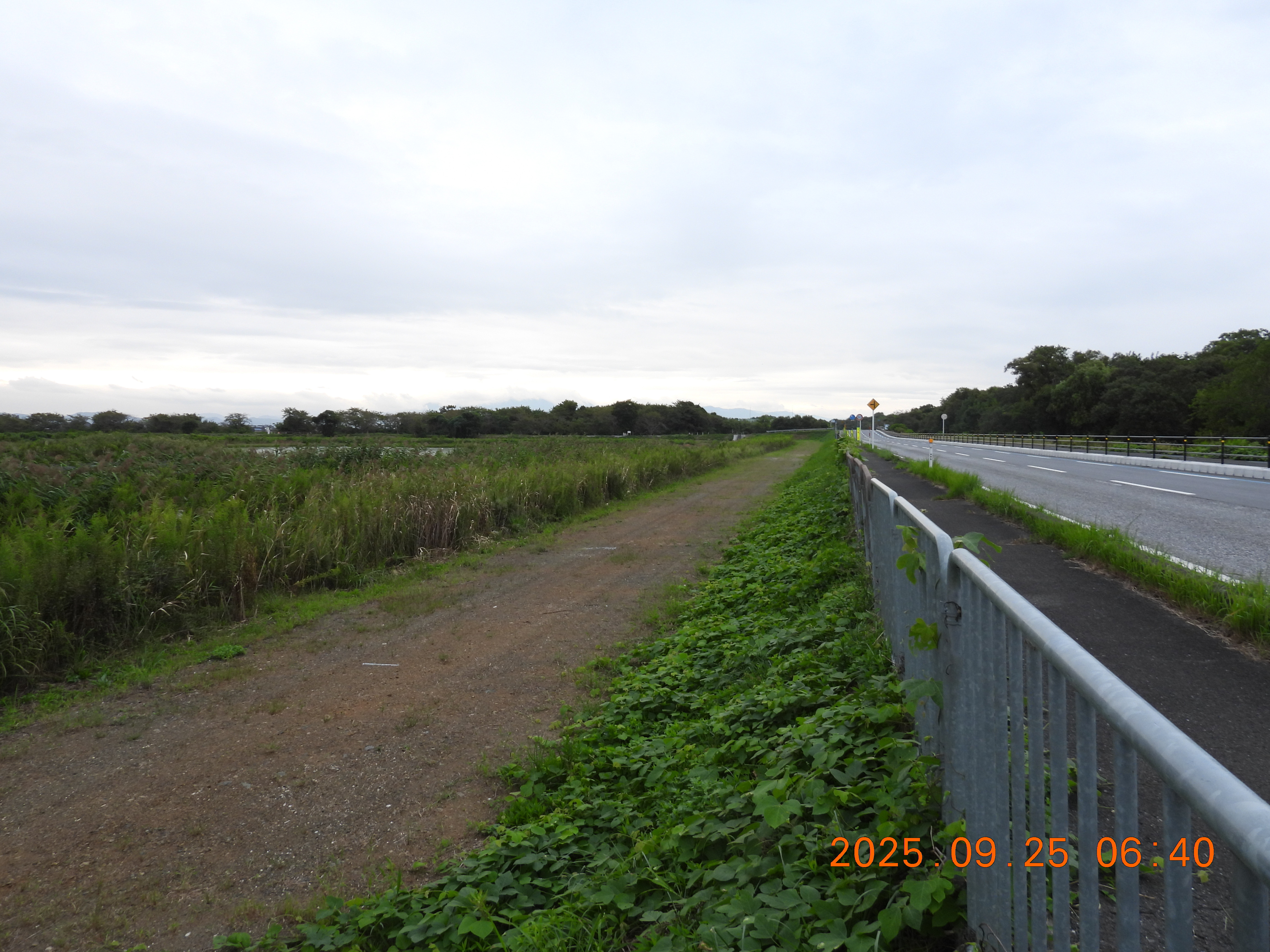 堤防上のクズは刈られて無くなりましたが、法面のクズは花盛りです。