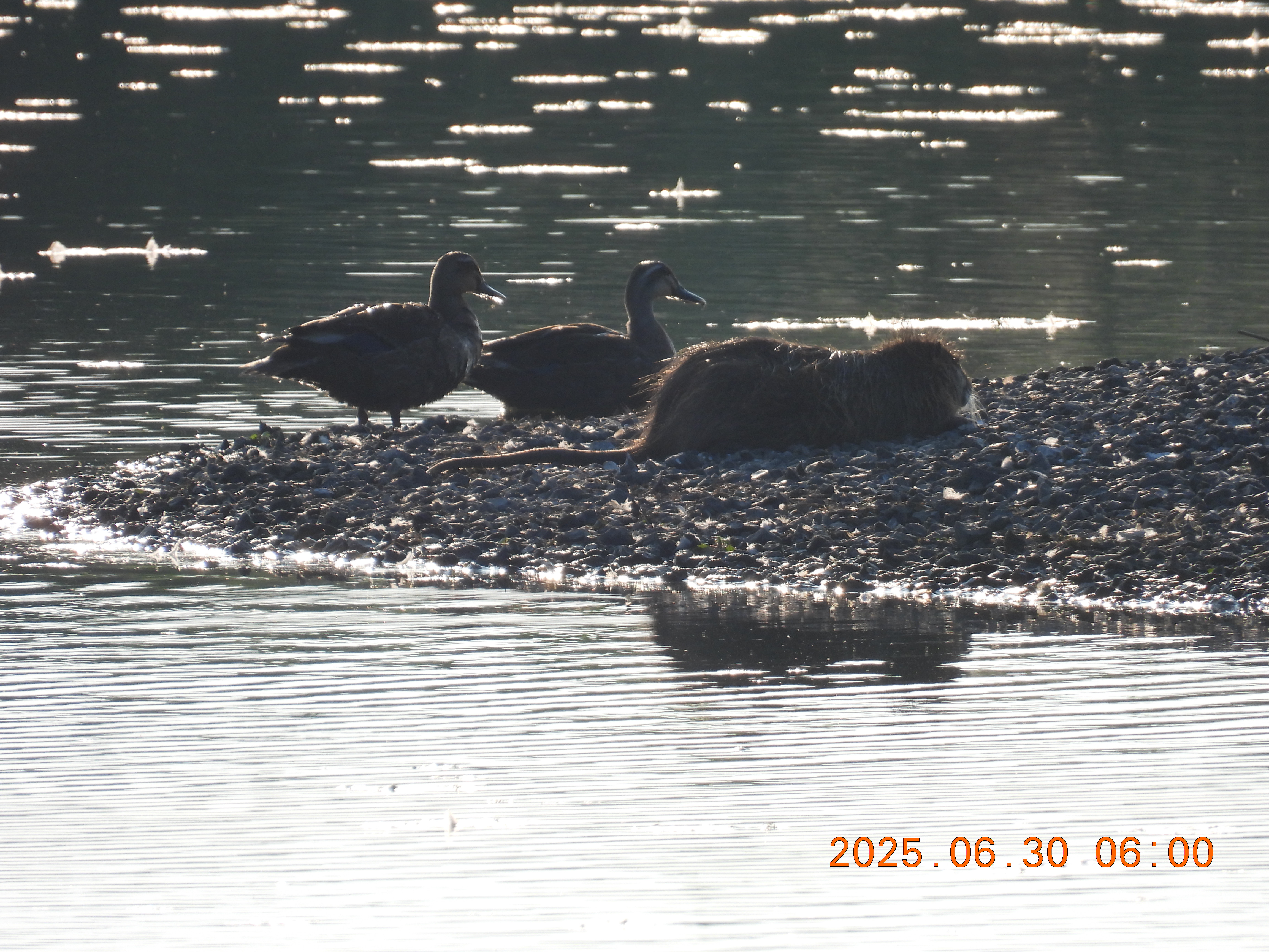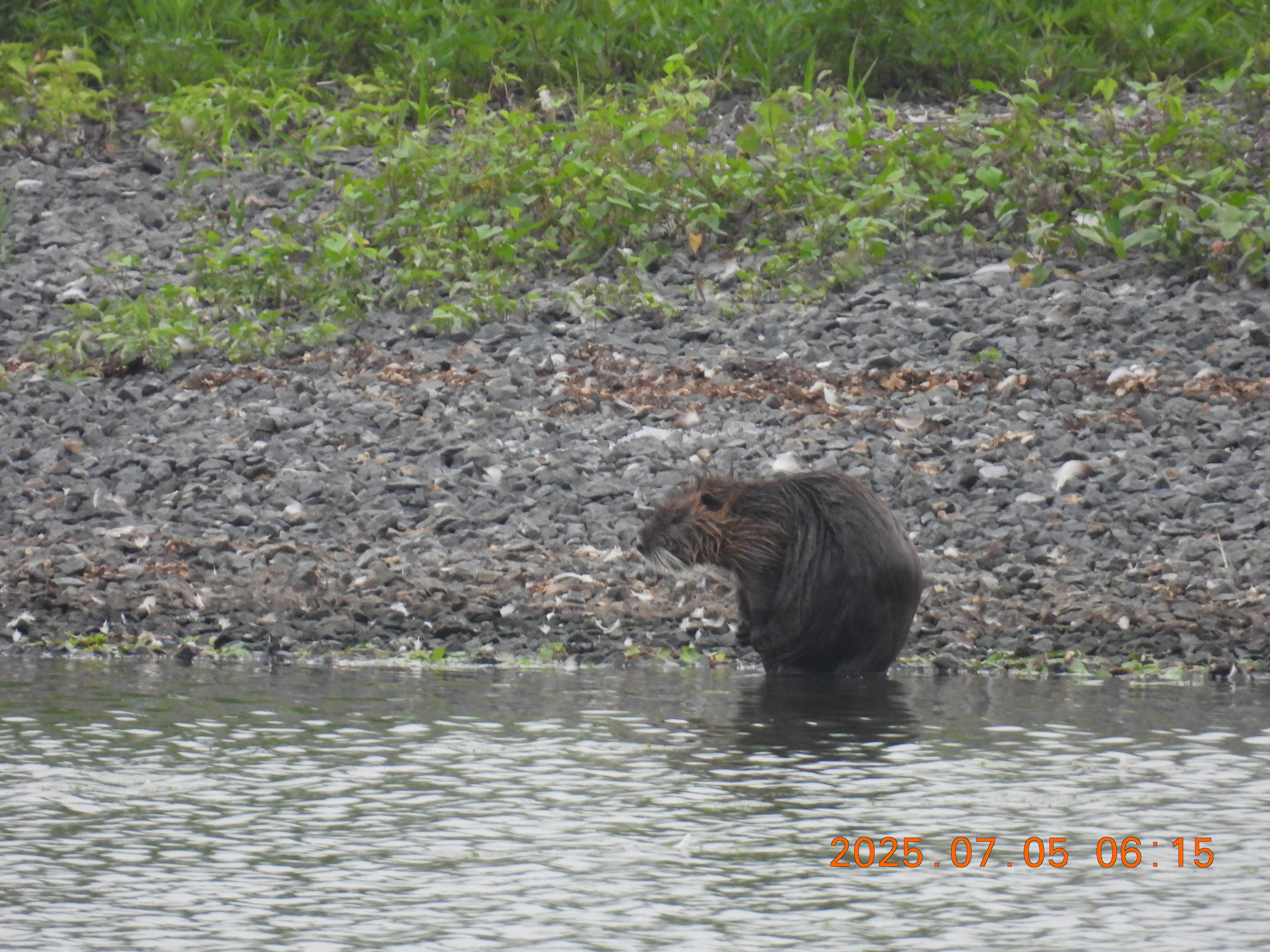 ヌートリアの姿も見られます。島に住み着いたのかな。安全なところです。