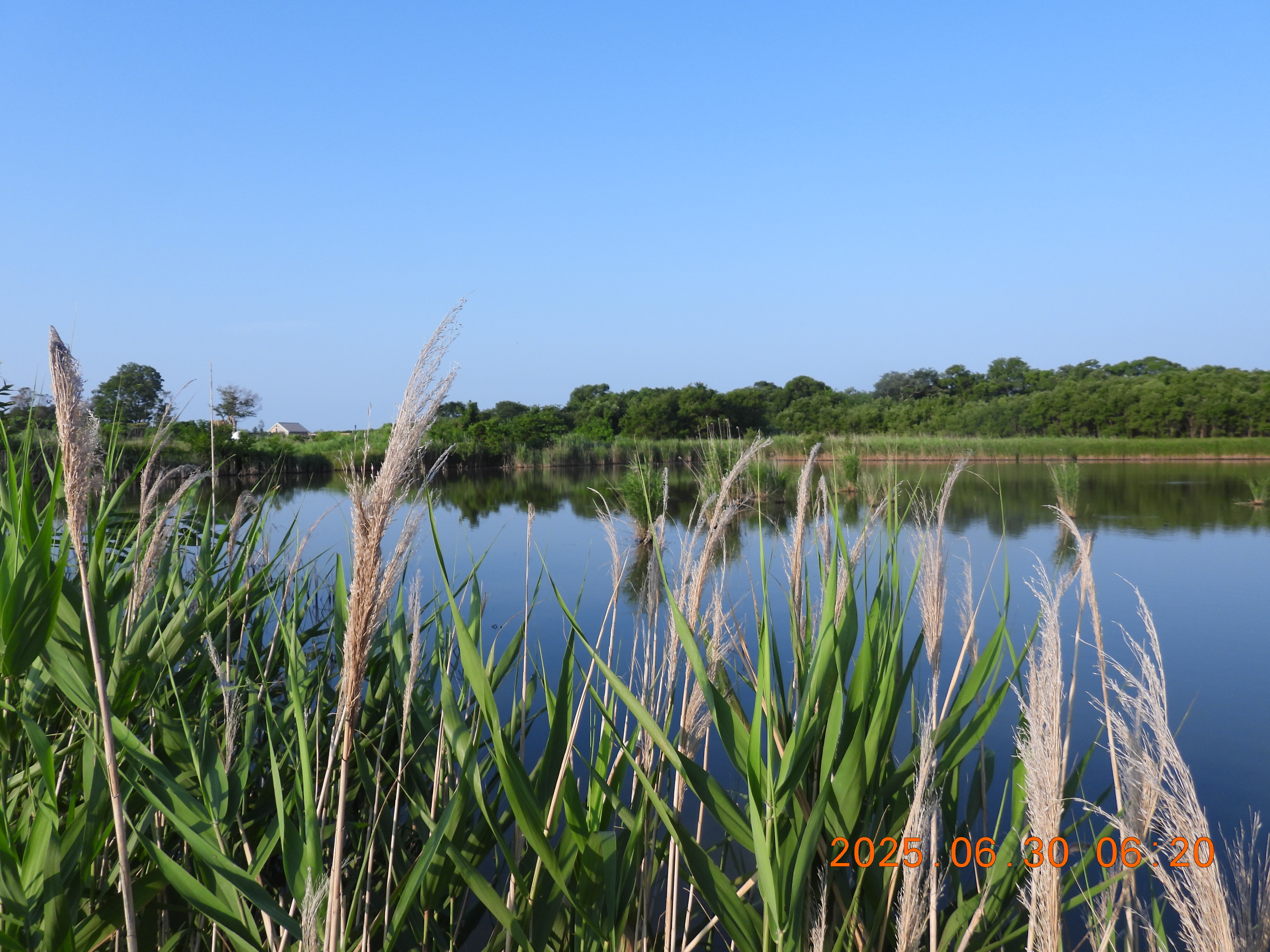 東からの撮影 草などが茂って内湖の水面は見られません。