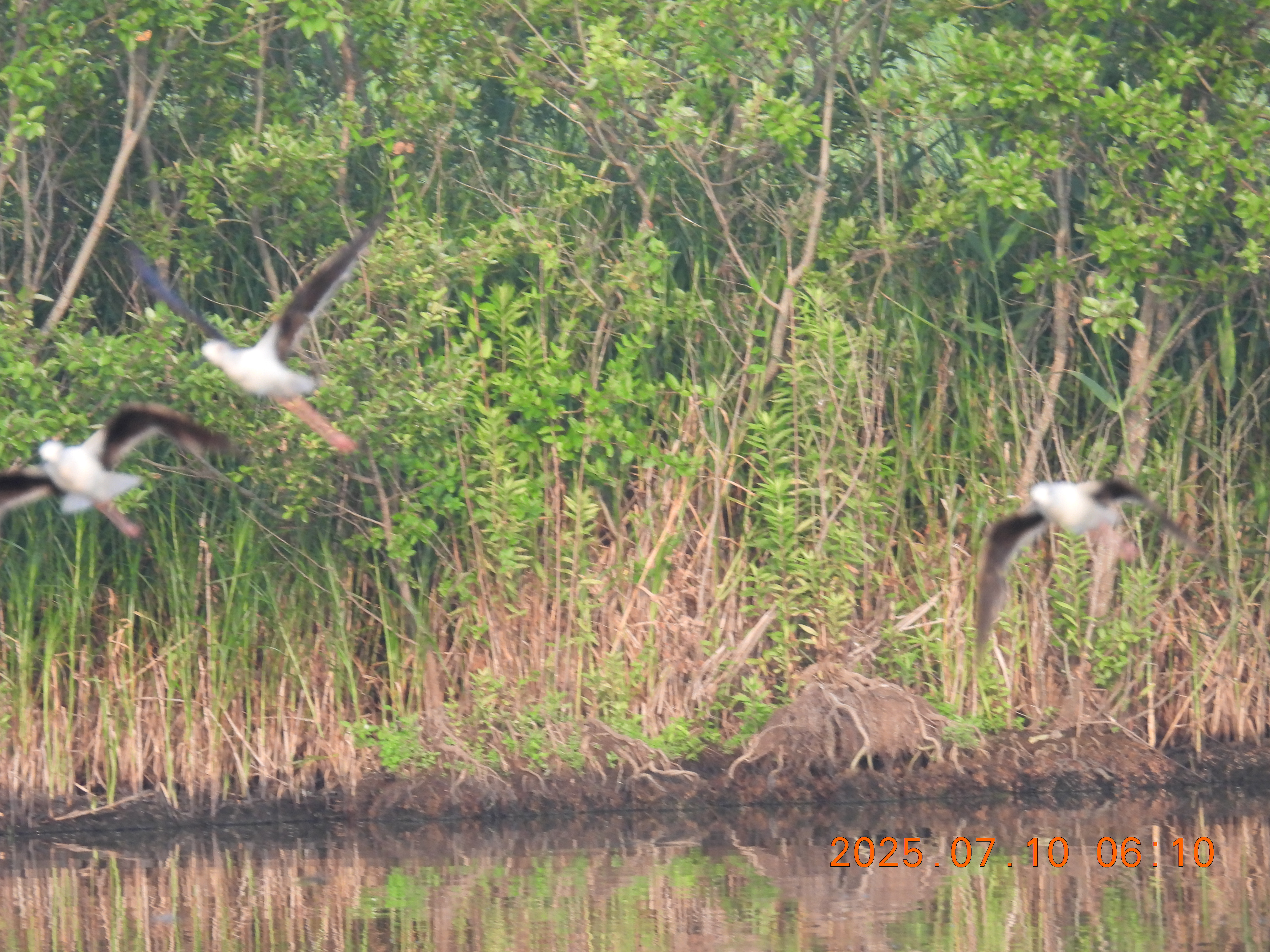 思わぬお客さんが表れました。セイタカシギが3羽突然現れましたが