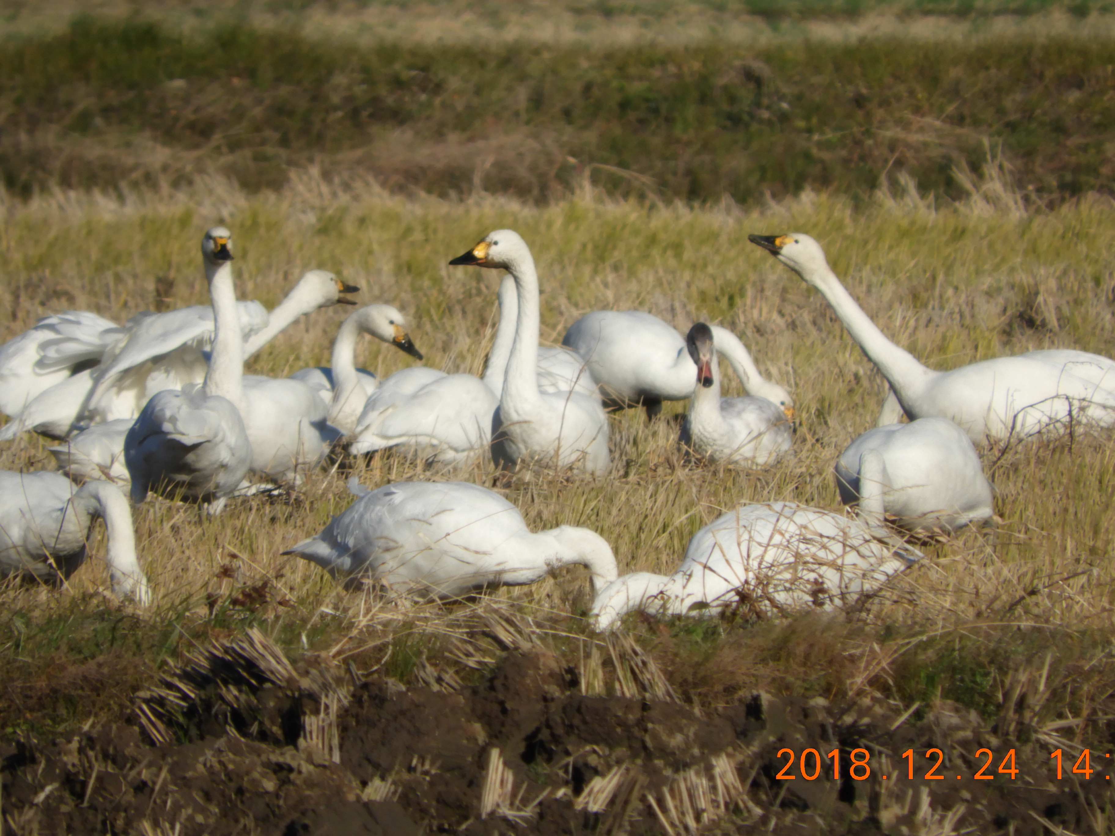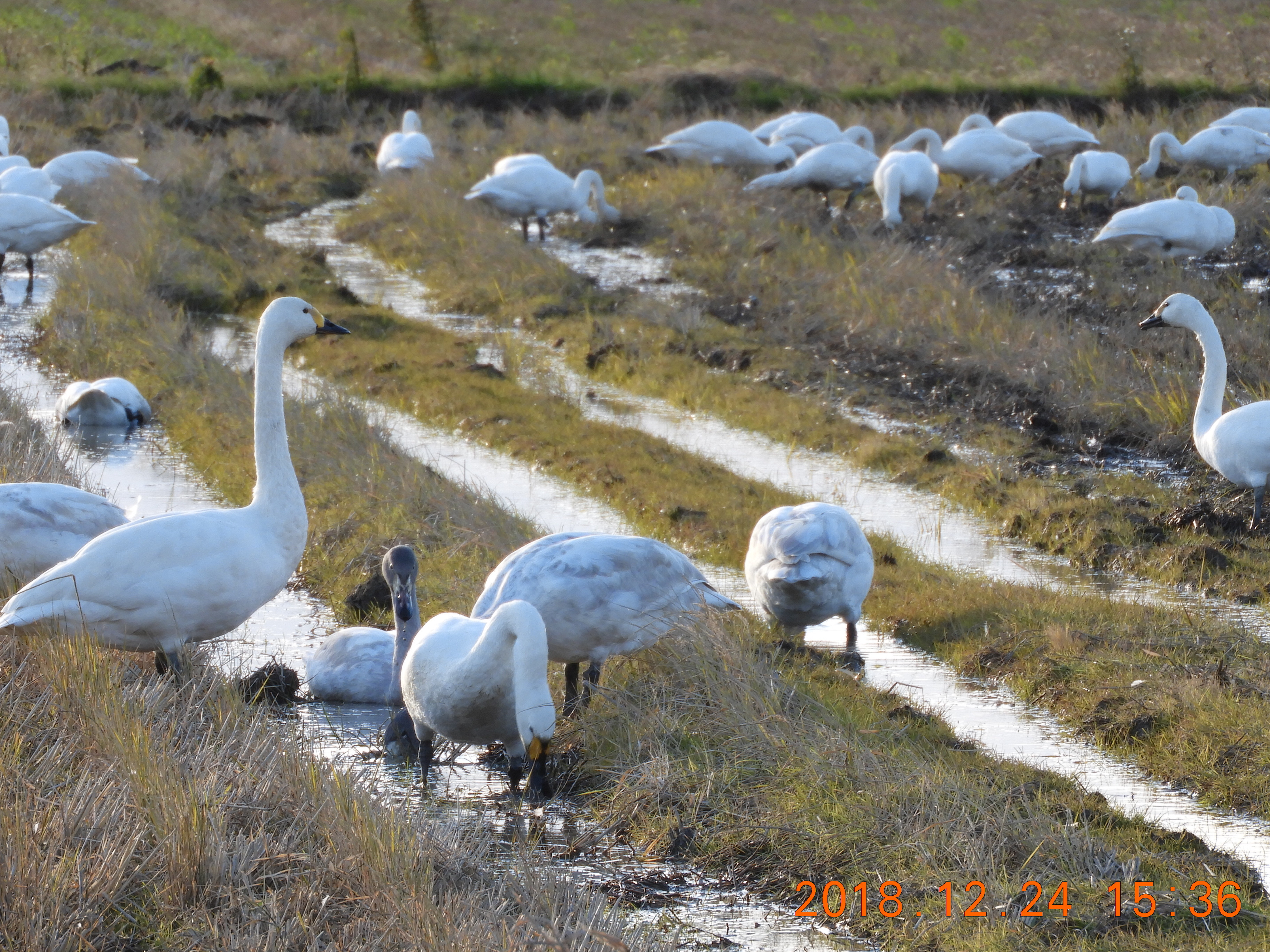 2018/12/24(月)晴れ 撮影 餌場のコハクチョウ