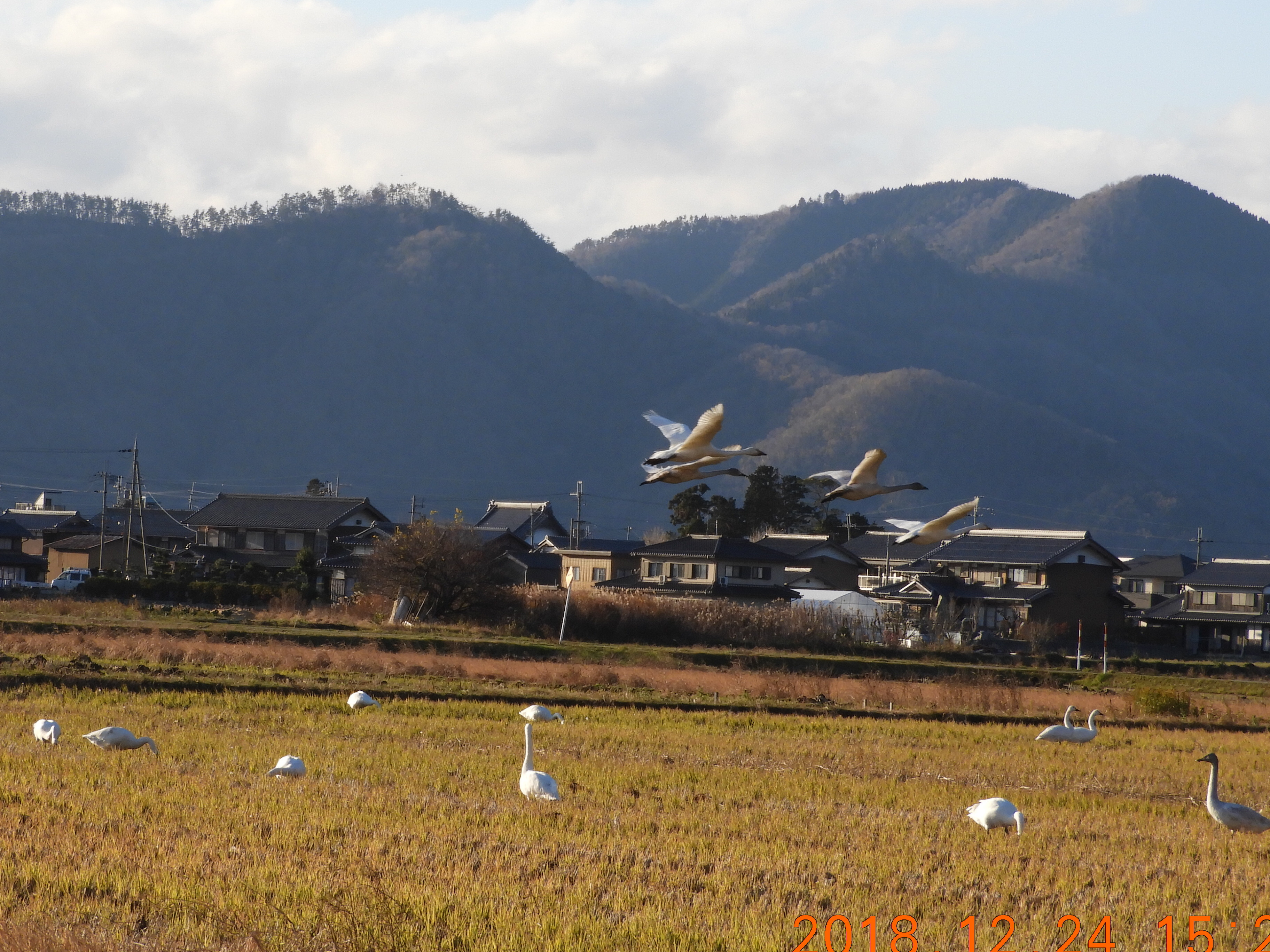山本山の裾野に沢山のコハクチョウが集まっています。