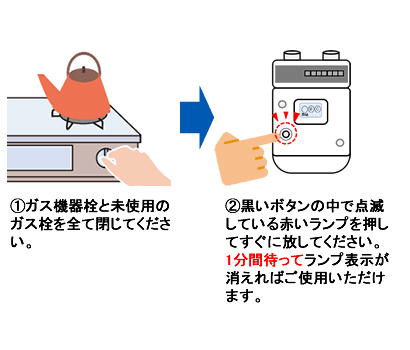年末年始、ガスの使用量が増えたことでメーターが遮断されることもございますので、以下の復帰方法をご確認ください。