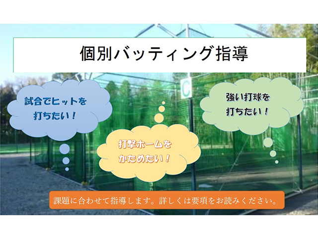 バッティングケージ3連、マシン6台(軟式球用・硬式球用・ソフトボール用)、ブルペン、人工芝グラウンド(フットサルもできます)などがある施設です。