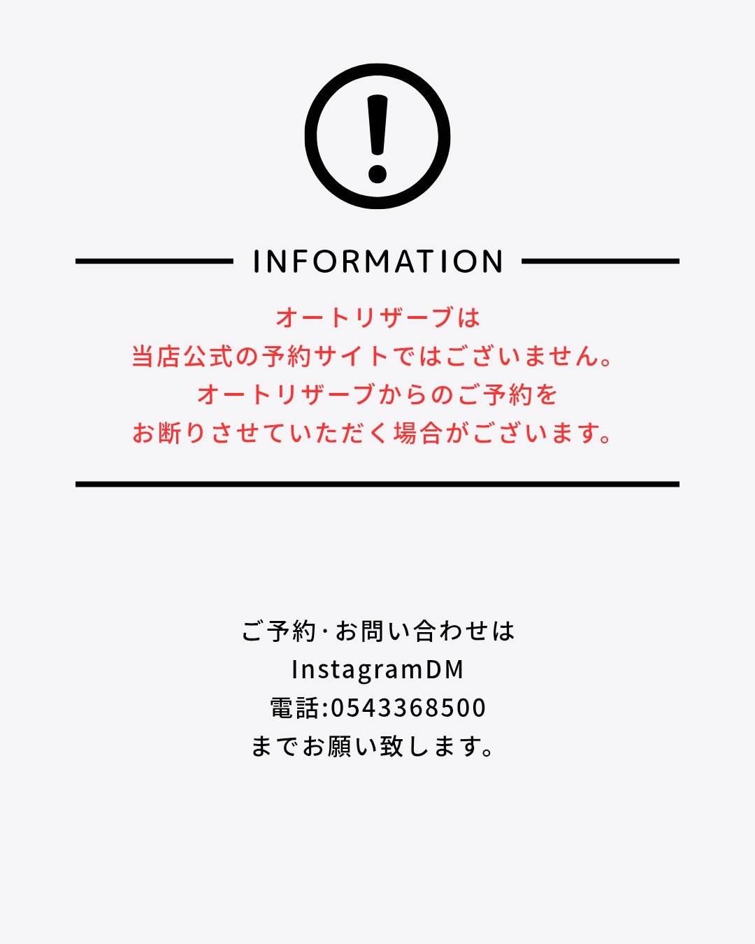 お問い合わせ、ご応募はInstagramDM又はお電話にて承ります。