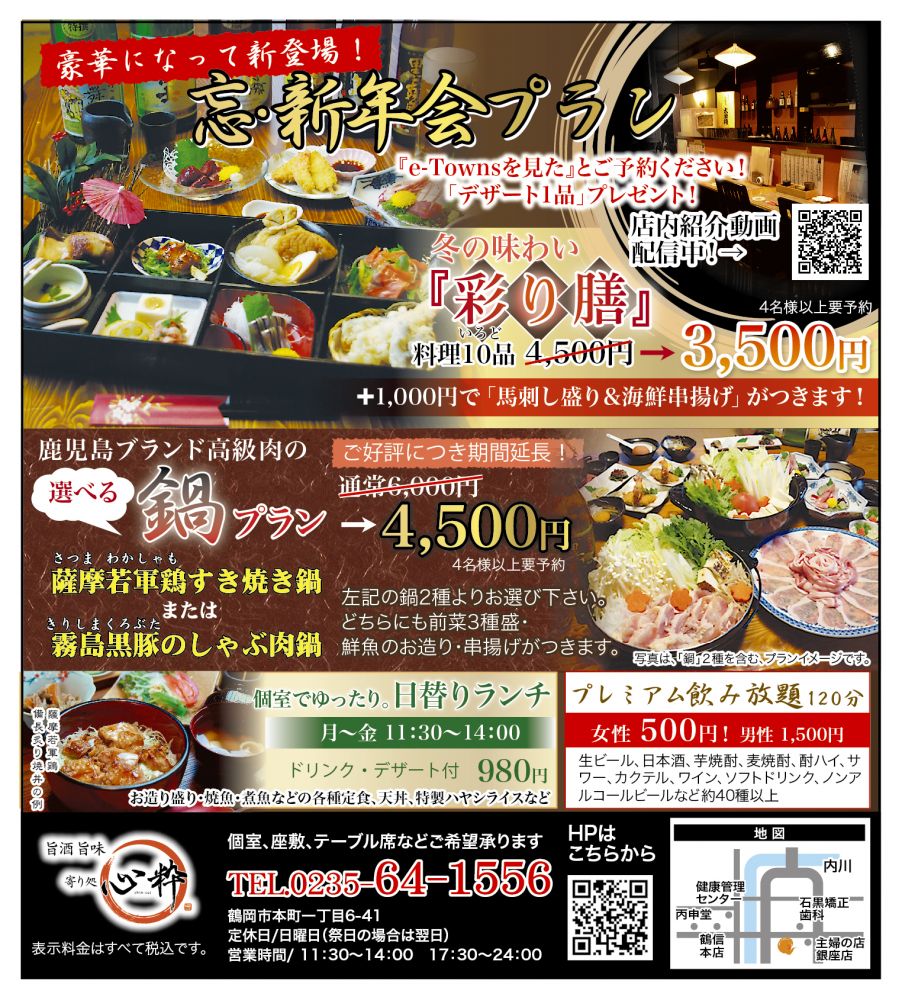 その日にあがった庄内浜おすすめ旬魚はもちろん、薩摩料理として有名な酢味噌