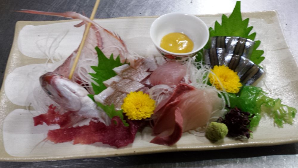 今回は庄内と薩摩の鮮魚を盛り合わせたお造りを提供。