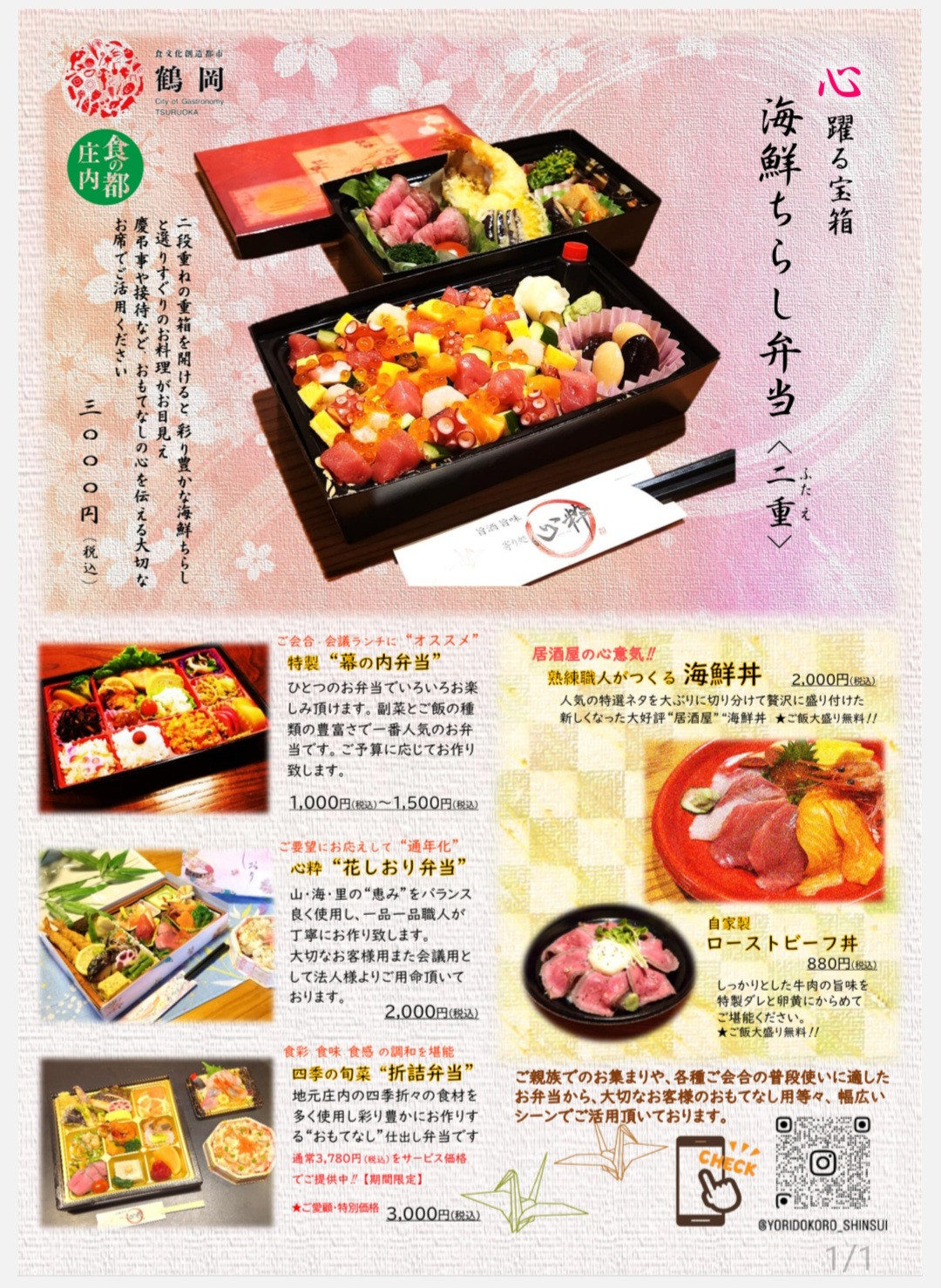 二段重ねの重箱を開けると彩り豊かな海鮮チラシと選りすぐりのお料理がお目見え、慶弔時や接待など、