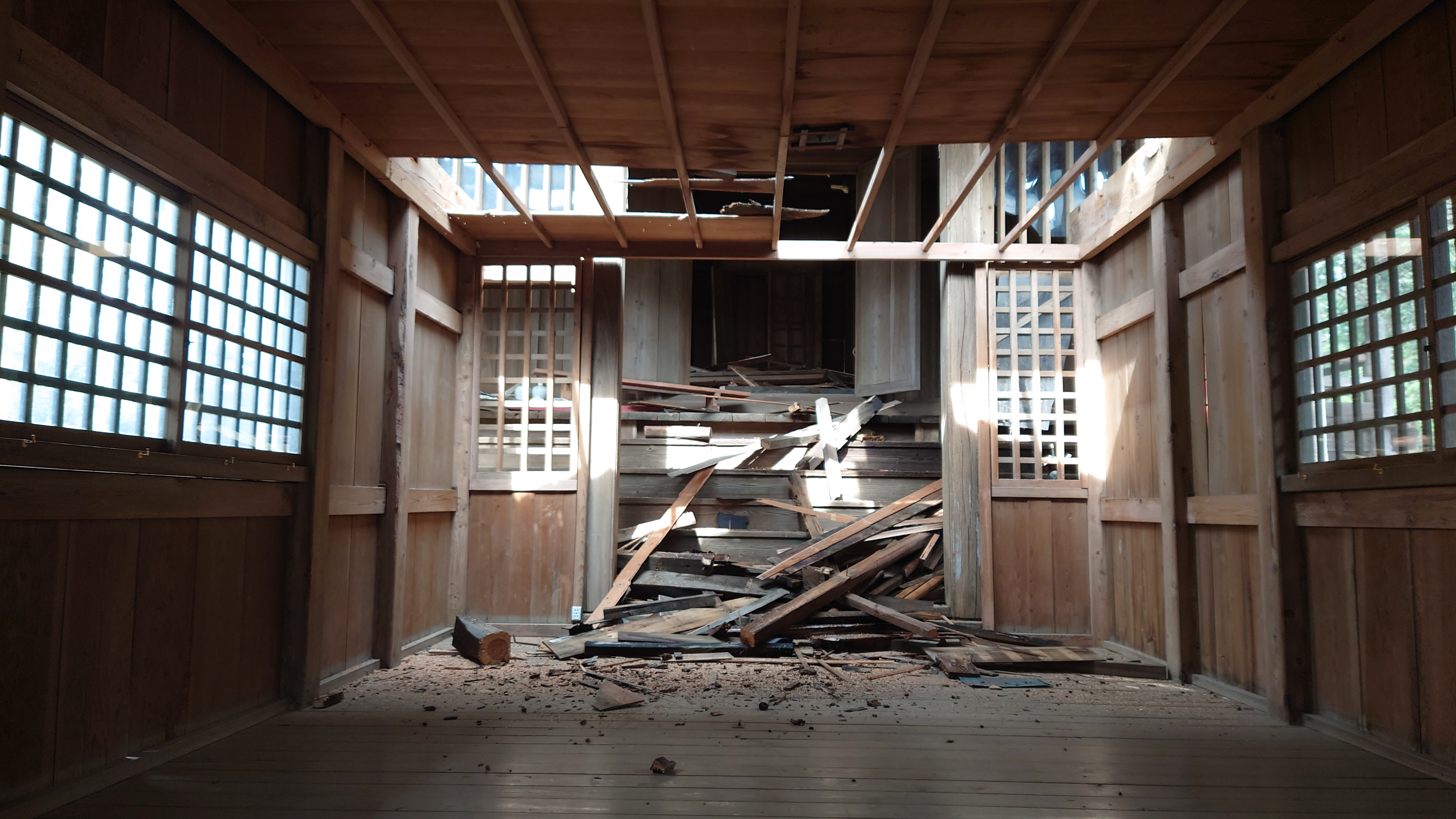その中でも、御本殿(御神体をお祀りする最も重要な建物)が大風により押され、倒壊寸前となってまいました。