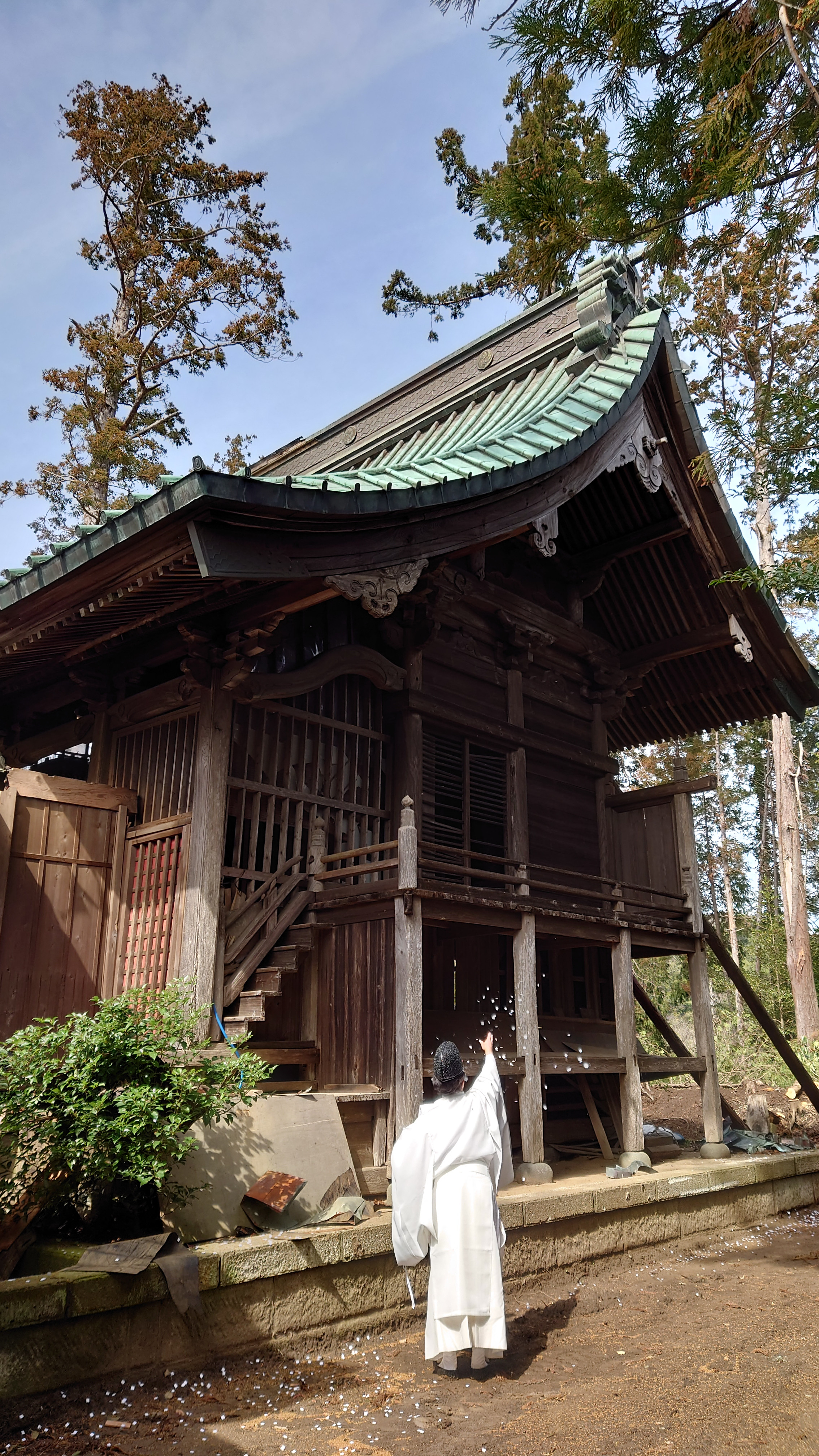 また、拝殿(皆様が御祈願される建物)も同様に 被害を被り、柱が折れ雨漏りが起きている状態で 正常な神社祭祀を行うことが厳しく、できる限りの祭祀で行っています。 境内の復旧は、氏子の皆様やボランティアの方々のご尽力により進み、現在の状態になっております。