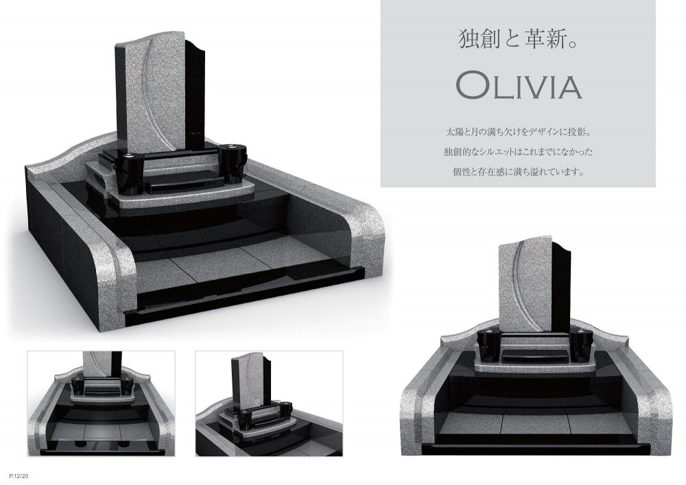 デザイン墓石 「LUCIEN(ルシエン)」。独創的で大胆かつ精彩なデザイン墓石です。墓地に合わせてオーダーメイドになります。まずは、お電話にてお気軽にお問い合わせください。(写真の墓石サイズは4㎡になります)