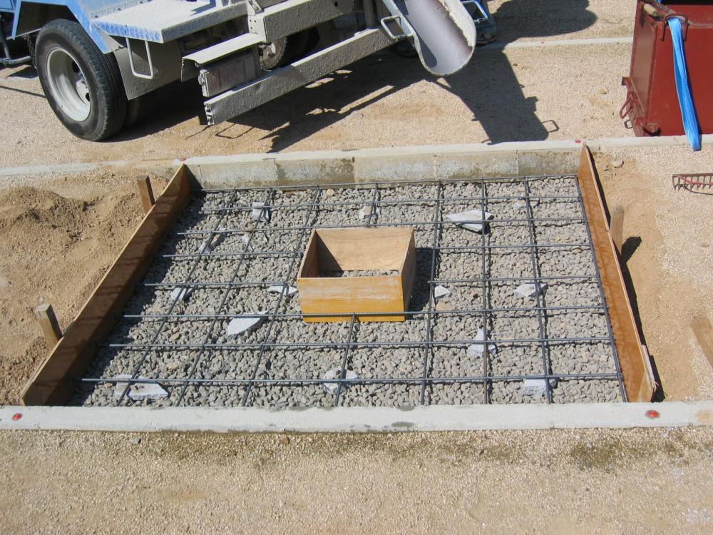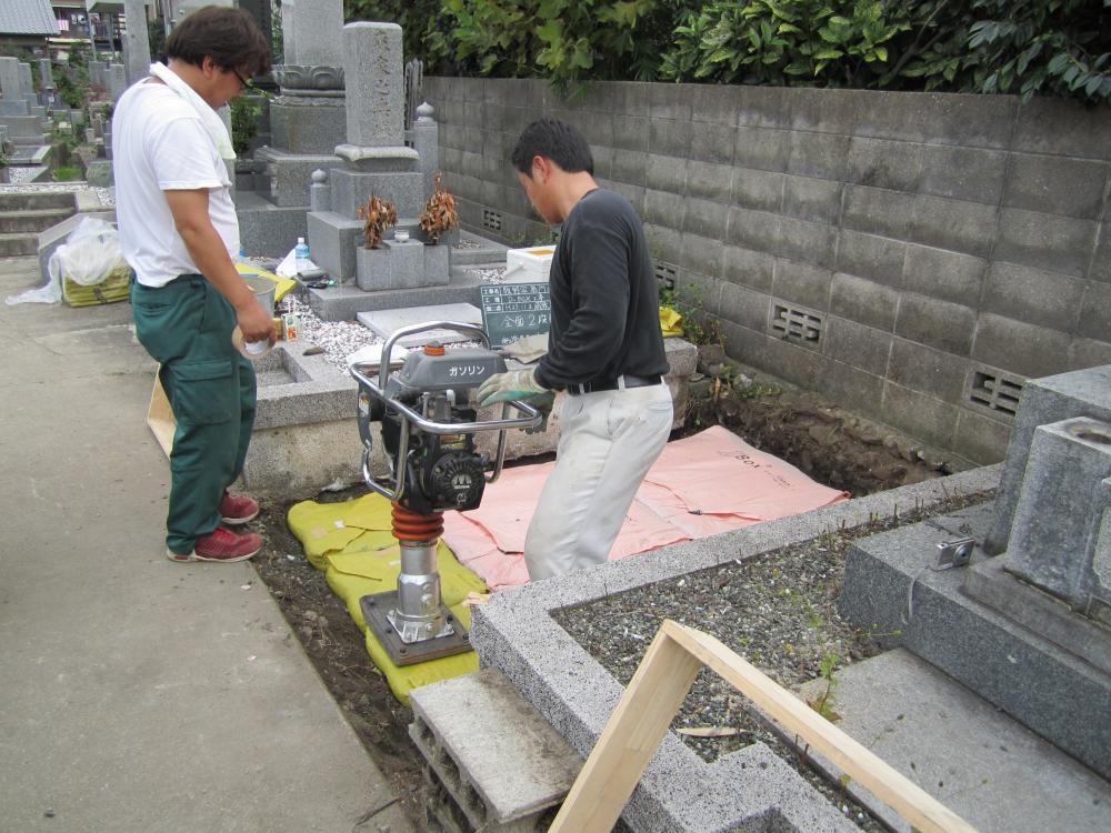 座堀り完了後 砕石を敷き詰め点圧、鉄筋組