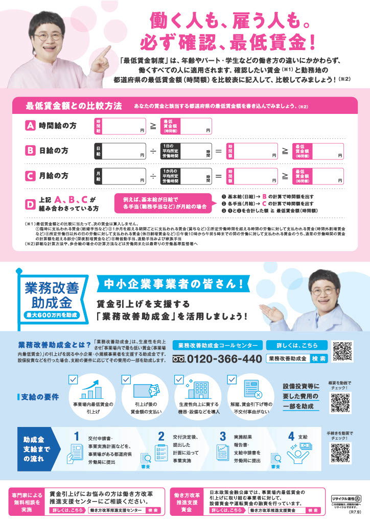 最低賃金とは、働くすべての人に賃金の最低額を保証する制度です。