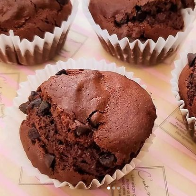 チョコ生地のマフィンに チョコチップがいっぱい。 温めるとチョコがとろりととけて 美味しさ倍増!